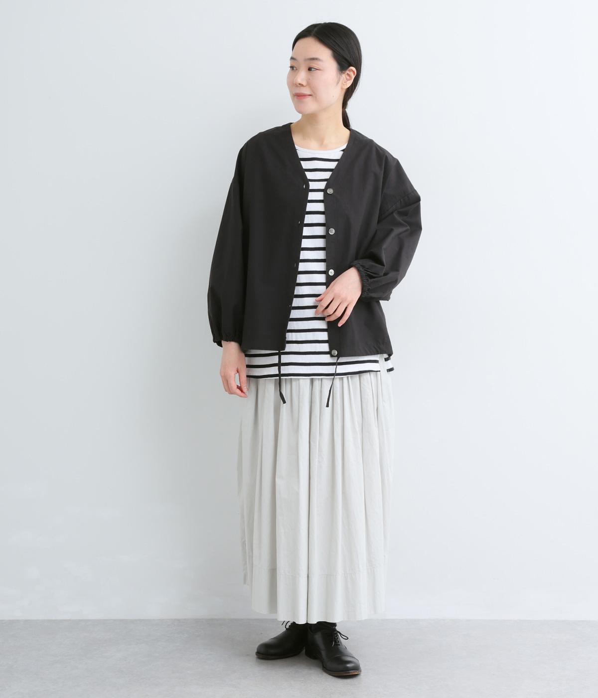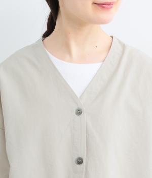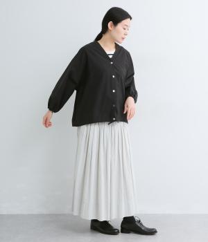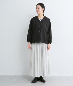 ぽわんとした袖がかわいらしさを添えるカーディガン。袖口にゴムを配してたくしあげても快適に着られ、裾のドロスト紐でシルエットの調整が可能です。Vネックの首まわりとほどよい丈感で、すっきりとバランスよく仕上げました。