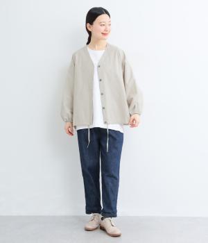 やわらかな肌ざわりのコットンと、丈夫でほどよいハリを持つナイロンを組み合わせた混紡生地。コットンのやさしさとナイロンの耐久性を活かし、さらりと軽やかで快適な着心地を叶えます。