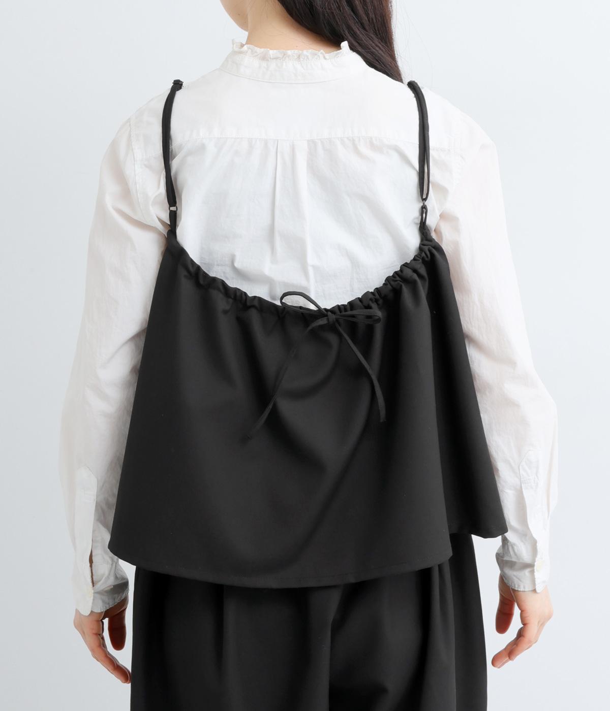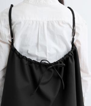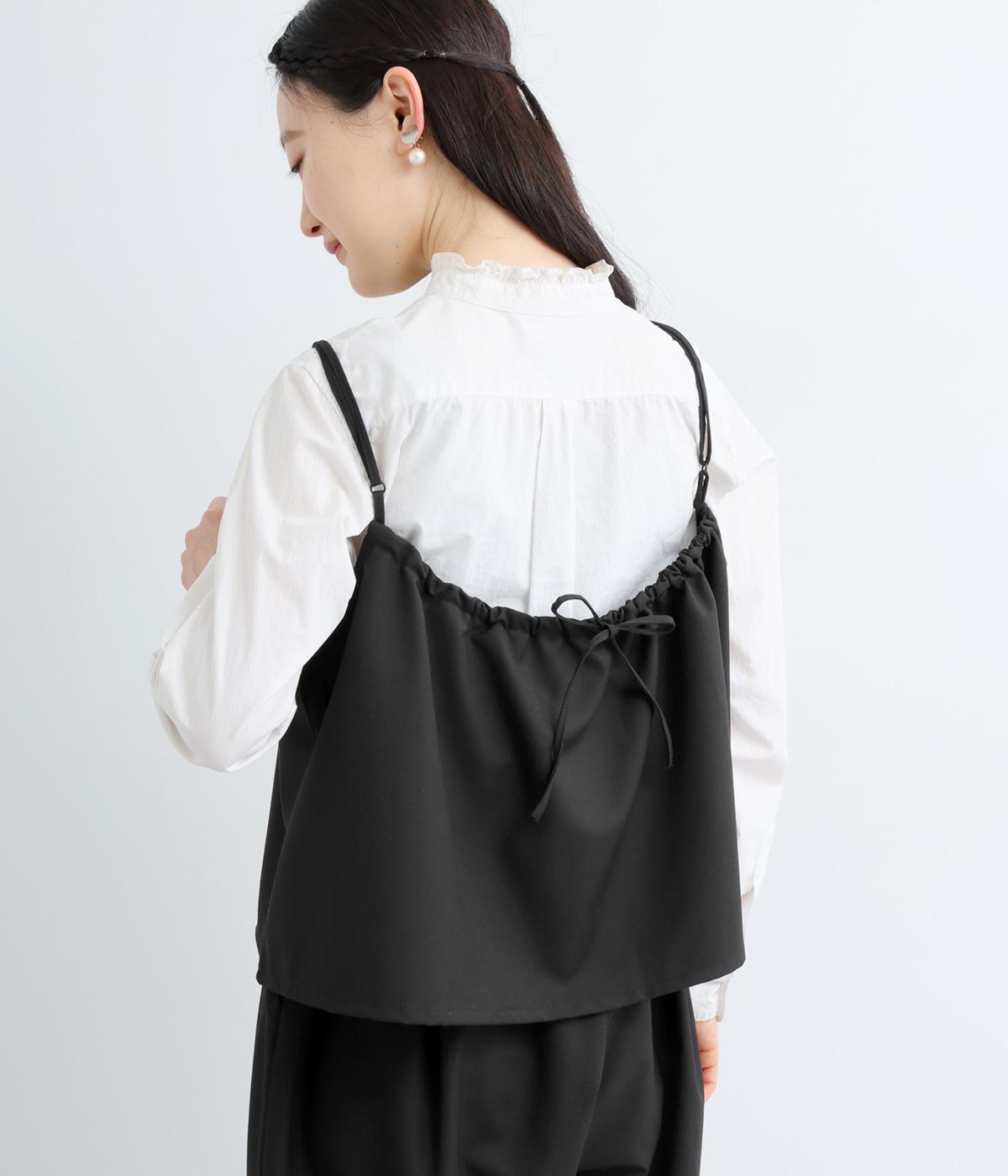 すっきりとしたフロントデザインに、バックのリボンがほどよい甘さを添えるキャミソール。丈の調節ができるホルダーつきなので、ワンピースやトップスとのレイヤードなど、着こなしの幅が広がります。うしろのギャザーはゴム仕様で、着脱のしやすさと着心地も◎。およばれのシーンにもおすすめな一枚です。
