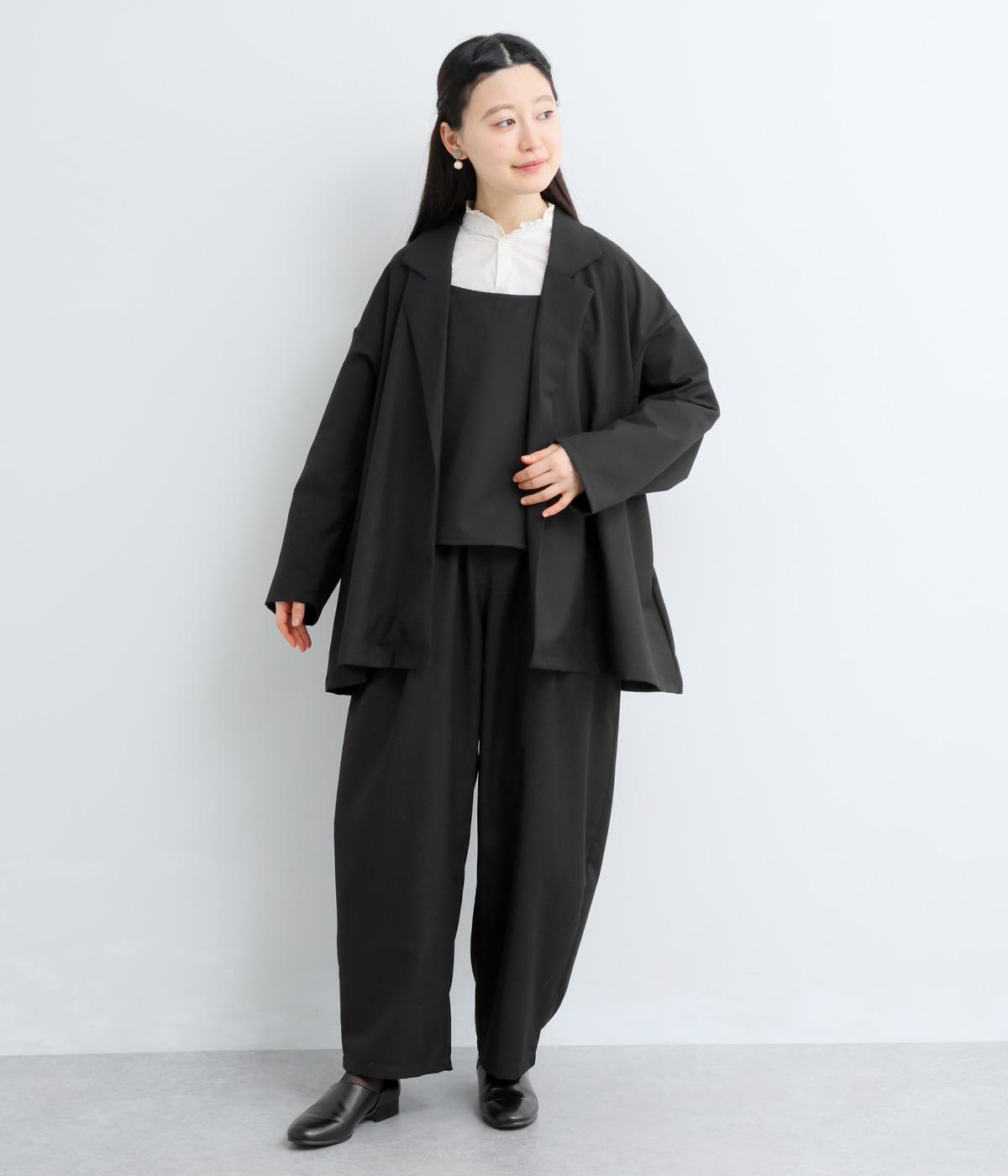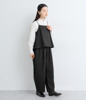 つるりとしたなめらかな表情と、ほのかなツヤが上品な印象を与えるTR素材で仕立てました。軽やかな着心地ながら、ほどよいハリ感があり、シルエットをきれいに保ちます。シワになりにくい素材なので、デイリーからフォーマルまで幅広いシーンで活躍します。