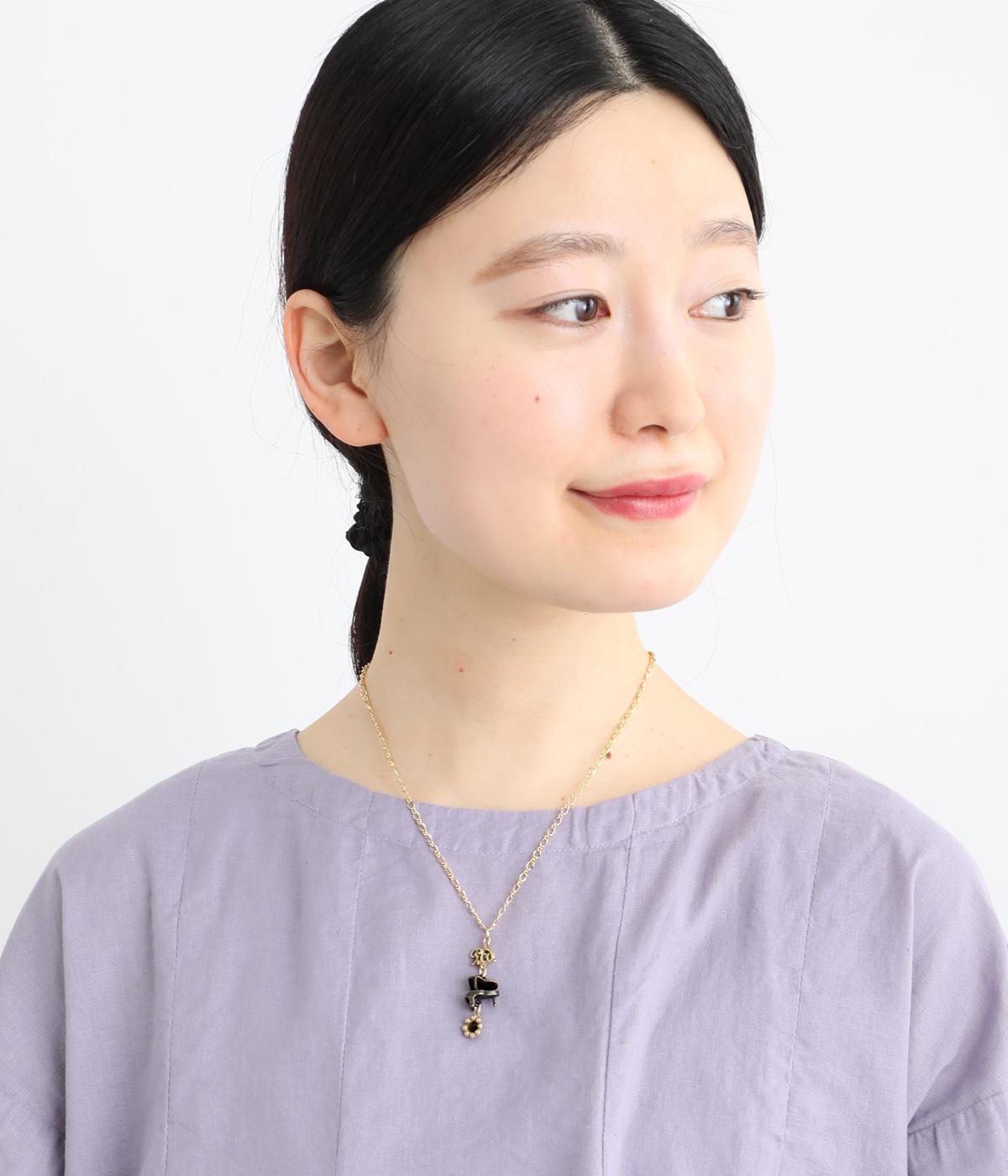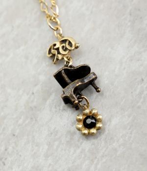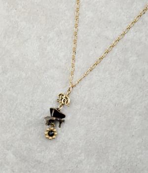 立体的なグランドピアノがさりげなく揺れるネックレス。ペダルを踏むことを意味する「Ped.」の文字と、ペダルを離すことを意味する花型のセンツァ記号を組み合わせました。記号の中央にはカットガラスをあしらい、きらめきを添えています。