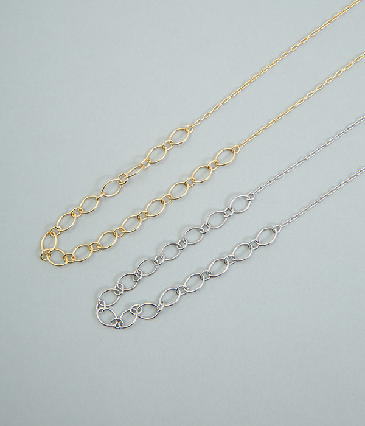 サイズの大きいチェーンは小ぶりのリングを挟んでメリハリを