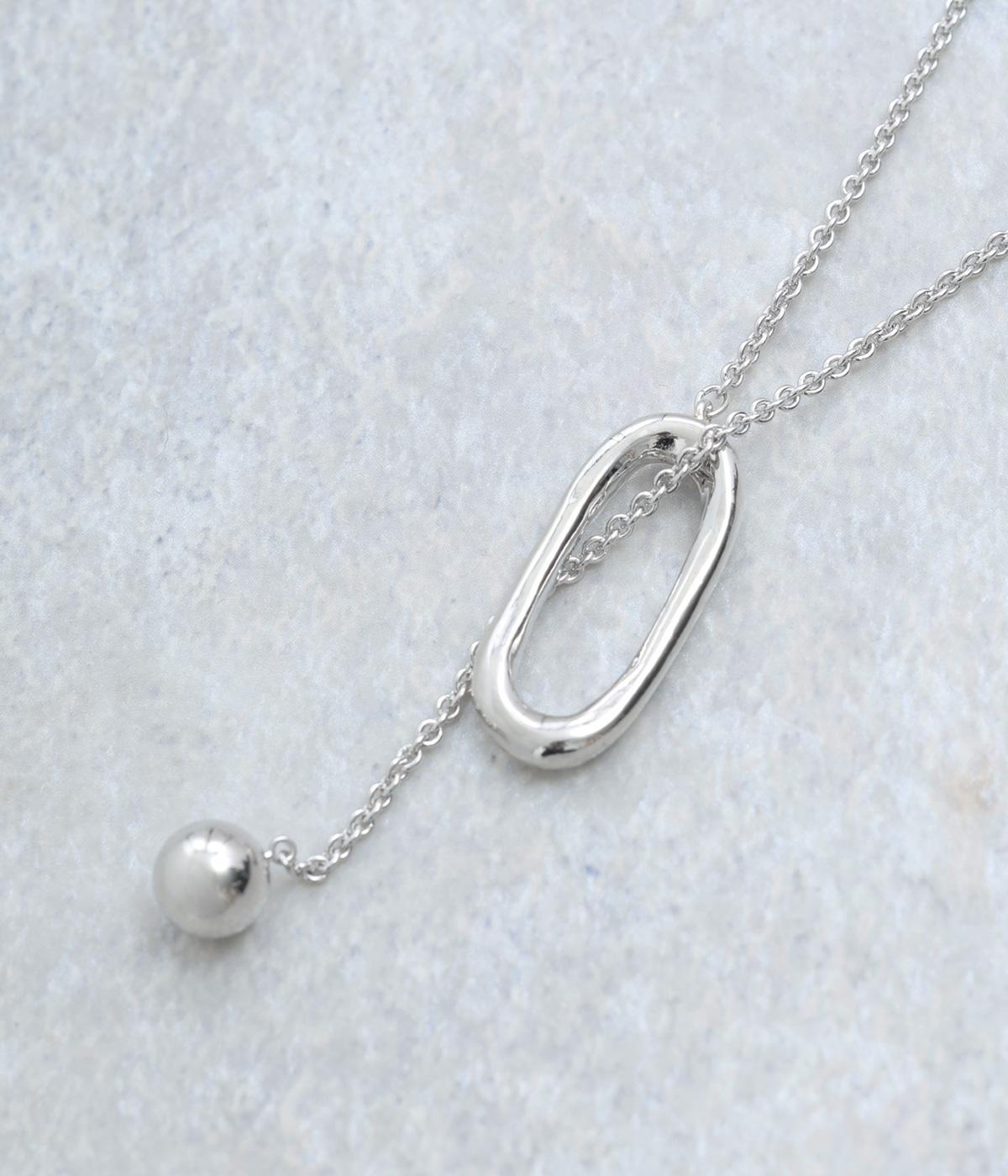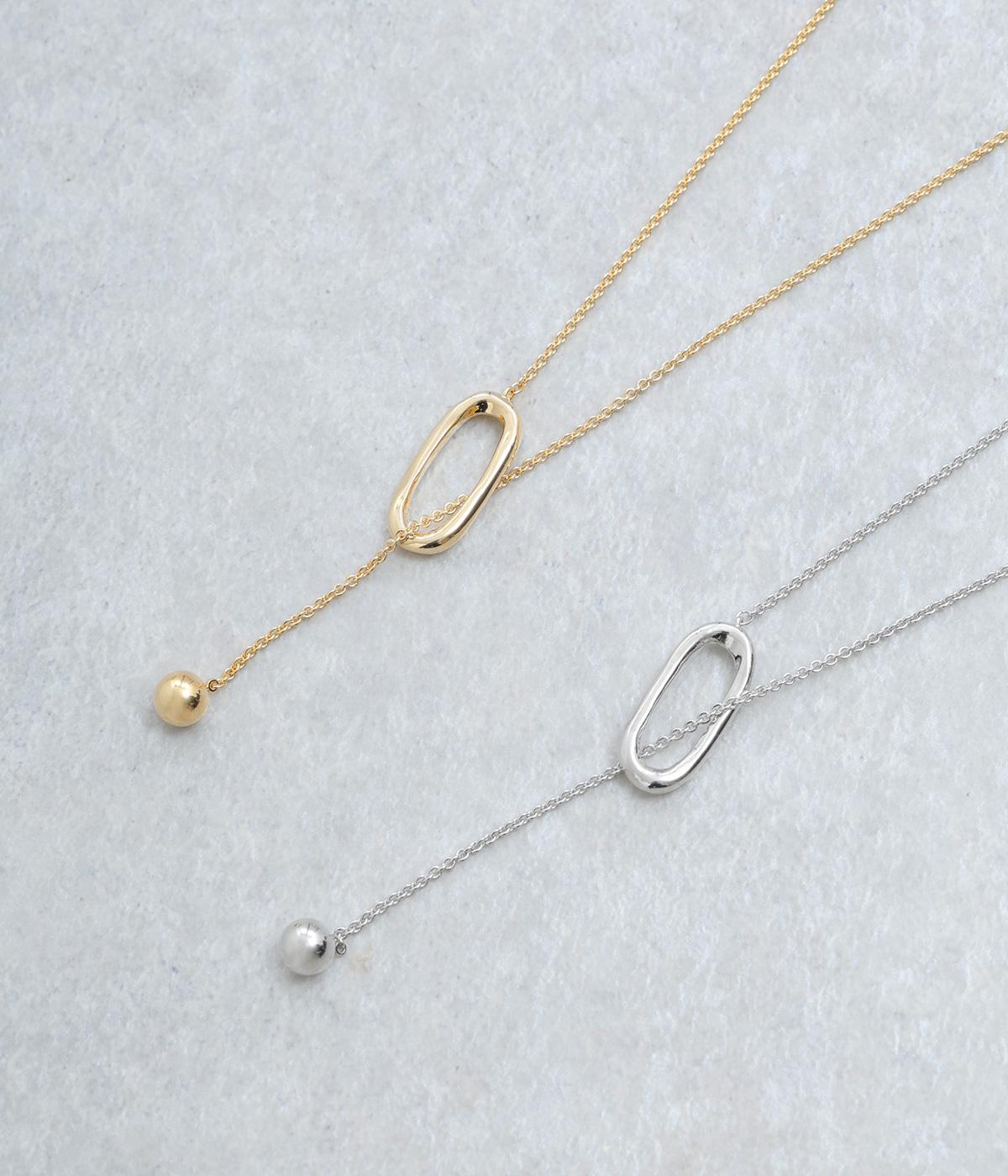 メタルのリングパーツと丸いモチーフを組み合わせたチェーンネックレスです。スライドパーツで長さ調節ができ、着脱も簡単。華奢めなサイズのチェーンを採用しているので、様々なスタイリングに合わせやすい仕上がりです。