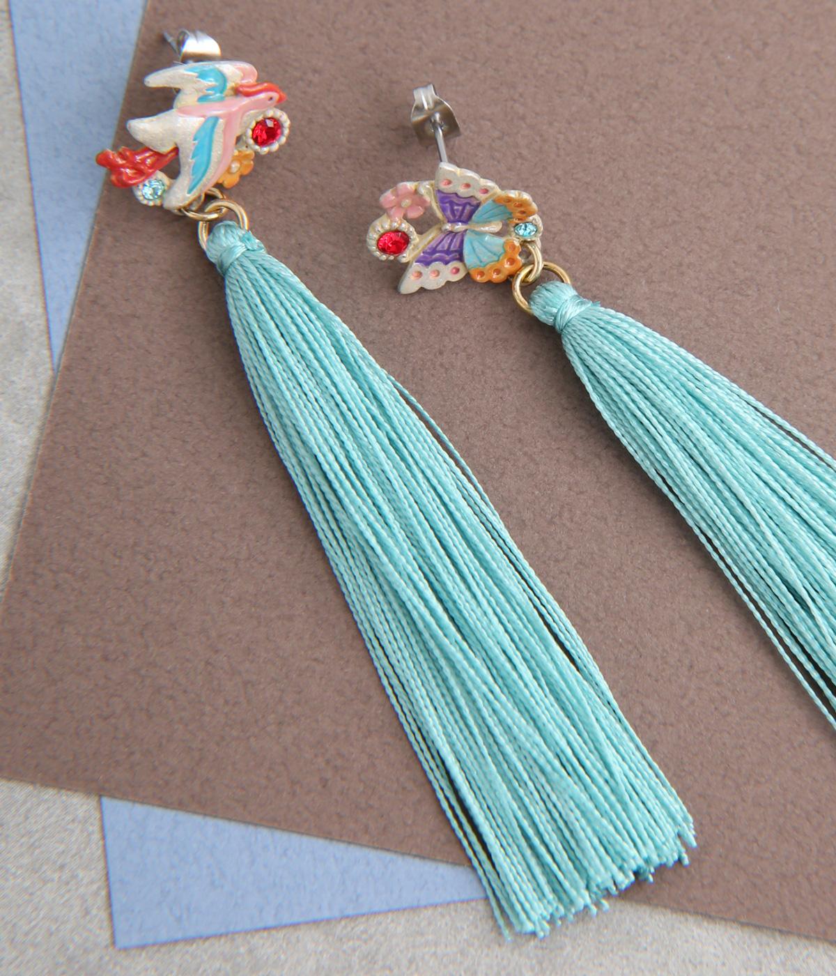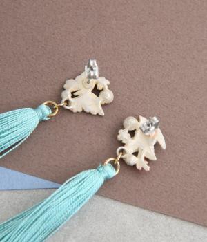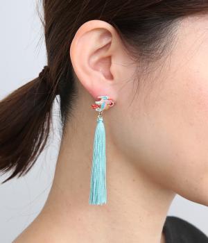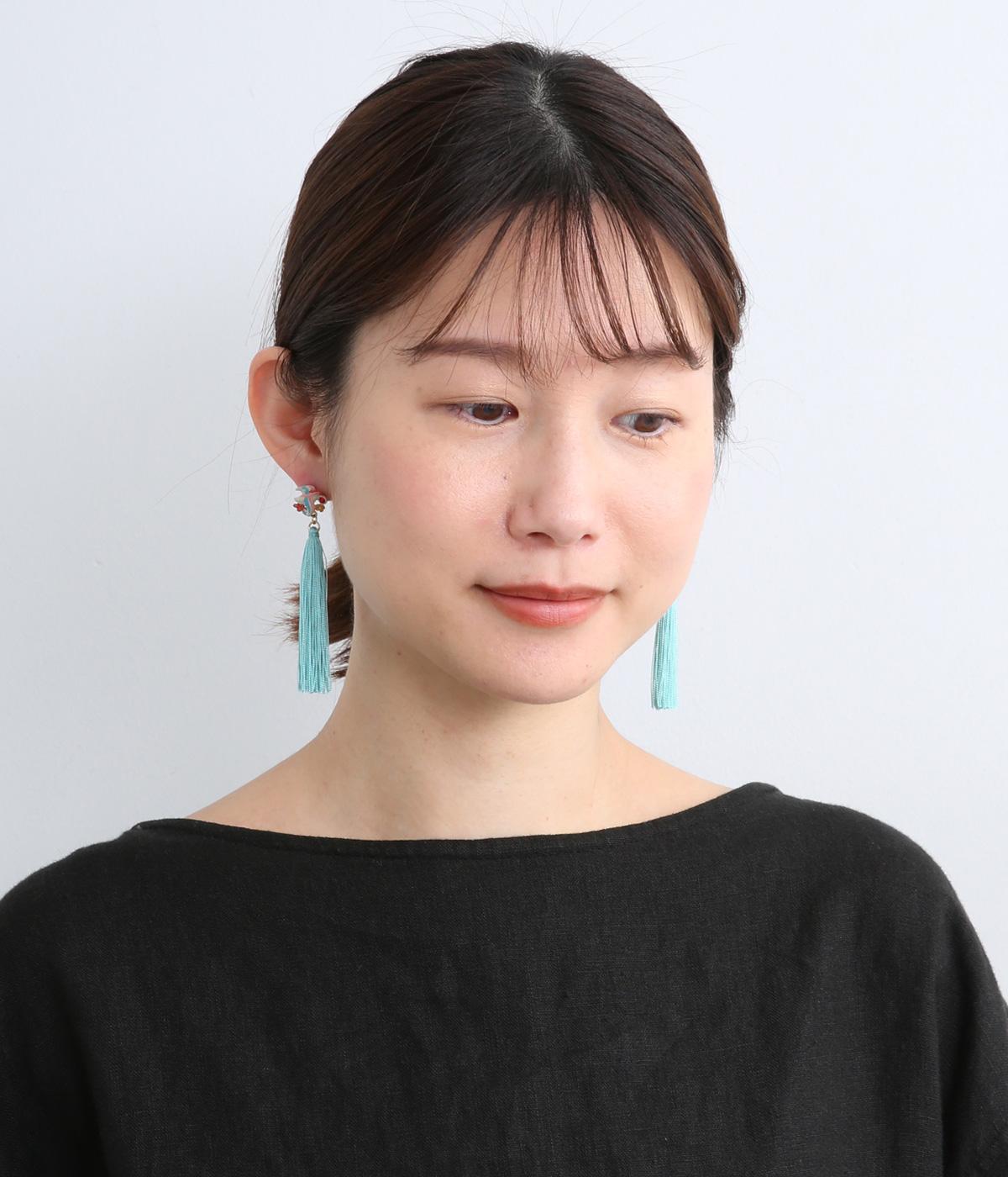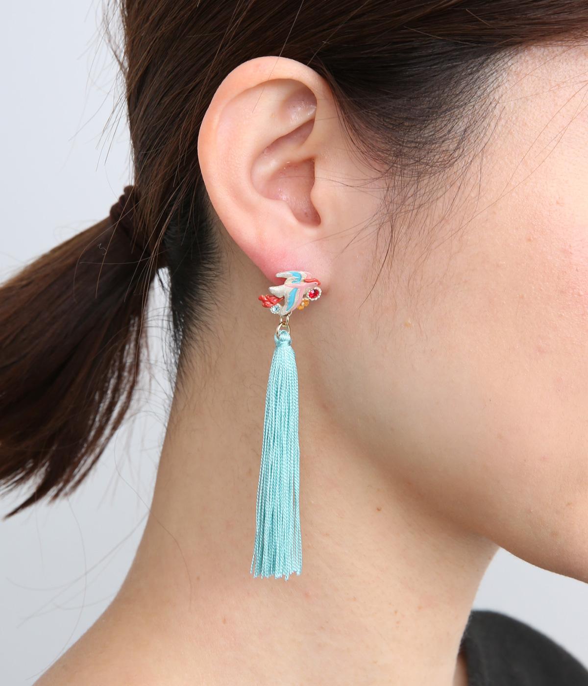 モチーフは、アンティーク風の落ち着いた質感と、独特の経年変化をたのしめる、錫合金のピューターを使用。真紅の輝きを放つカットガラスと、薄納戸色が優雅なシルクタッセルを合わせました。ポストはサージカルステンレス製です。