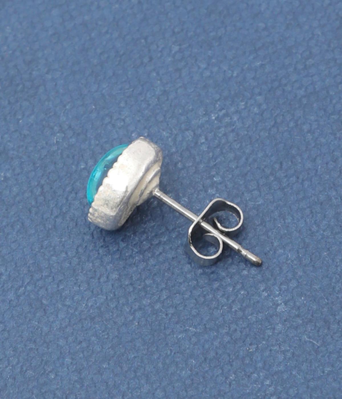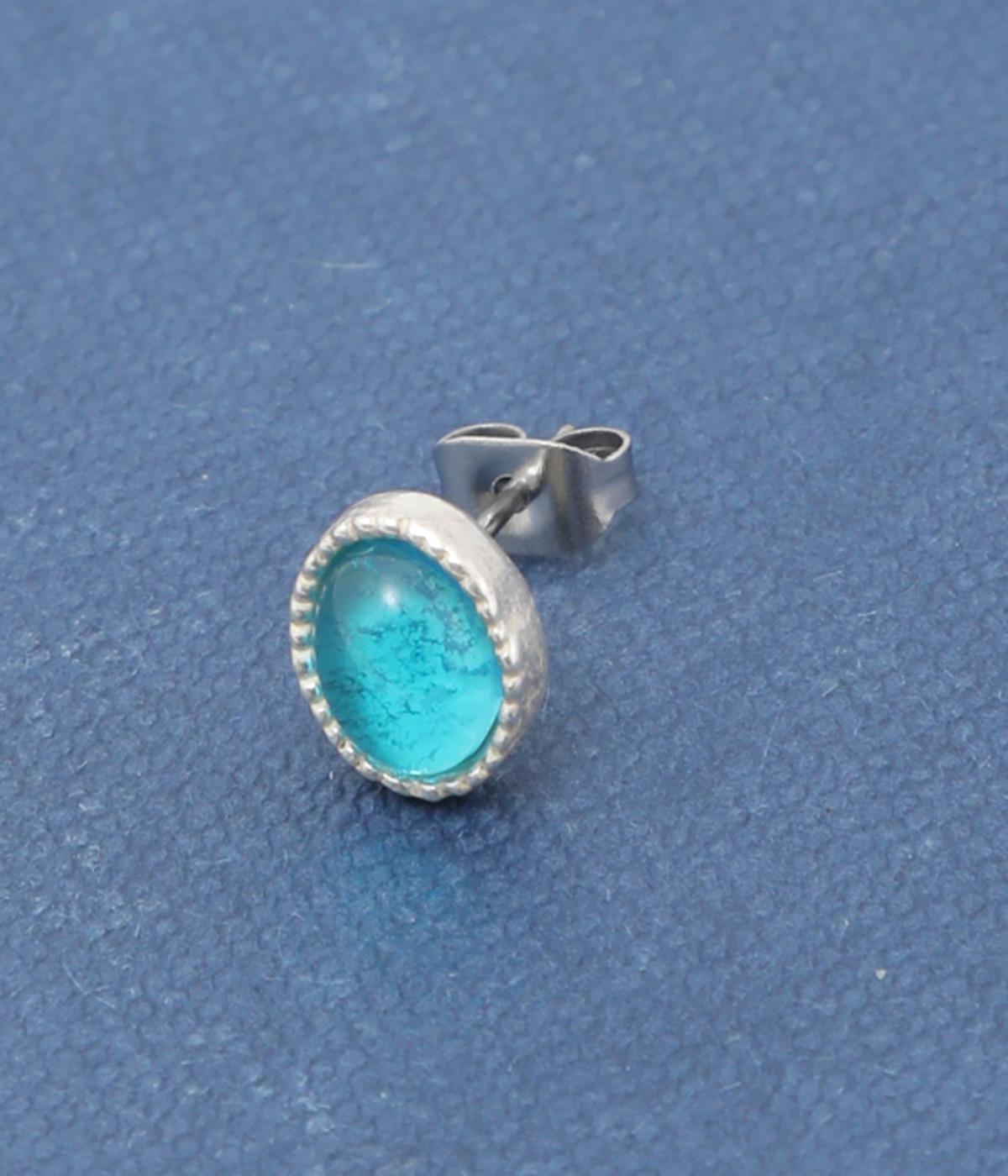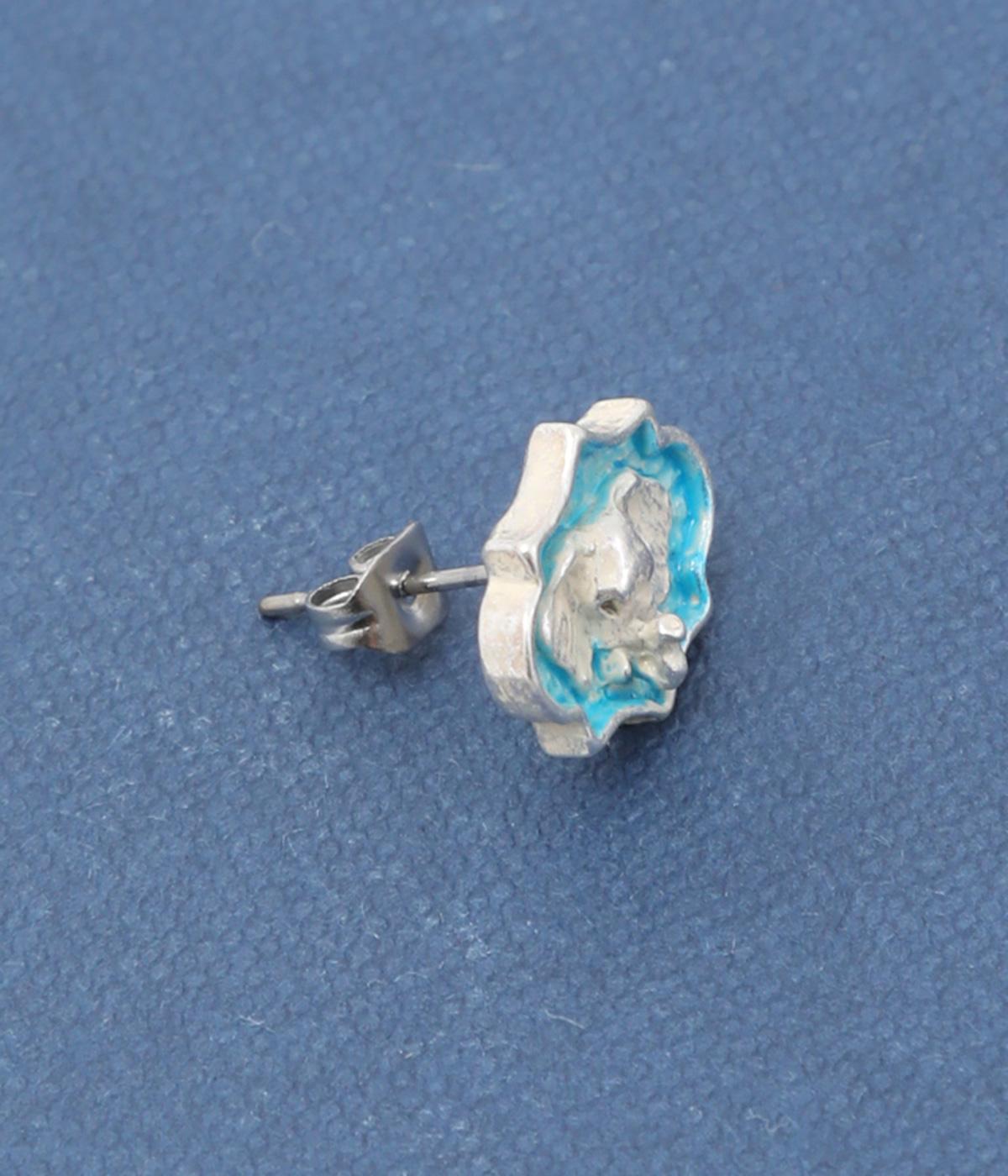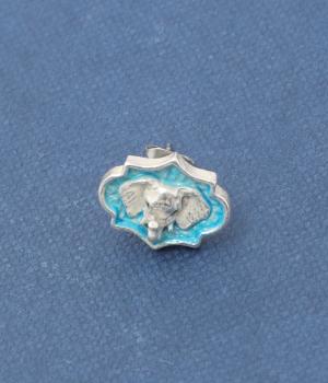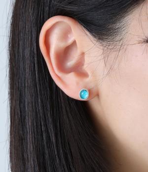 ゾウのエンブレムと楕円パーツのアシンメトリーピアス。ゾウが水浴びを楽しむ姿をイメージした、水色とシルバーを基調としたデザインです。沈着や聡明さを意味するアクアマリンをイメージした爽やかなカラーが、コーディネートを美しく引き立てます。