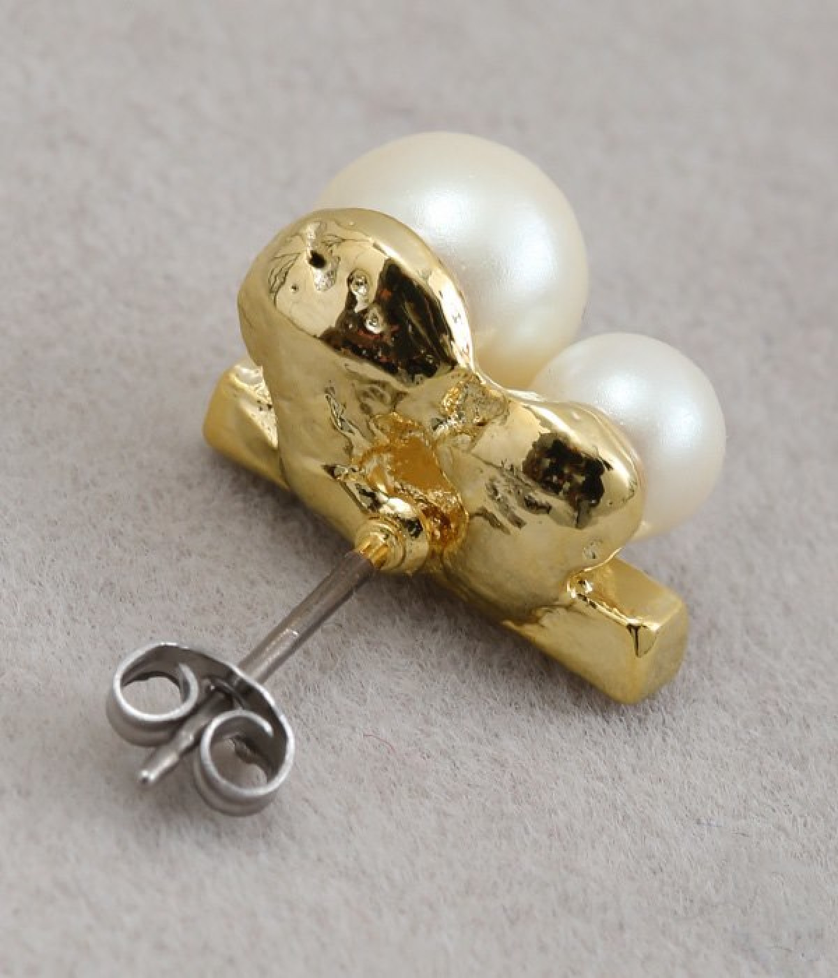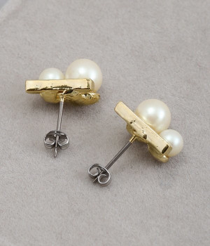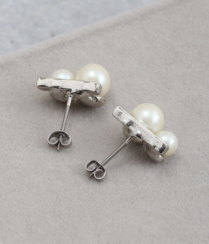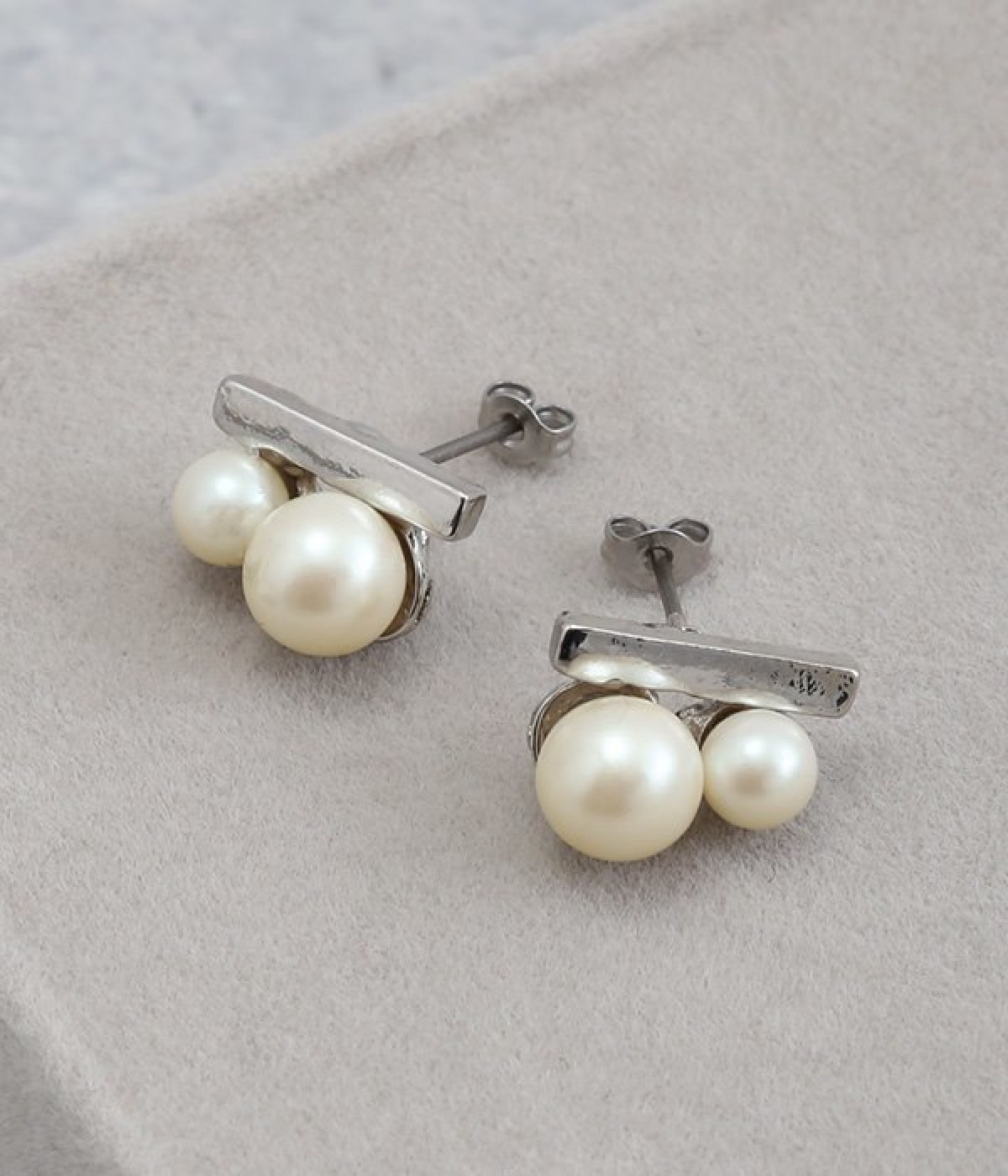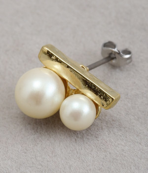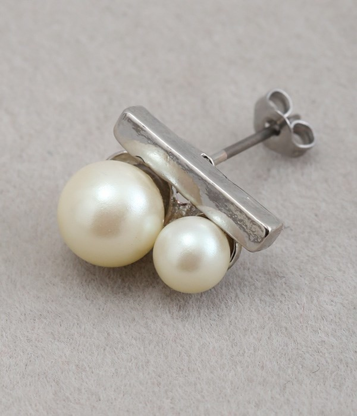 大きさにコントラストをきかせたふたつのパールが上品な輝きを放つピアス。パールに寄り添うようにメタルカラーのバーも取り入れ、さらにパッと目を惹くポイントになっています。身につけてもボリュームが出すぎず、装いにさりげなくアクセサリーをプラスしたい方にぴったり。キャッチで本体と耳たぶがしっかりと密着する安定したつけ心地も◎。普段使いにもよそいきにも、シーンを問わずに無理なくなじみます。