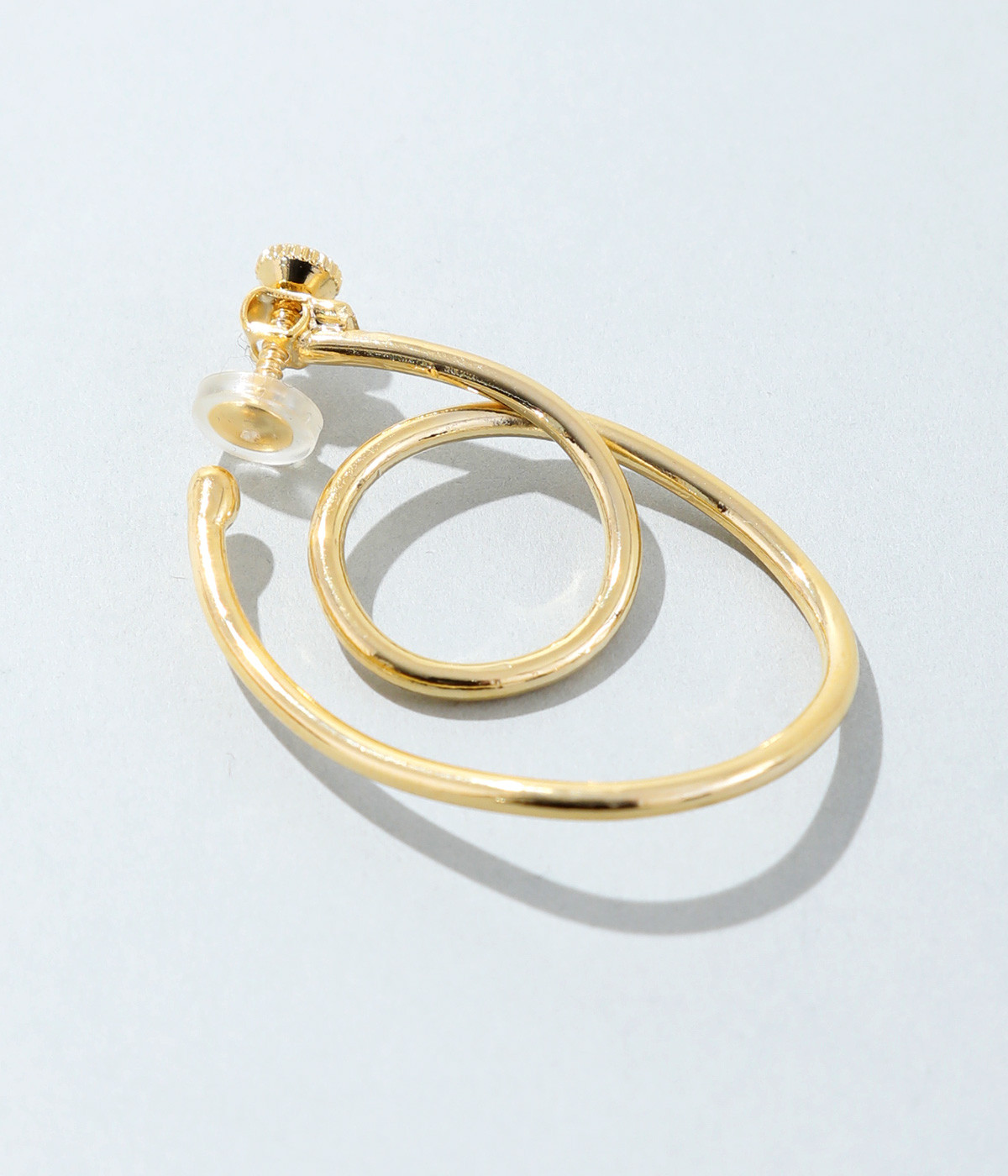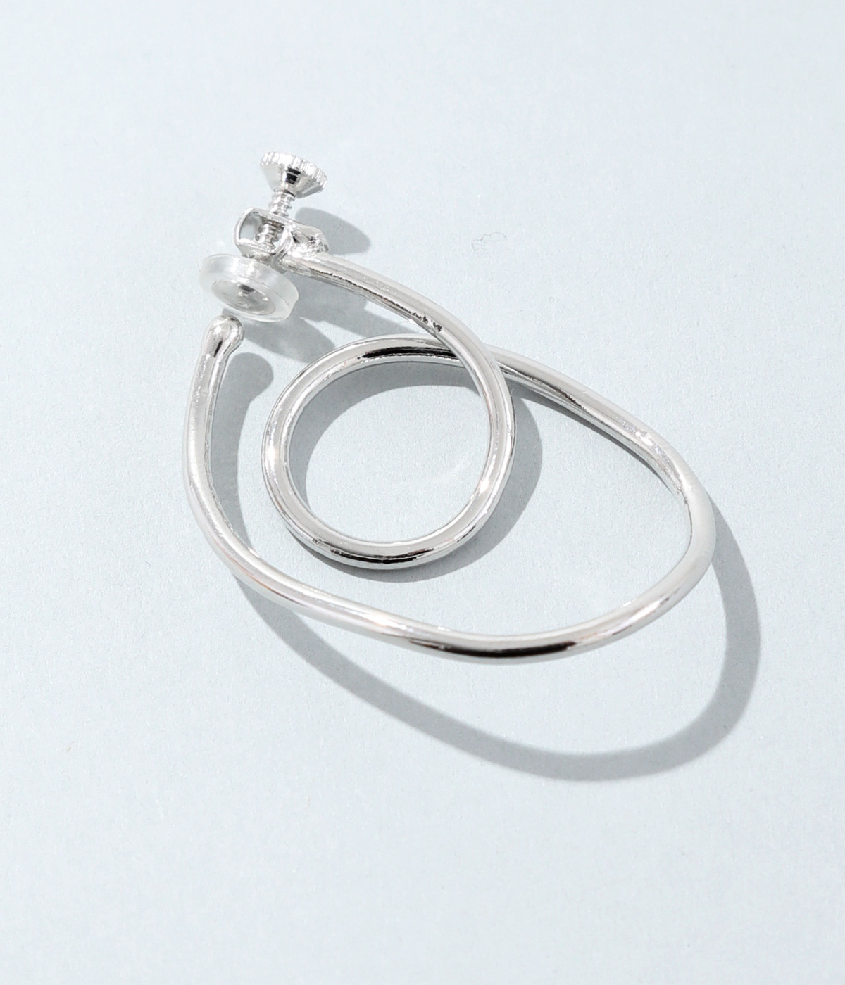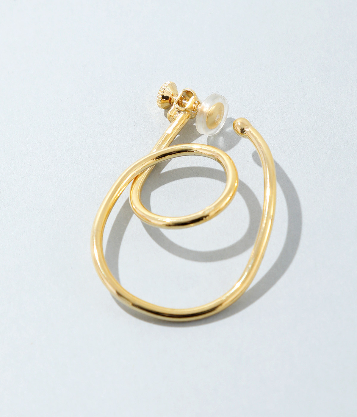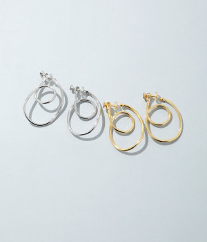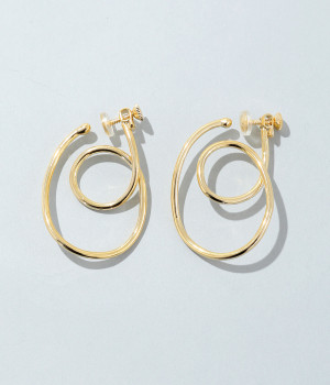 ピアスのように見えるフープイヤリングを、美しい曲線で表現。手曲げならではのクラフト感ある雰囲気で、コーディネートのポイントになります。サイズ調節しやすいネジバネ式。