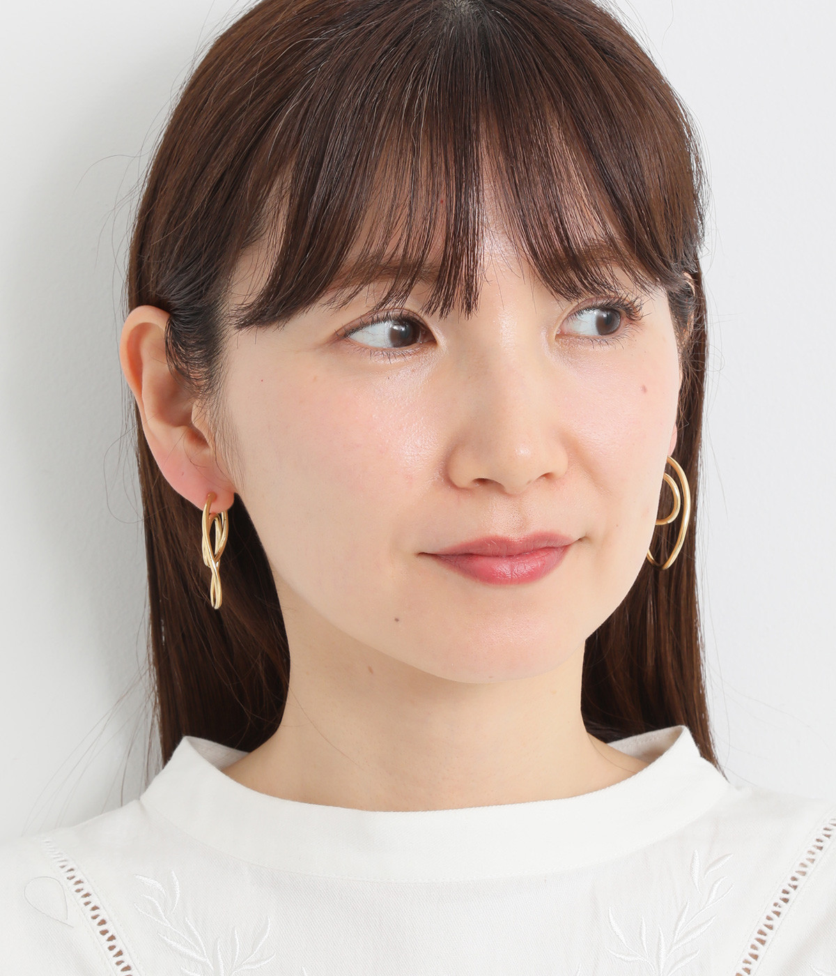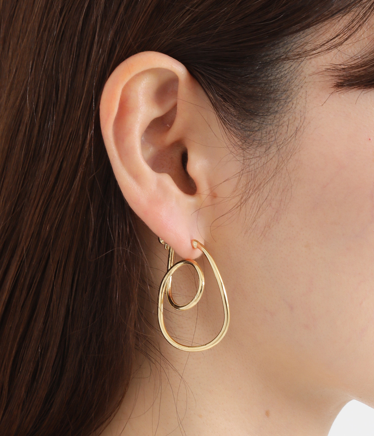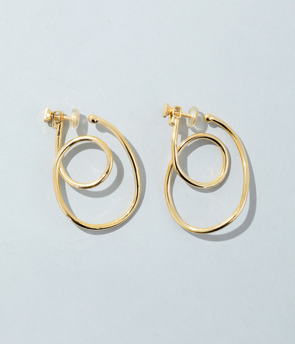 ピアスのように見えるフープイヤリングを、美しい曲線で表現。手曲げならではのクラフト感ある雰囲気で、コーディネートのポイントになります。サイズ調節しやすいネジバネ式。