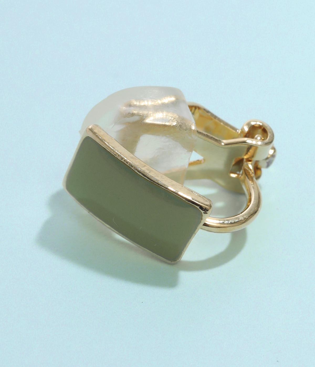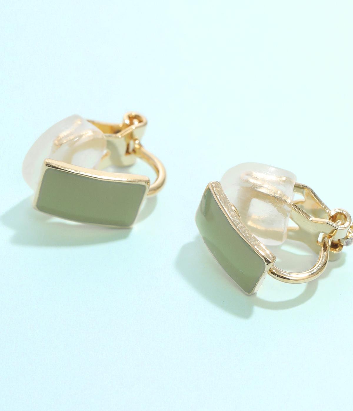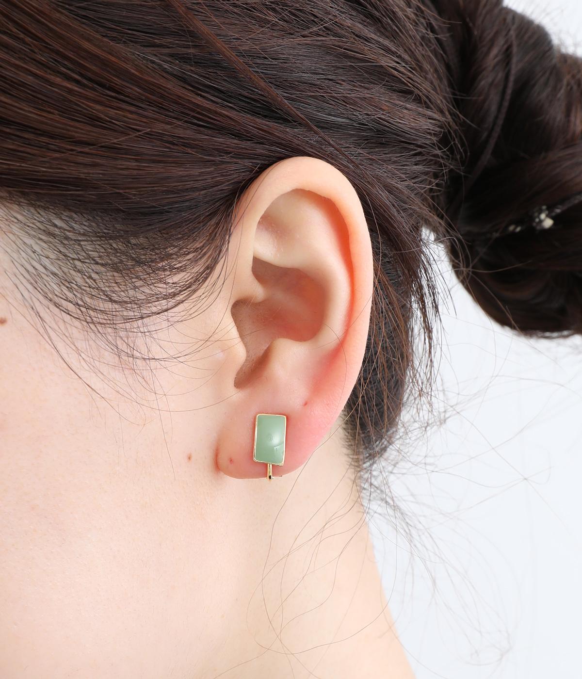 ほんのりと曲線を描く長方形モチーフが大人っぽいイヤリング。エポキシ樹脂は顔まわりを明るくしつつ、取り入れやすい色味で仕上げました。使い勝手の良い小さめのサイズ感も魅力です。