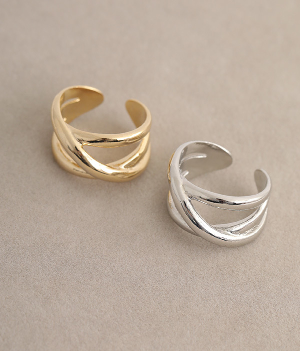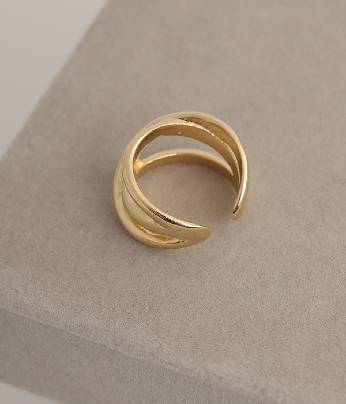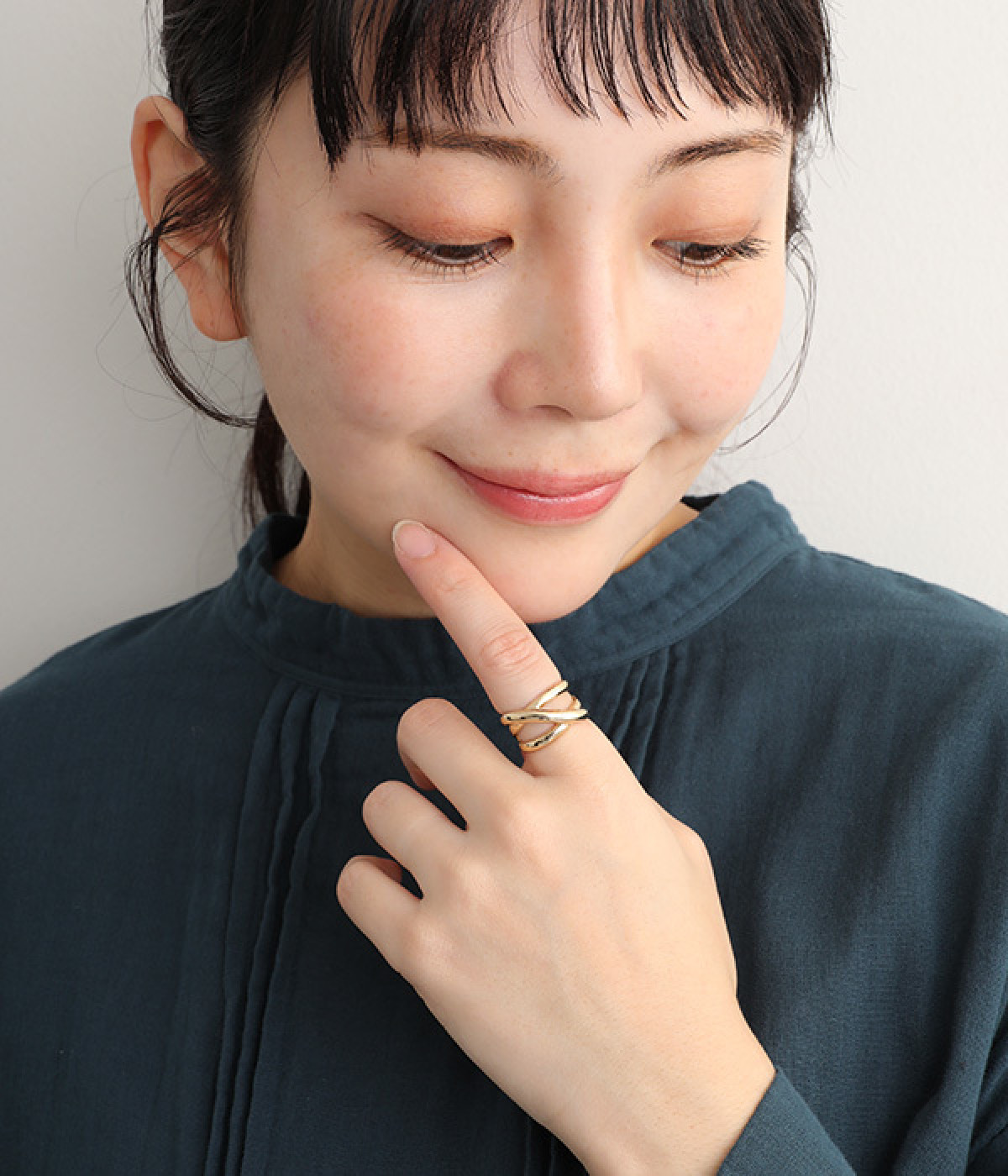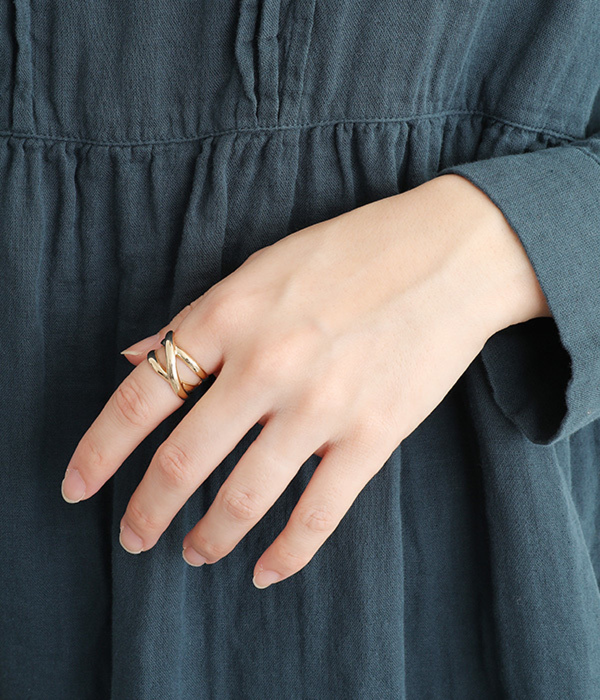 細いリングと合わせた重ねづけもおすすめ