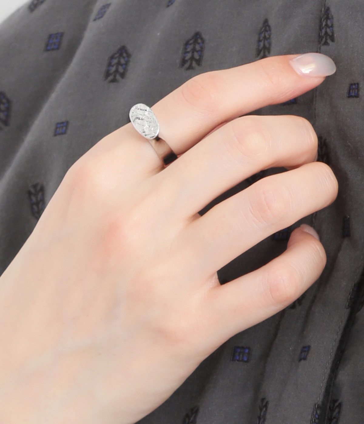 表面の加工により表情豊かに仕上げたリングです。さりげない個性がありつつも主張しすぎないデザインで、幅広いシーンで活躍。定番として長く愛用できます。