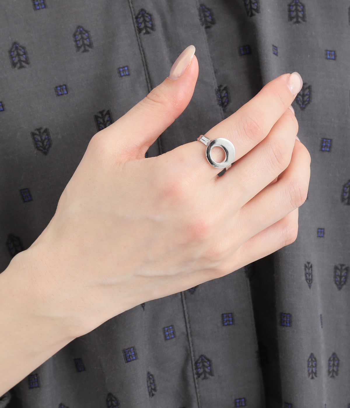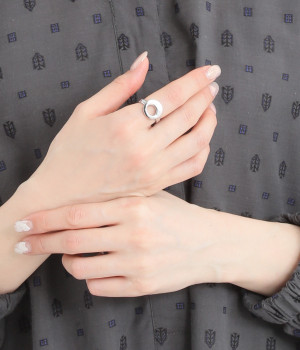 満月のような丸いモチーフをあしらったリング。個性がありつつも主張しすぎないデザインで、幅広いシーンで活躍します。ほかのリングとの重ねづけもおすすめです。
