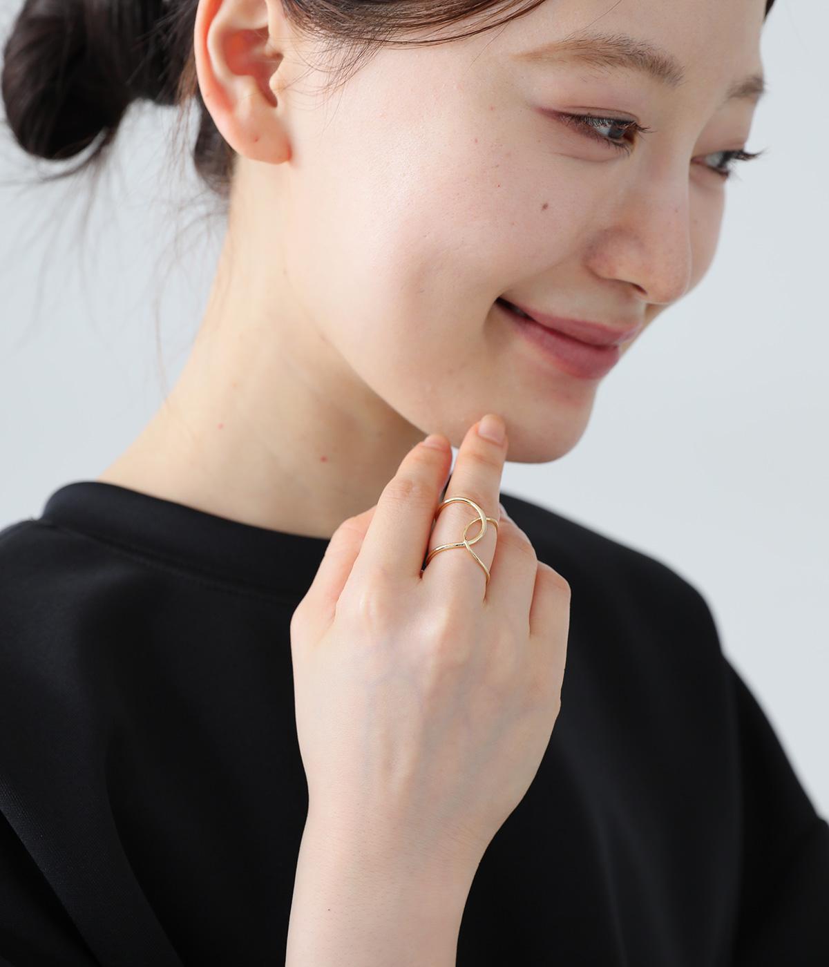 ゆるやかに曲線を描くフォルムが女性らしい抜け感をうむリング。大ぶりながらも線が細いのできれいめな印象に仕上がっています。さまざまな装いになじみやすく、デイリー使いにぴったりです。