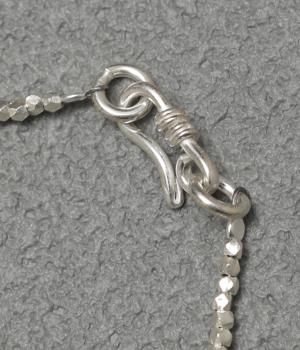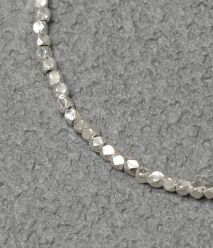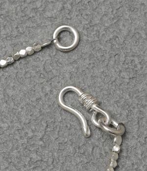 上品で洗練された印象のシルバービーズを使用しています。大人の装いにもなじむクールな煌めきがさりげない存在感を放ちます。