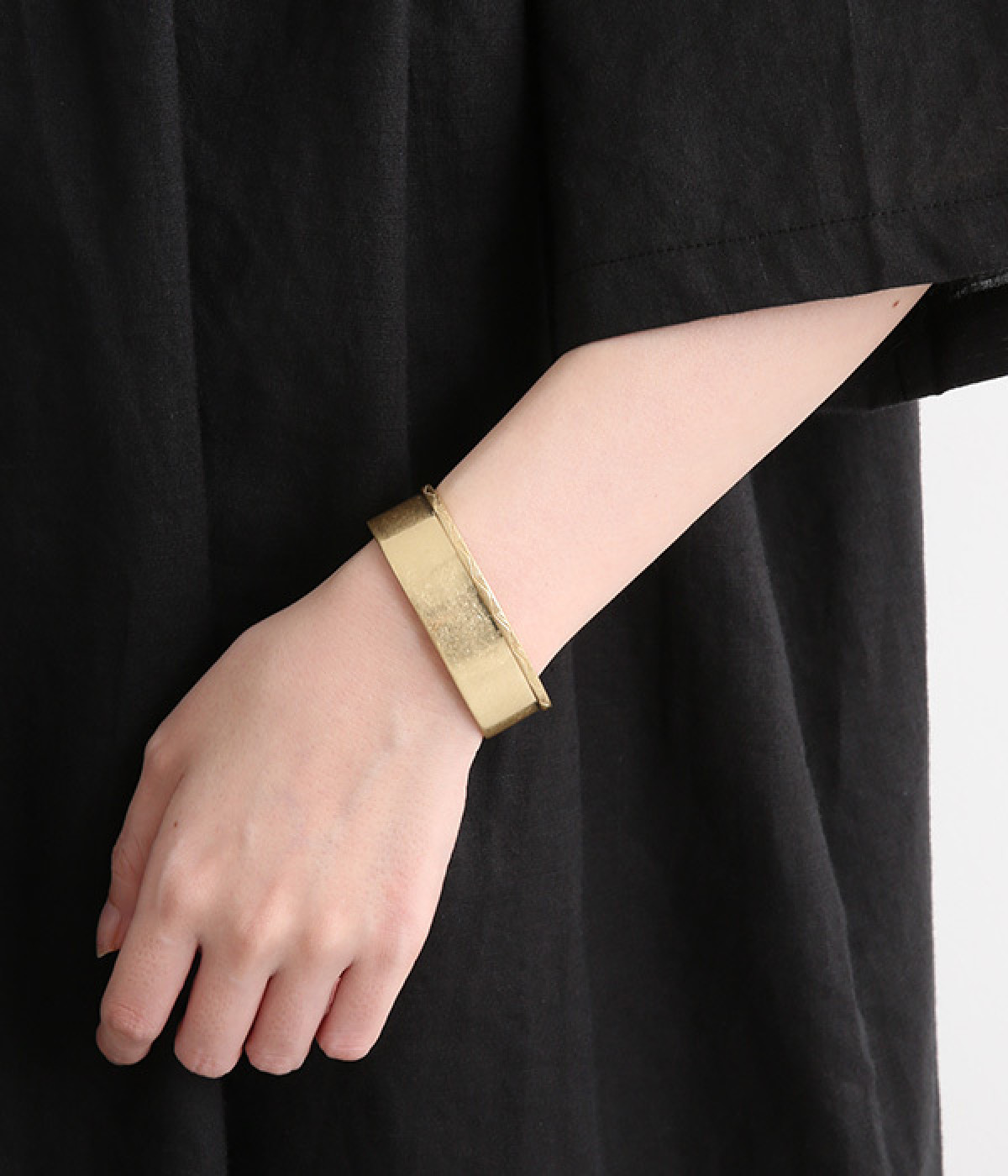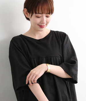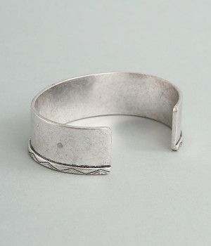70年代を感じるヴィンテージライクなバングル。シンプルながらもスタイリングを引き締めてくれる大ぶりフォルムです。モードなドレスワンピースでシャープにまとめたり、シンプルなTシャツ&デニムパンツ合わせで注目ポイントをつくったりとアイデアが広がります。お肌に優しいニッケルフリーメッキを使用しているのもうれしいポイント。