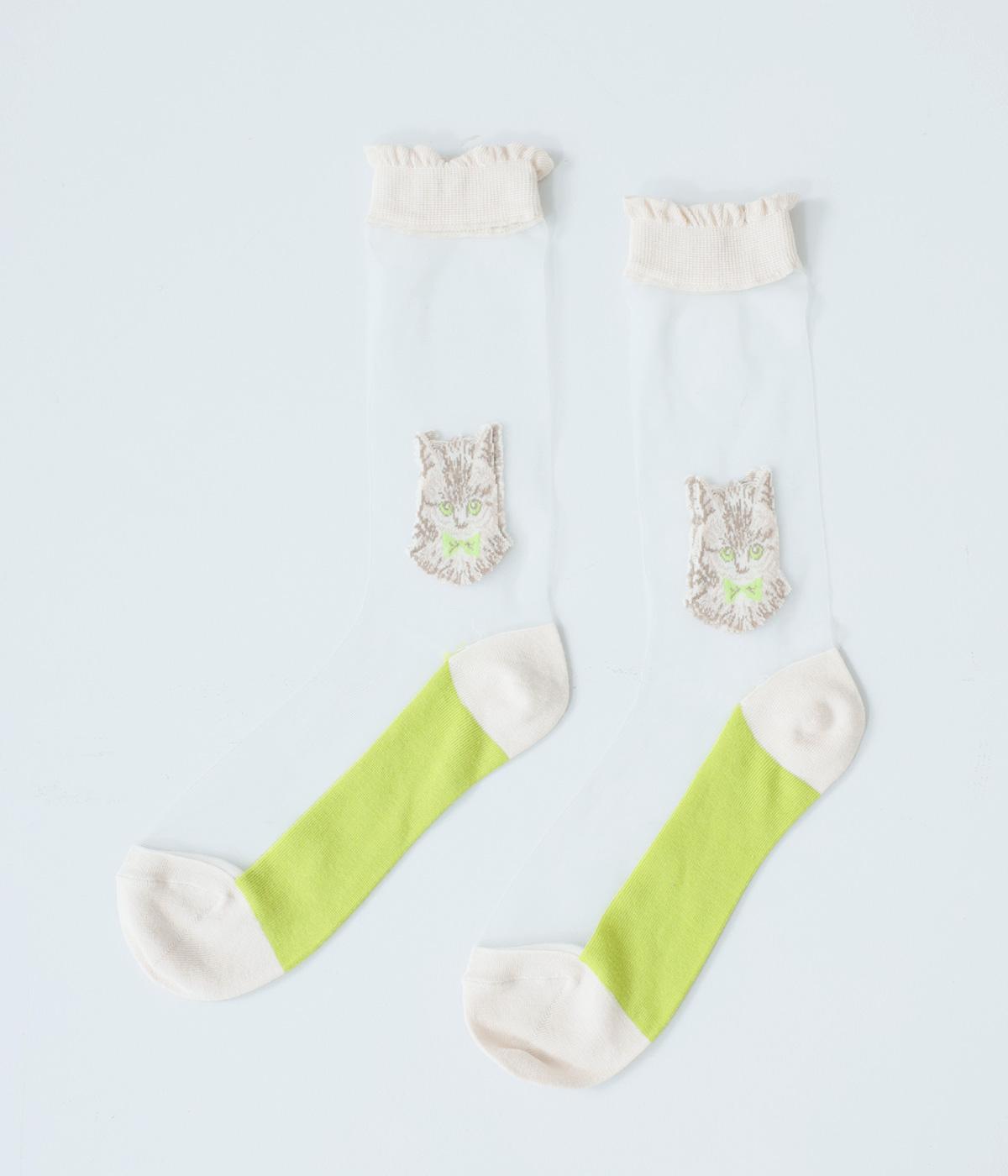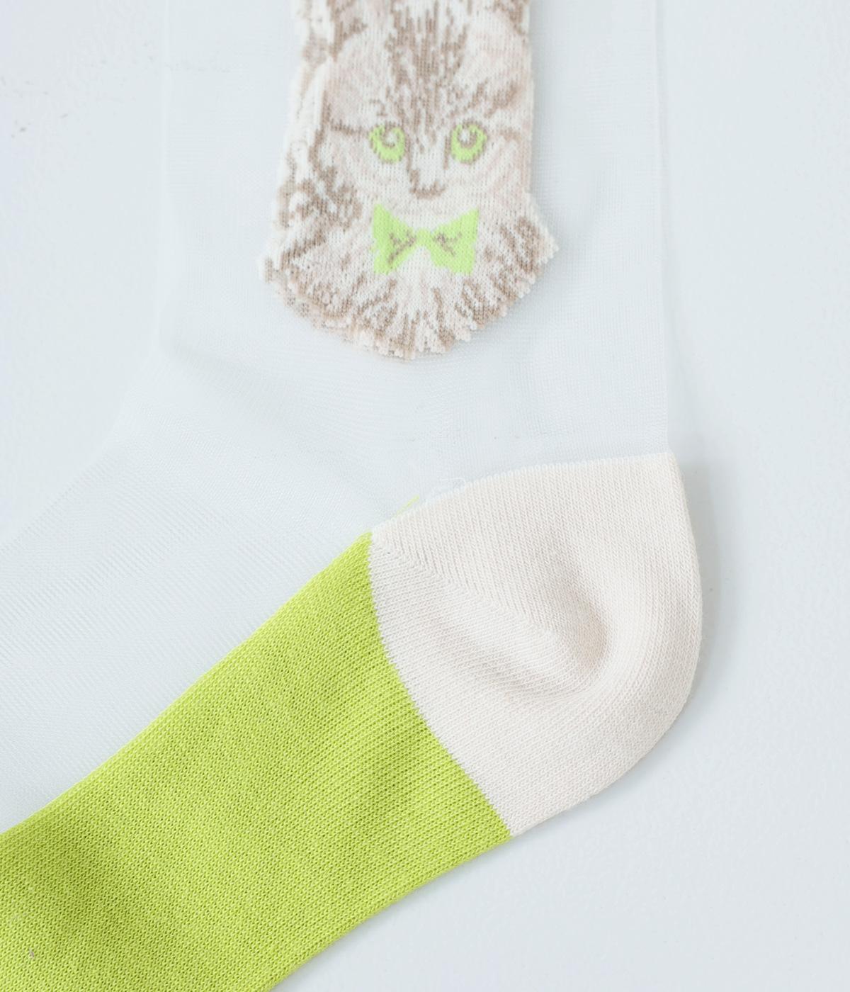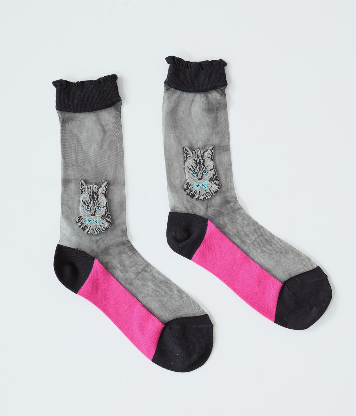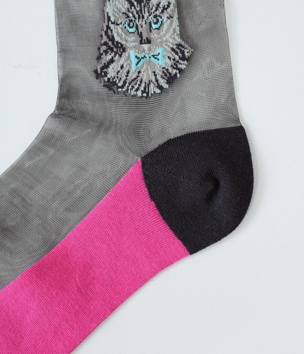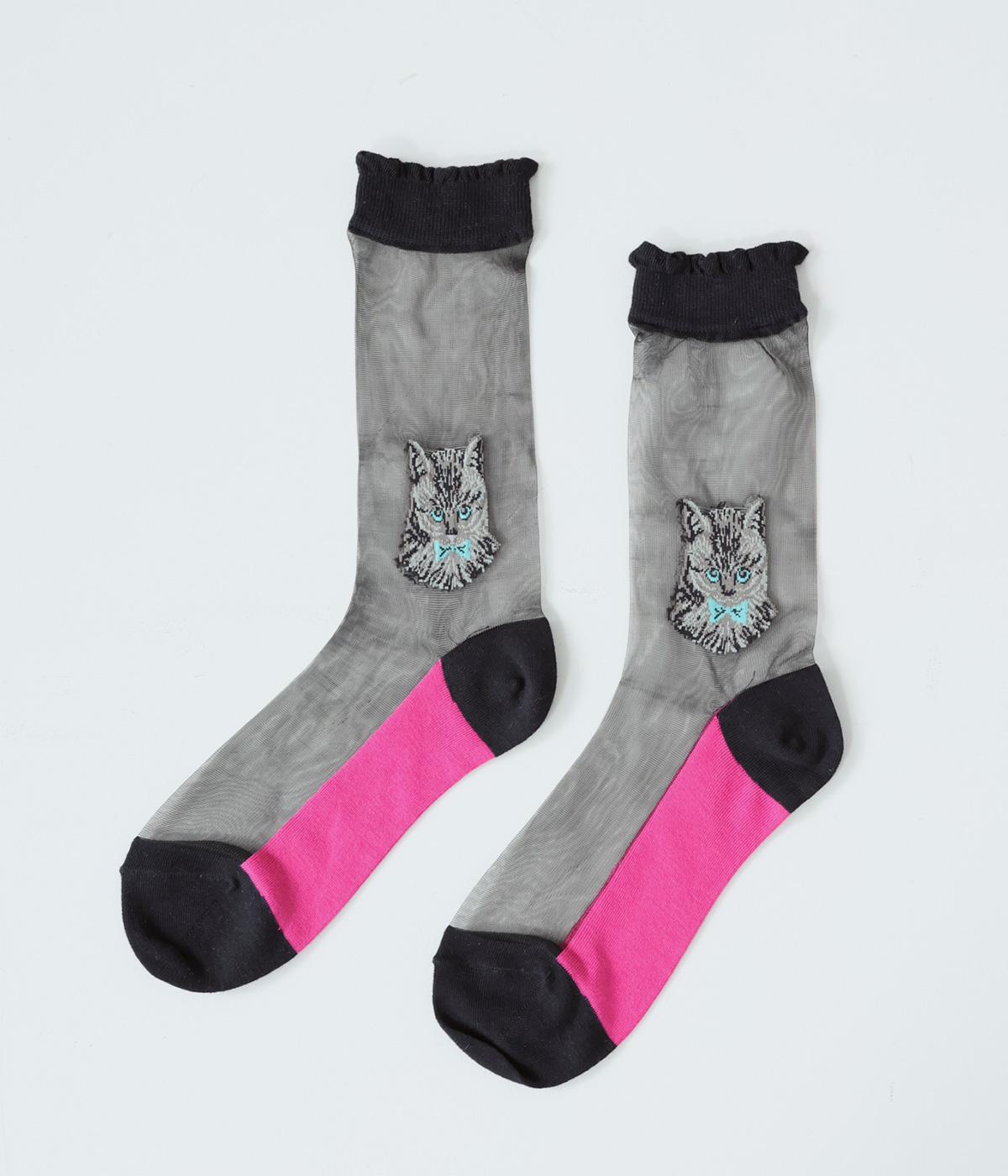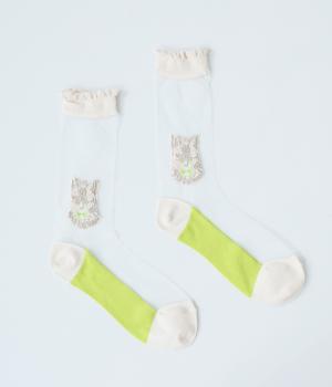 ドット柄ソックスと、愛らしい猫をデザインしたシースルーソックスの2足セット。それぞれ一枚ではもちろん、重ねるとより華やかなデザインをたのしめます。サンダルやパンプスにも相性がよく、コーディネートのアクセントにぴったりです。