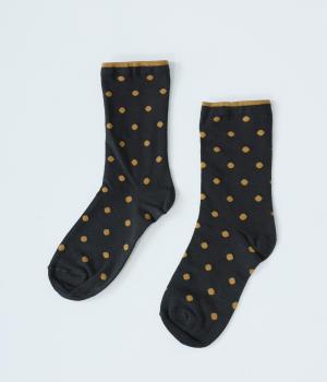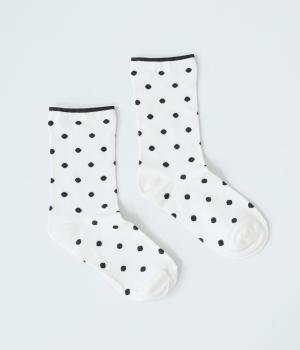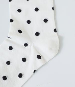 ドット柄ソックスは滑らかで心地よい肌ざわりが魅力のコットンナイロン生地で、デオドラント加工をほどこした糸を使用しています。繊細な柄をデザインしたシースルーソックスは、ショート丈のストッキングとしても使用可能です。