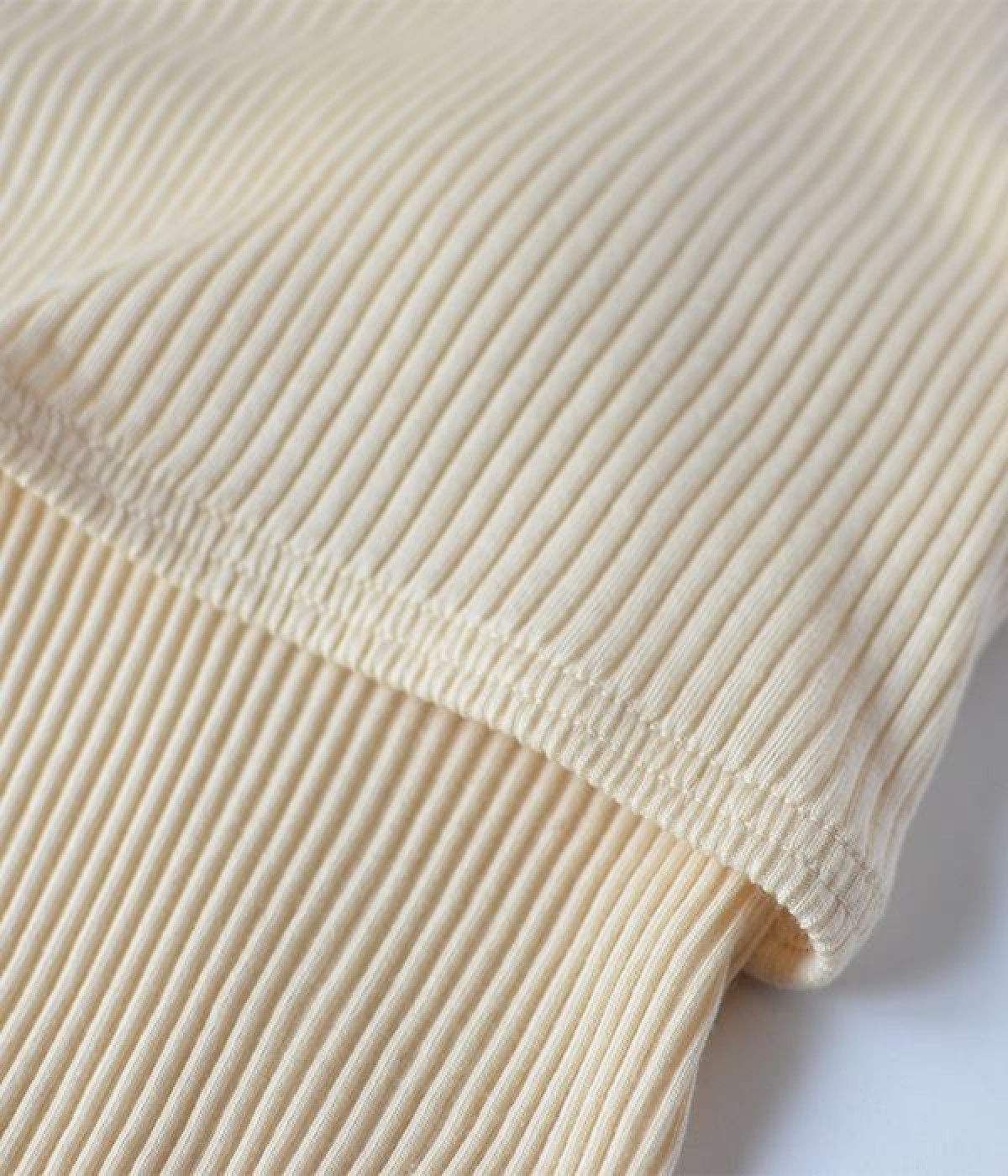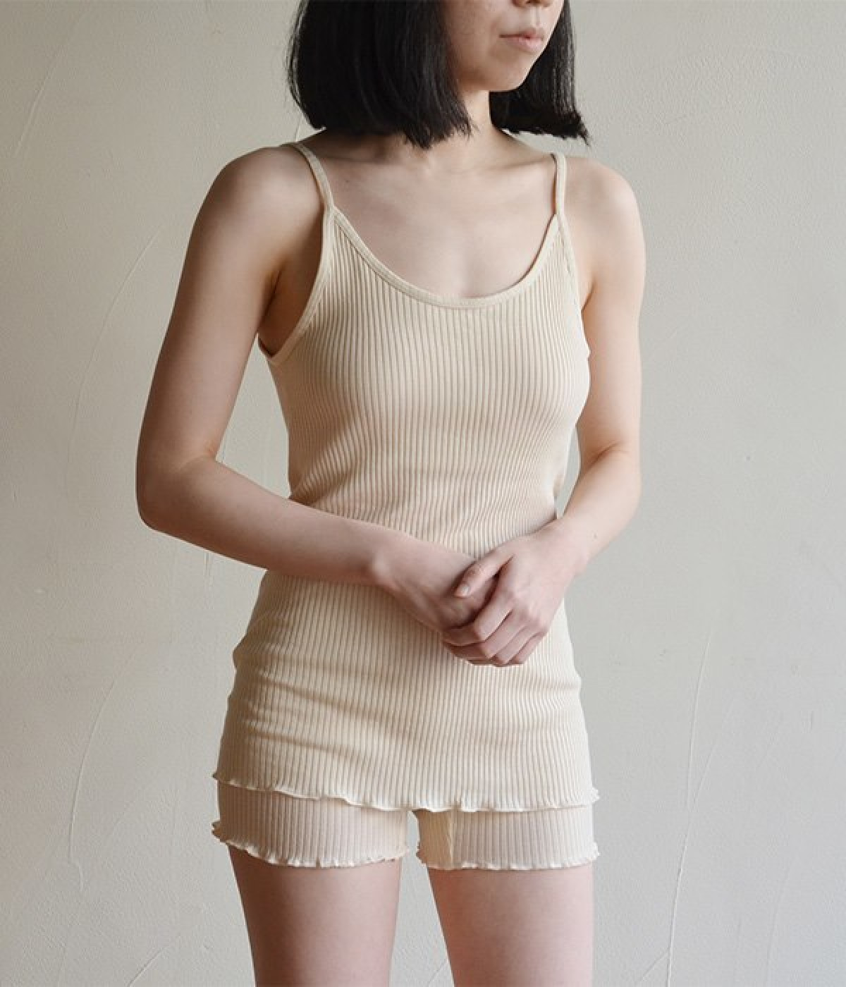 凹凸のあるリブ編みで伸縮性の高い、オーガニックコットンのカップ付きキャミソールです。繊維一本の長さが35mm以上もある貴重な高級綿「スーピマ」を使用し丁寧な縫製によって作られています。背中の仕様を2枚重ねに改良して、汗ばむ季節に蒸れにくくしています。アンダーに細いゴムが入っているのでバストも安定。他の種類の綿花に比べてさらに柔らかく、しっとり滑らかな肌触りと保湿性に優れた暖かな着心地が特徴です。肩紐の長さが調節できるアジャスター付き。