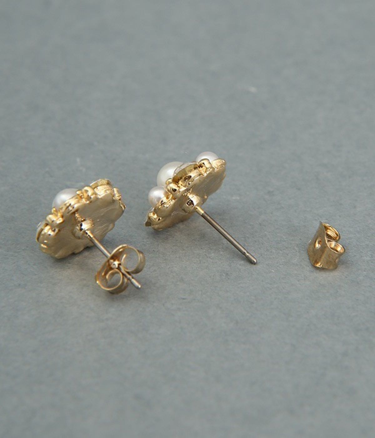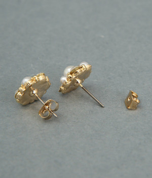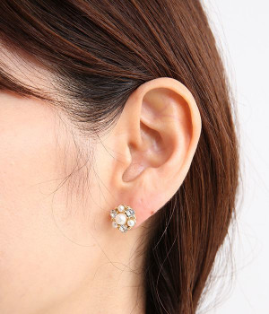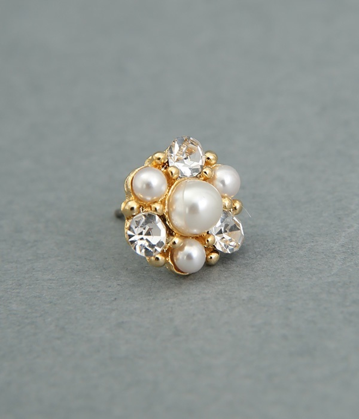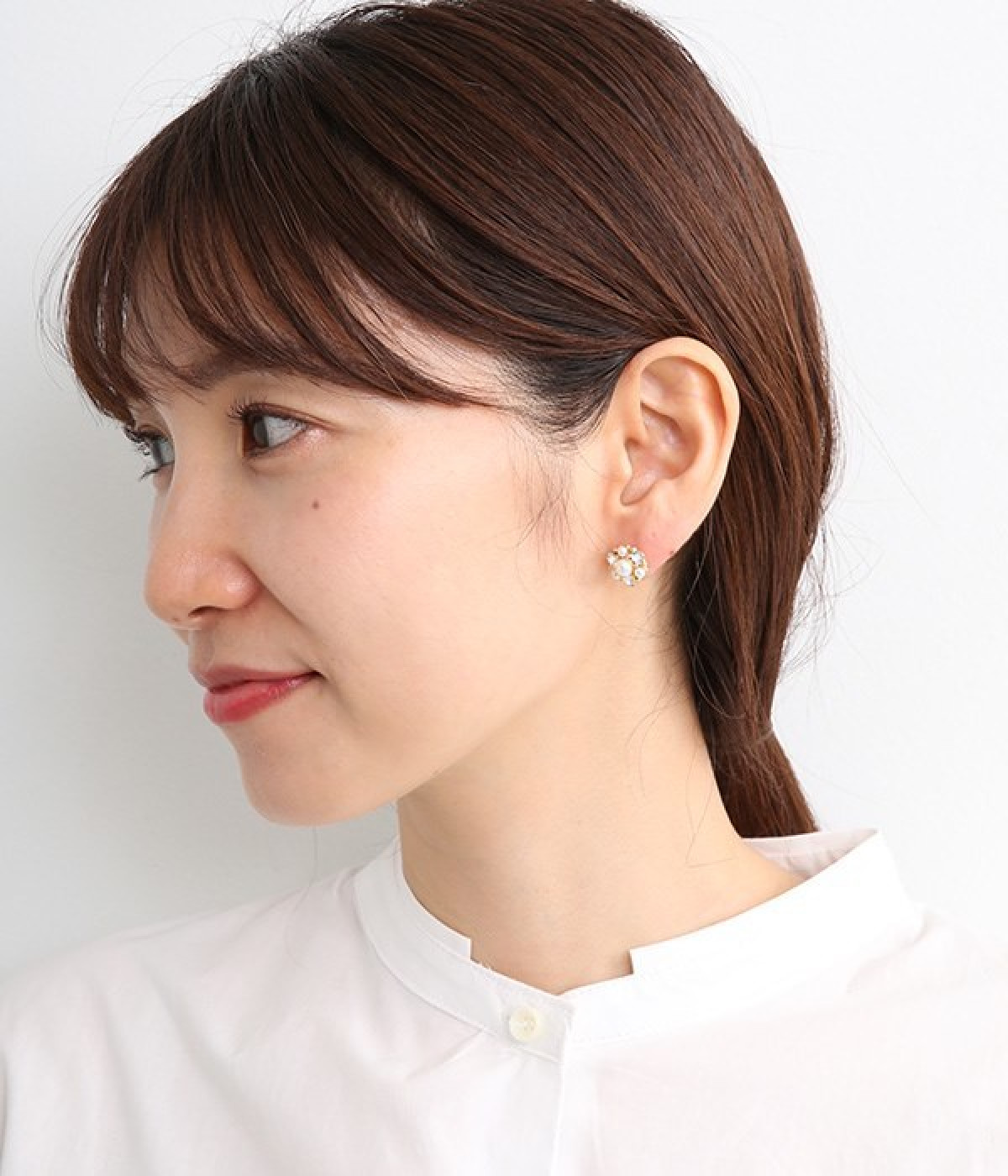 まろやかなつやめきのパールとカットストーンを添えた、アンティーク調デザインがポイントのミニピアスです。小ぶりでも存在感があり、耳元を華やかな印象に飾ってくれます。合わせるコーディネートを選ばず、普段使いからフォーマルなシーンまで幅広く使えるちょうど良いサイズも魅力です。