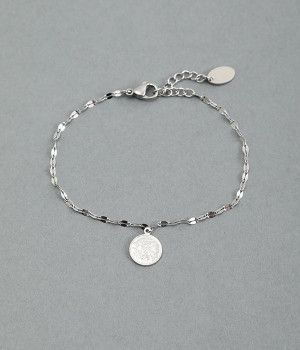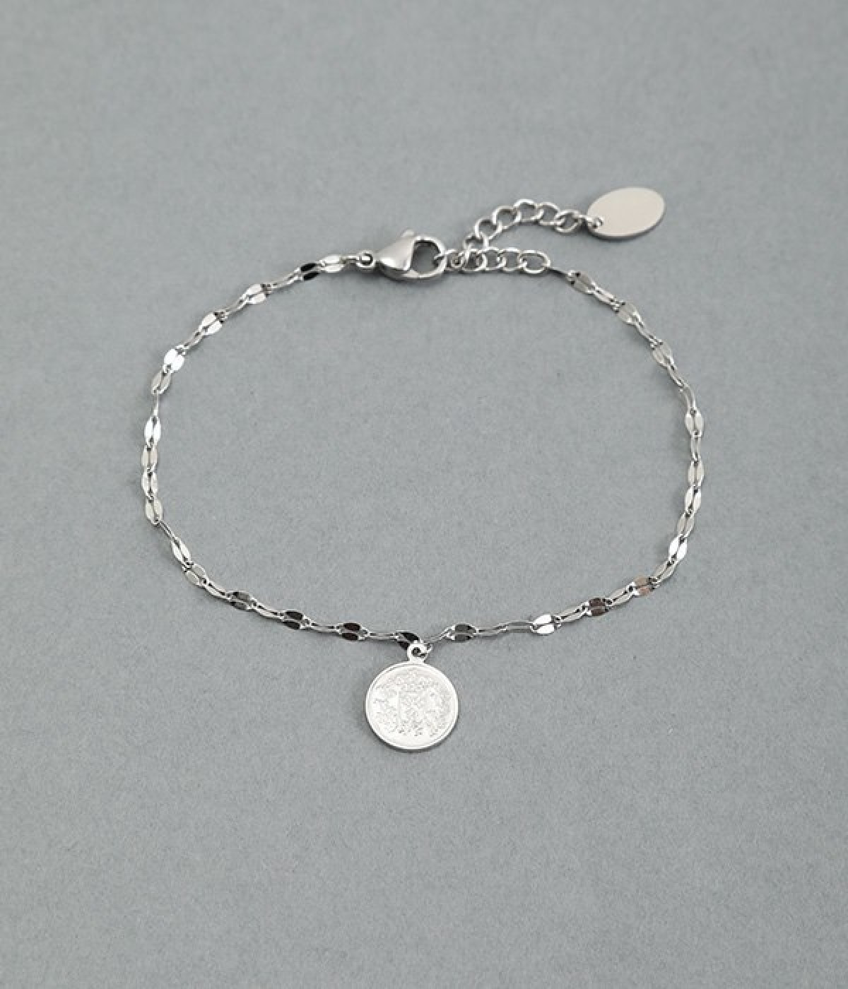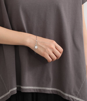 コインモチーフをポイントにしたチェーンブレスレットです。ベーシックなデザインのチェーン+コインモチーフは、きれいめにもカジュアルにもなじんでコーディネートを選びません。見る角度が変わるたびにキラキラと輝く繊細なチェーンは、軽やかで快適な着け心地。アジャスター付きなのでお好みで調節することができます。