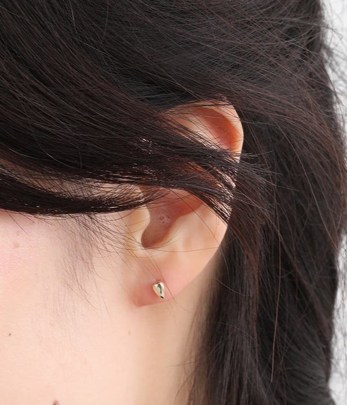 とても小さくかわいらしいサイズ感のピアス。ティアドロップ型を逆にしたような遊び心のあるデザインです。つけているのも忘れるほどの軽いつけ心地で、普段使いのストレスになりません。お手持ちの大きめピアスを重ねづけすると、サイズのコントラストが生まれてさらにおしゃれな耳もとに。メタルカラー仕上げで大人の落ち着いたスタイリングにもなじんでくれます。