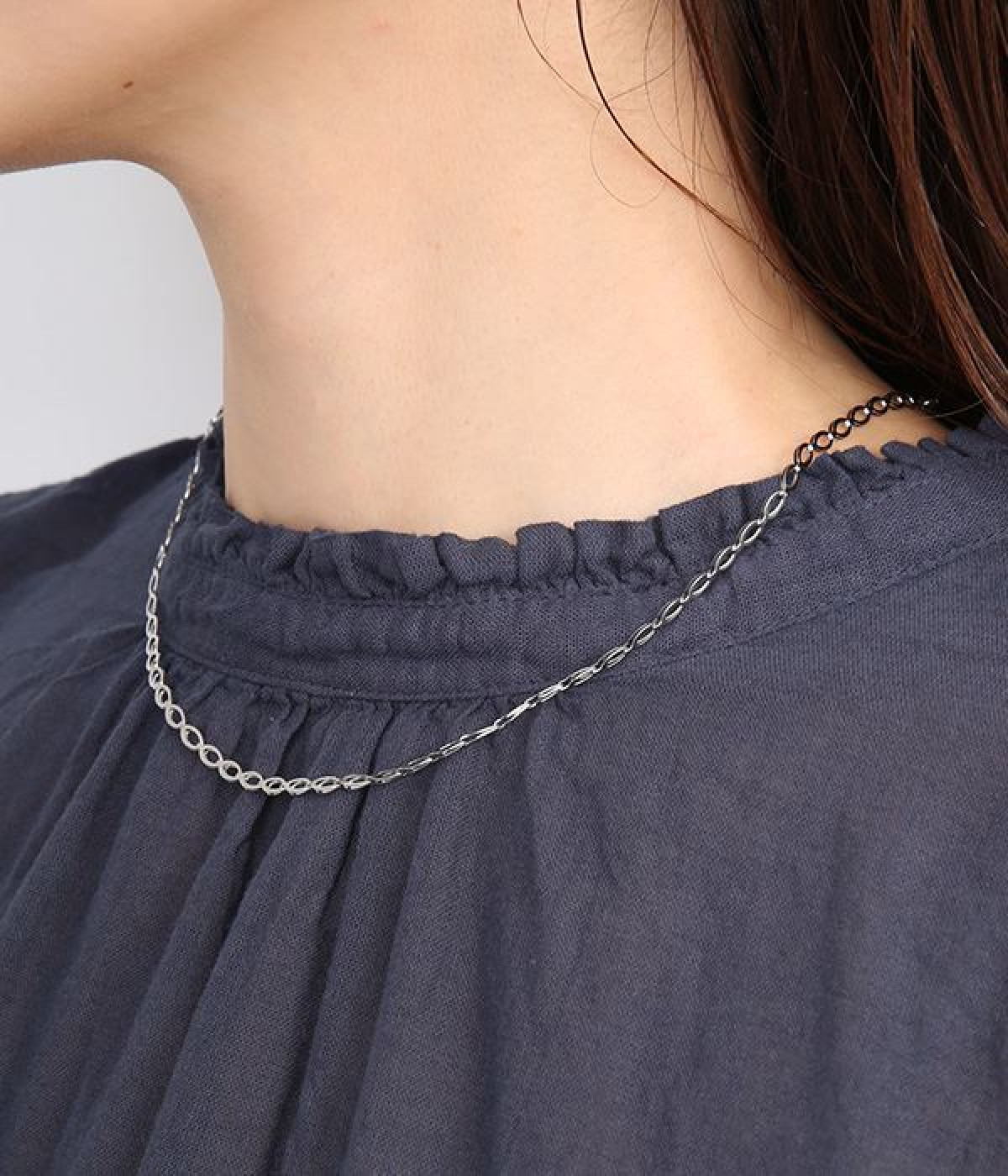 錆や傷、汚れに強く、アレルギー反応が出にくいサージカルステンレスを使用したチェーンネックレスです。デコルテにそっとかかる使いやすいショートタイプ。首の詰まったトップス合わせでも隠れにくくさりげなく輝きを放ちます。そのシンプルさゆえに、さまざまなアクセサリーとの重ねづけにも合わせやすくコーディネートの幅を広げます。