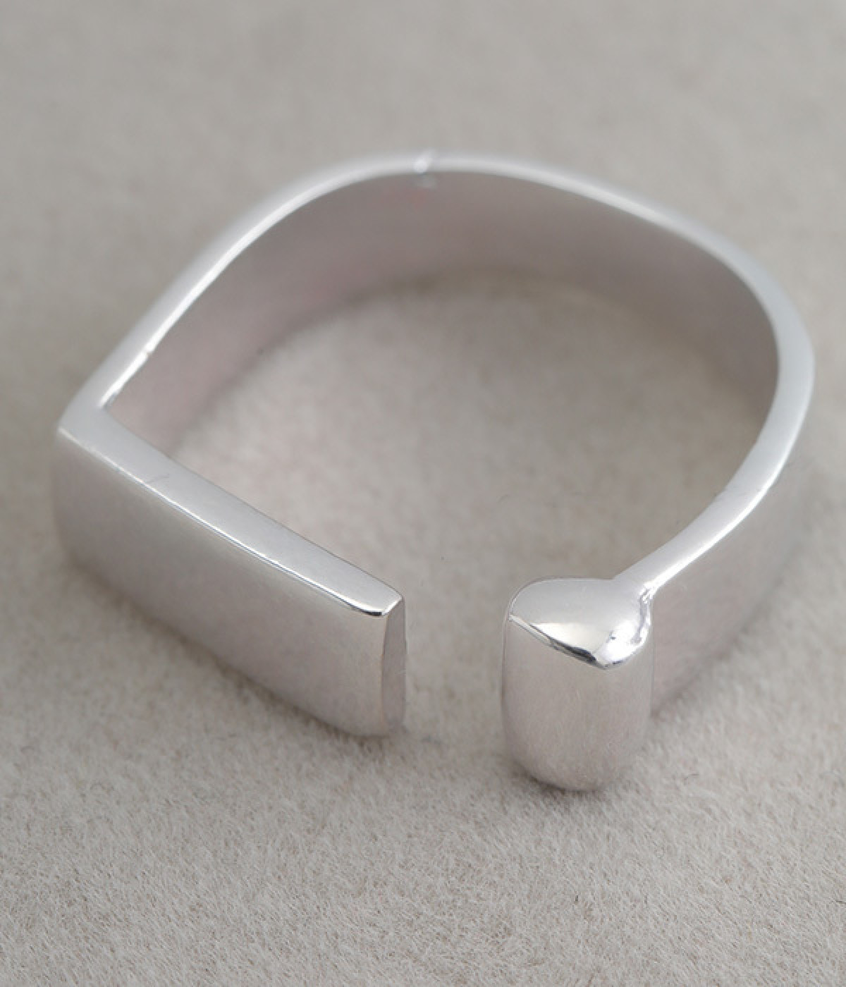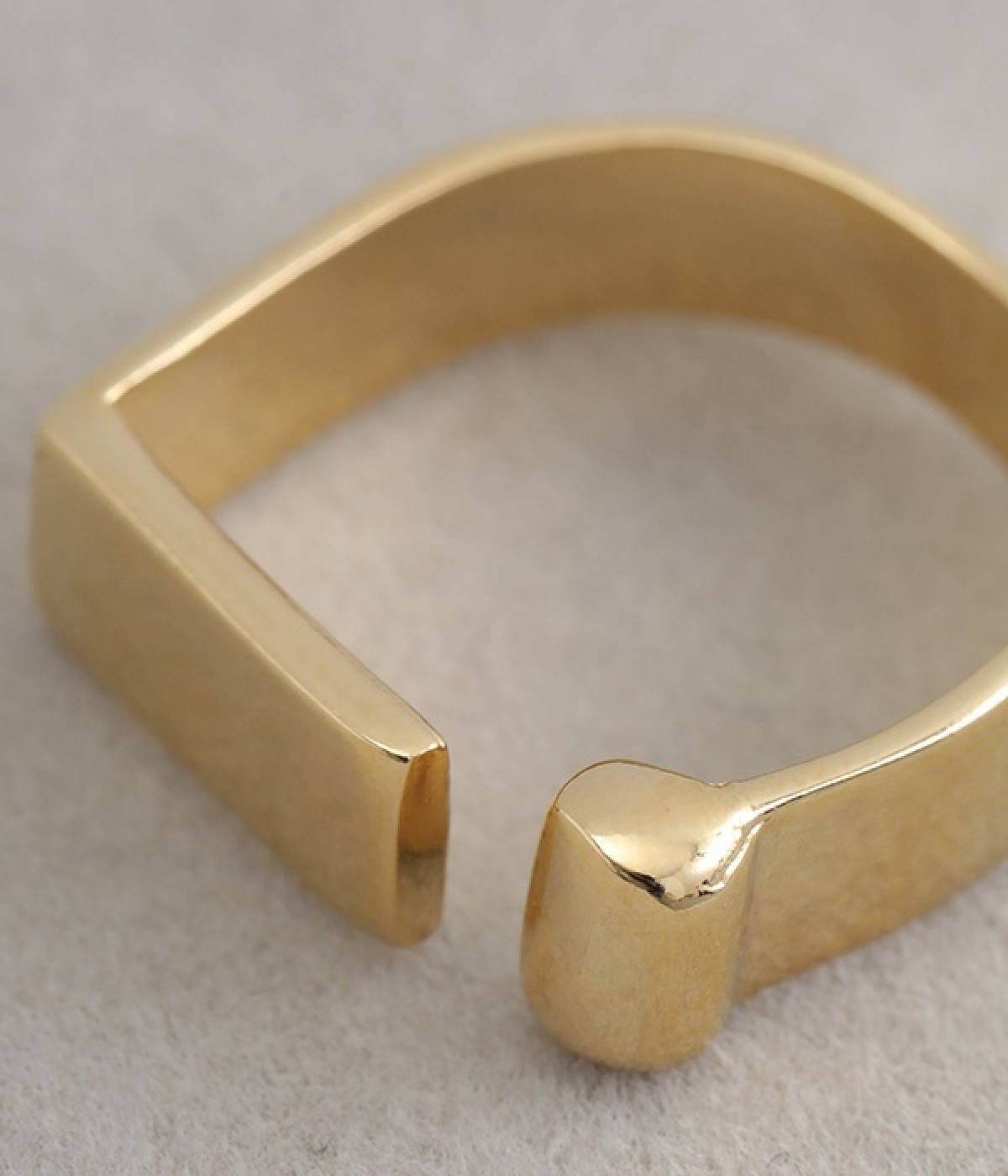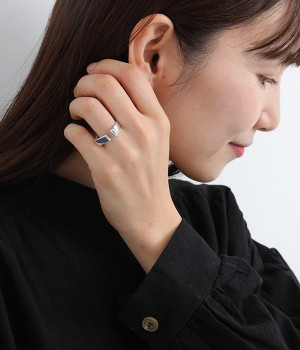 ほどよい太さで手元に存在感を宿すメタルリング。ビジューや石などの装飾はないシンプルなデザインなので、お手持ちのリングやブレスレットなどと合わせるアレンジも◎。フロントのストレートラインに少しだけ隙間を設けているので指の通りもスムーズです。きらりと光るメタルはきれいめからモード、デイリーなカジュアルコーデまで幅広い着こなしにマッチします。