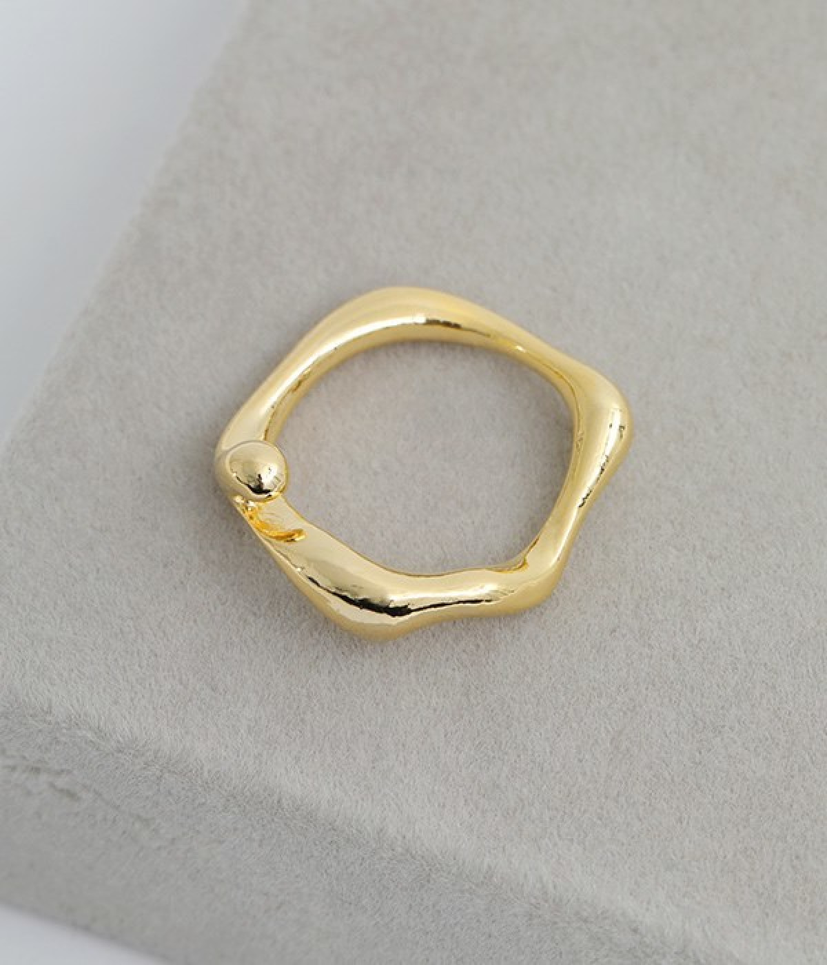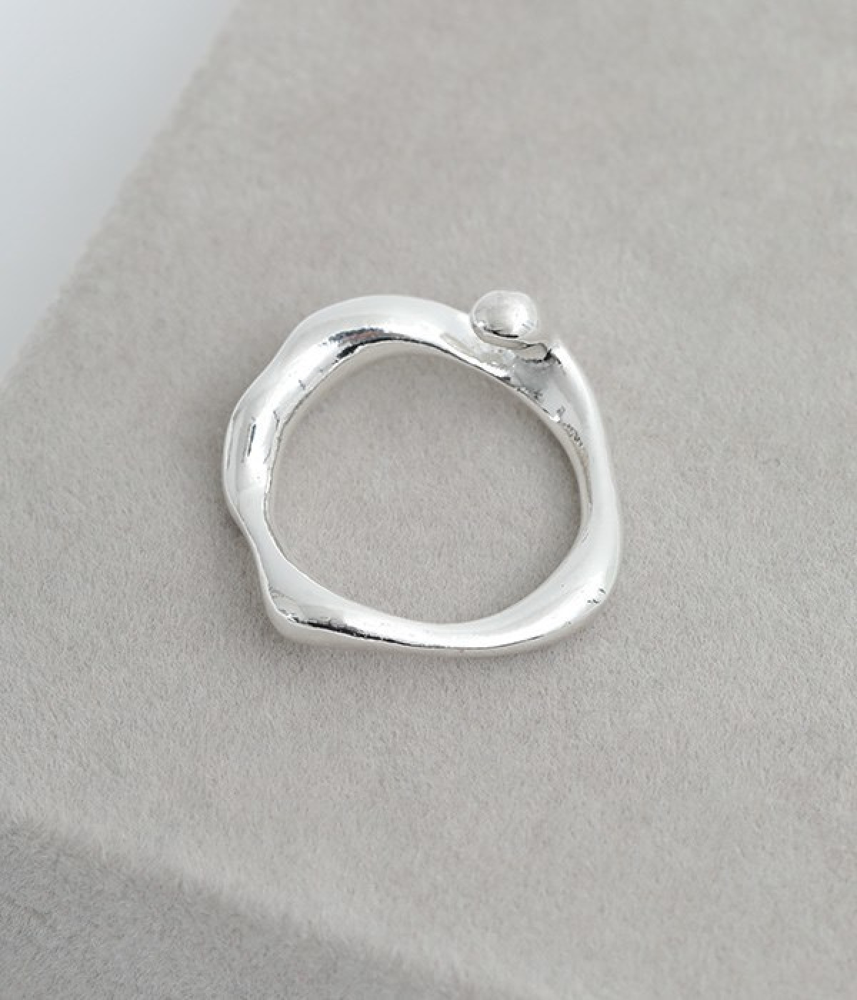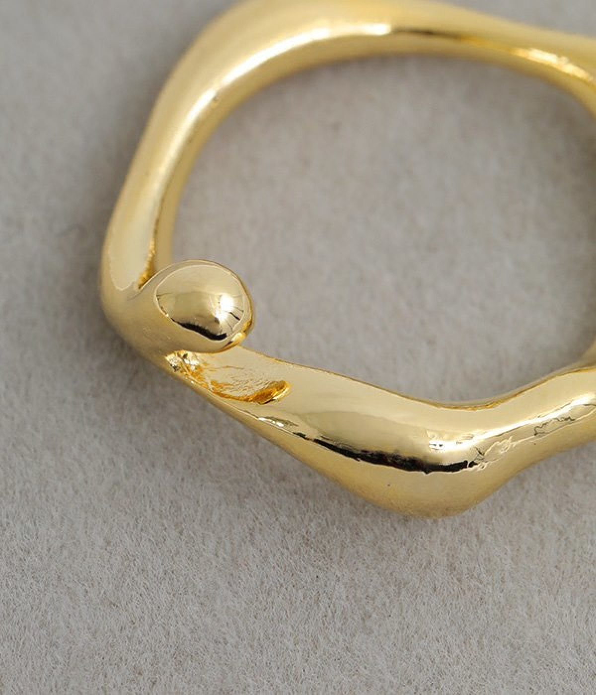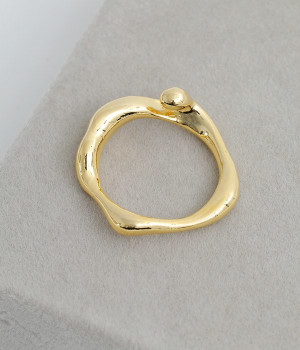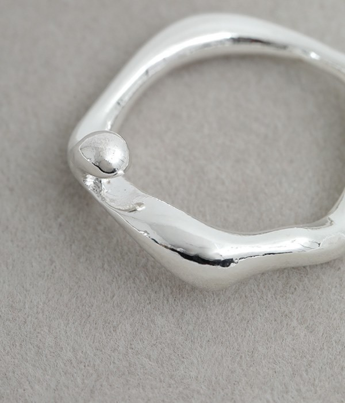 水しぶきのように躍動感のあるウェーブを描くシンプルなリングです。ほどよい大きさと主張しすぎないデザインで、さりげなく手元のアクセントに。ビジューや石などの装飾がないので、お手持ちのリングやブレスレットなどと合わせても素敵です。やわらかに光るメタルはきれいめからモード、カジュアルまで幅広いコーディネートに溶け込みます。