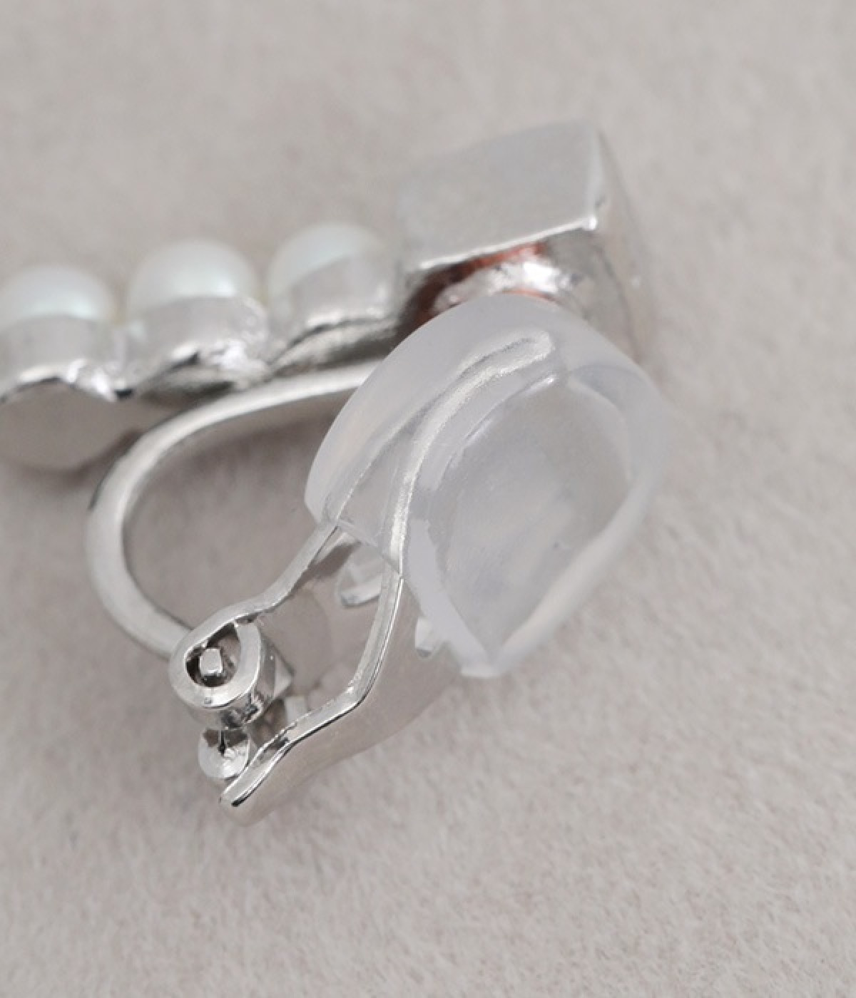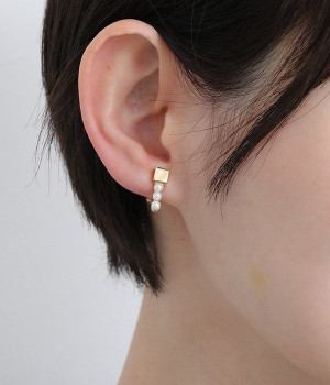 パールとメタルを組み合わせた、存在感のあるメタルイヤリングです。小ぶりなパールが上品に並び、耳元を華やかに盛り立てます。大きすぎないちょうどいいサイズ感で、フォーマルからデイリーまで幅広く使えるのが魅力。耳をさっとはめるだけの仕様で着脱も簡単に行えます。シリコンのキャッチがついているため、長時間の着用でも耳たぶへの負担が少ないのも◎。