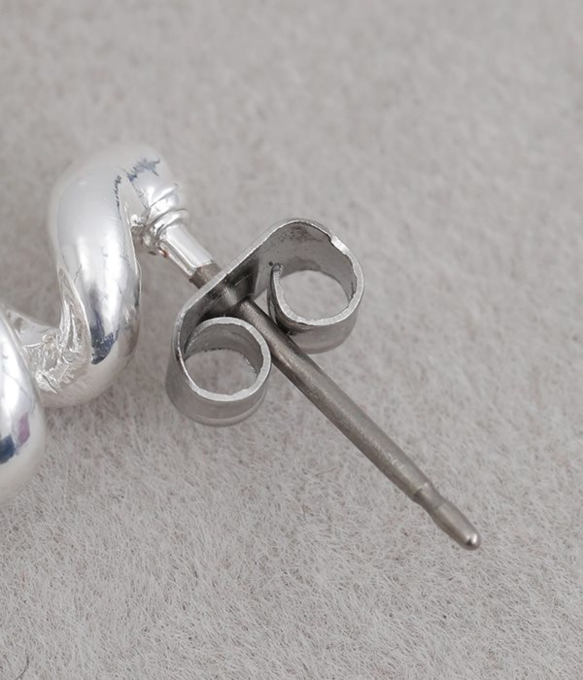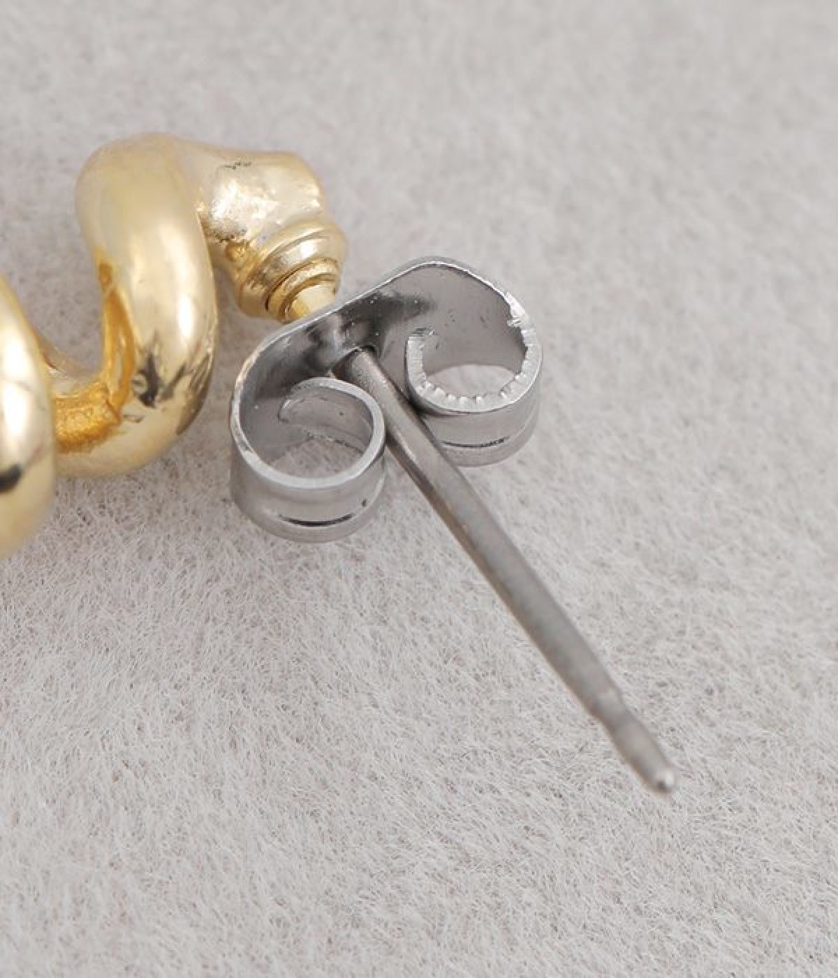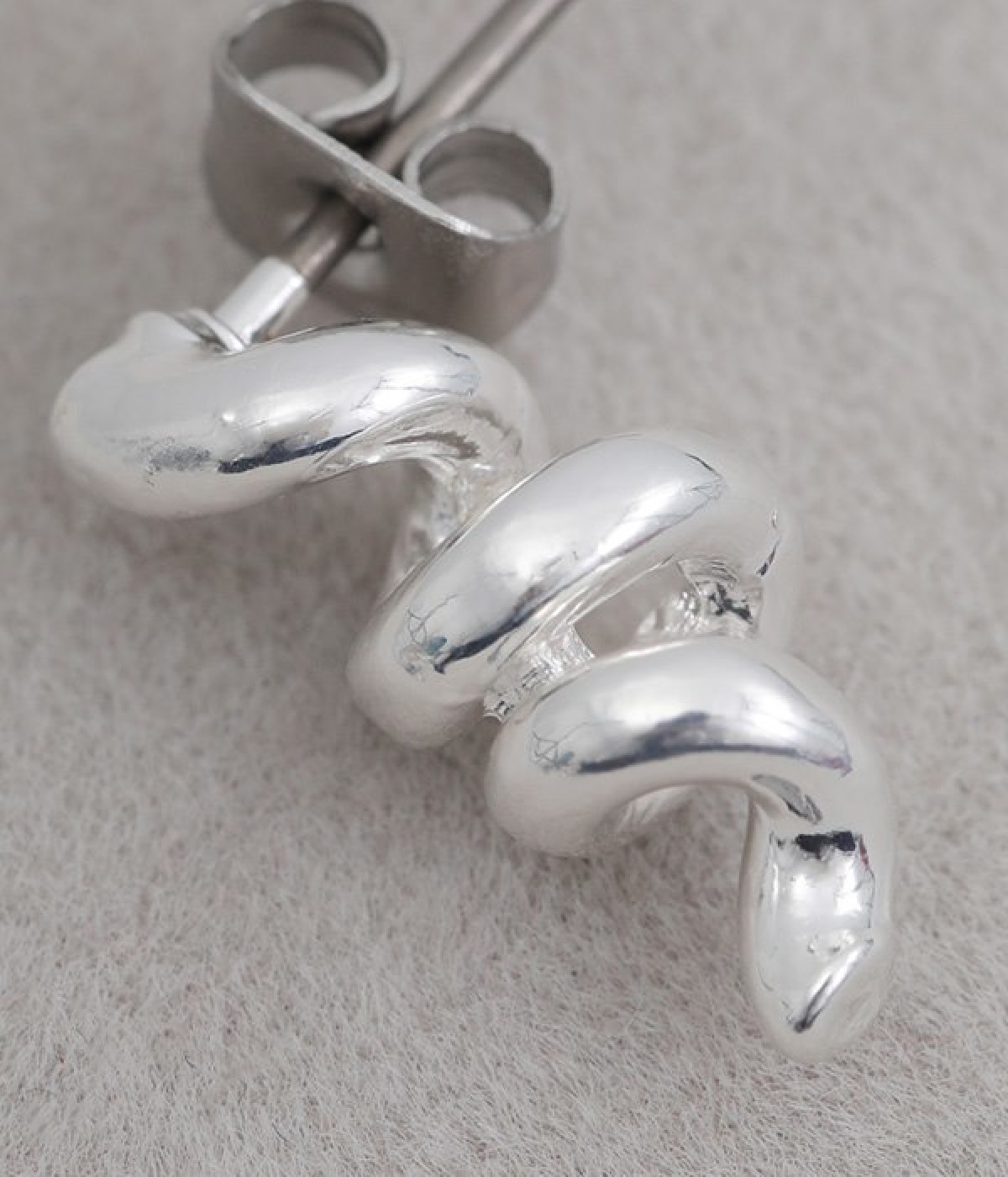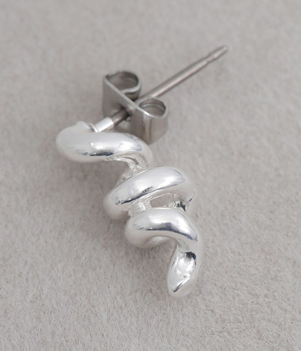 くるくるとねじれたフォルムがかわいらしいピアスです。小ぶりなサイズ感で、耳元でさりげなく存在感を発揮します。ビジューやパールなどのパーツがないシンプルさが魅力で、カジュアルからきれいめまで幅広い着こなしに馴染みます。ポスト部分はチタン、キャッチはニッケルフリーを採用した、毎日身につけたくなるアクセサリーです。