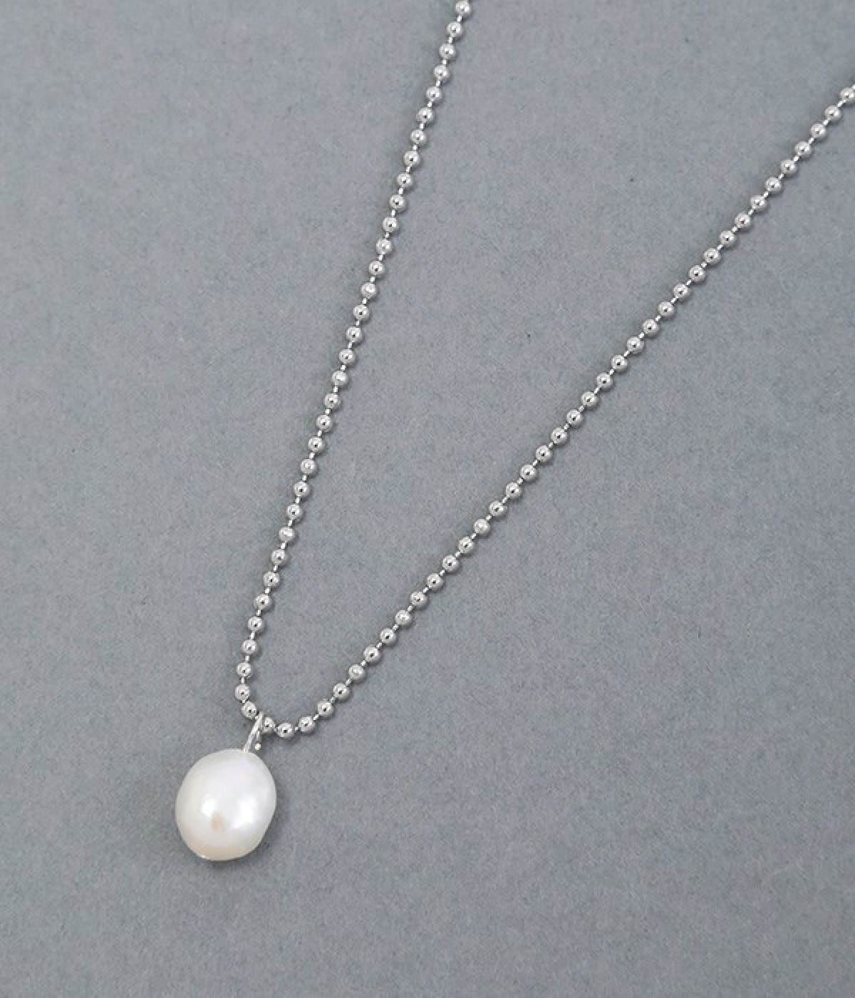 淡水パールとシンプルなチェーンを組み合わせたネックレスです。ほのかな揺らぎのある、淡水パールのフォルムが魅力的。ほかのネックレスとの重ね着けがしやすいミドルサイズです。チェーンの長さはアジャスター付きなので、お好みで調節が可能。Tシャツスタイルをきれいめに仕上げたり、フォーマルスタイルのポイントにしたり、デイリーから華やかなお出かけまで、合わせるシーンを選びません。