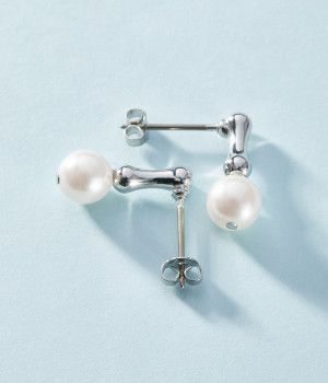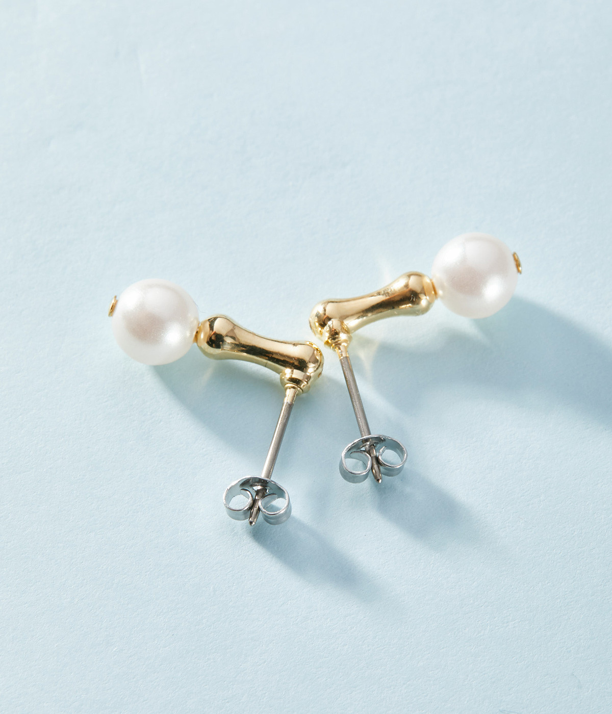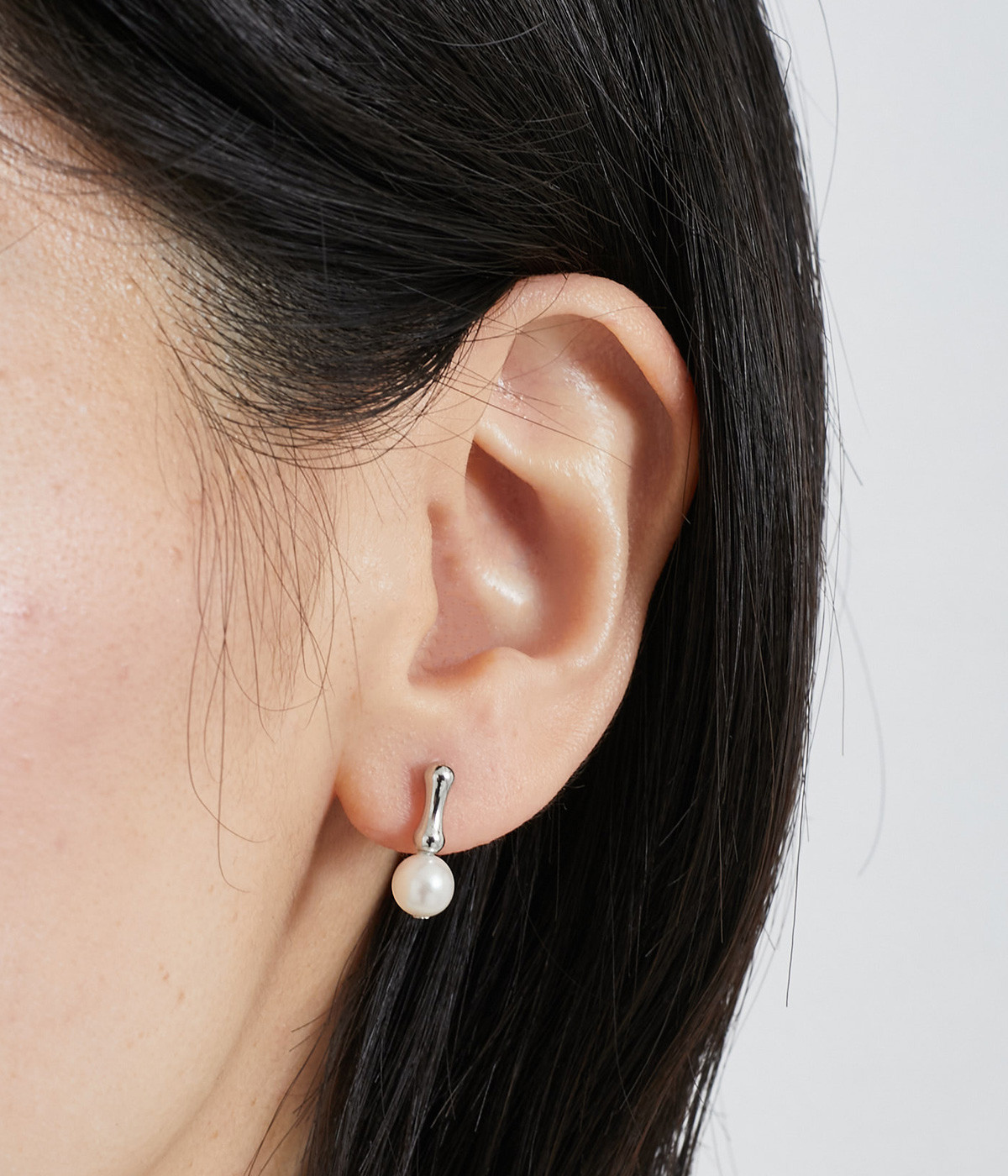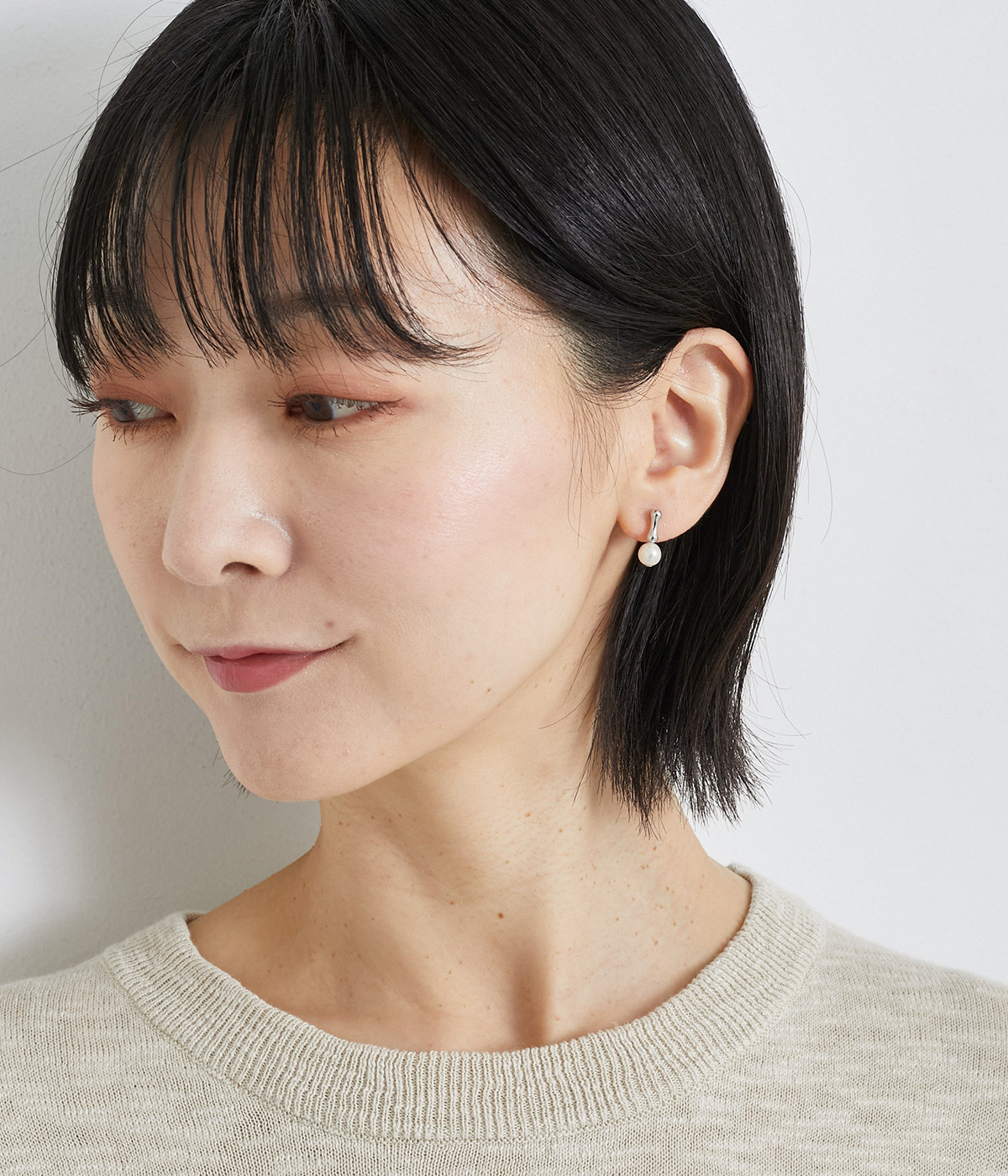 ニュアンス感のあるメタルモチーフと、品のよいパールを組み合わせた小ぶりのピアス。普段使いにはもちろん、フォーマルなシーンでも身につけられるシンプルさが魅力です。