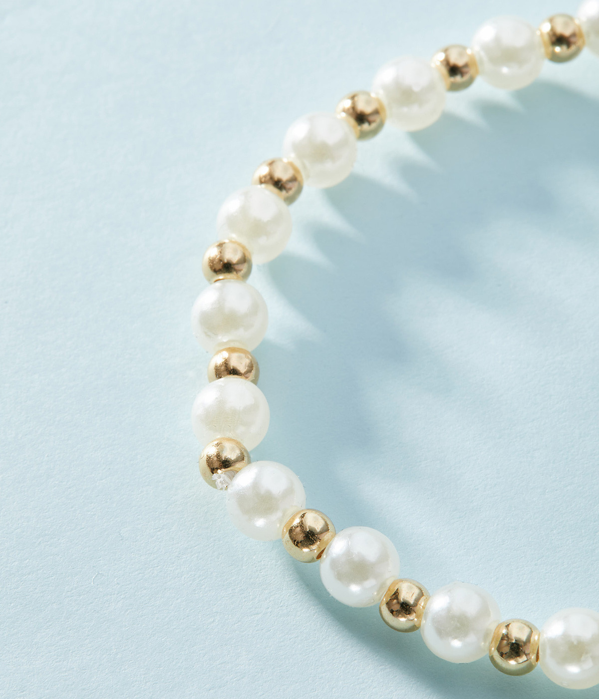 艶やかなメタリックカラー×小ぶりのパールを使用。負担になりにくい軽いつけ心地と、簡単に着脱できるゴム仕様もポイントに。