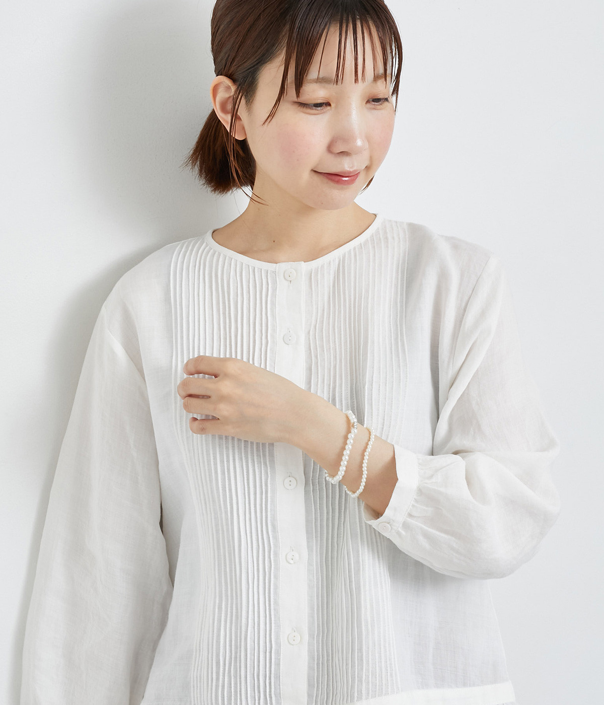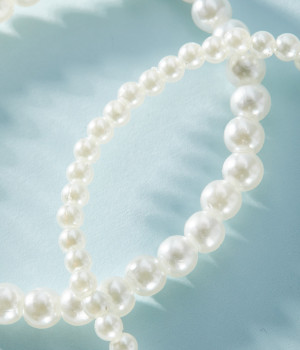 手元を華やかに飾るフェイクパールを使用。伸縮性のあるゴム仕様なので、簡単に着脱が可能です。