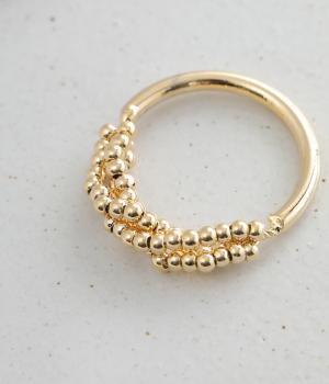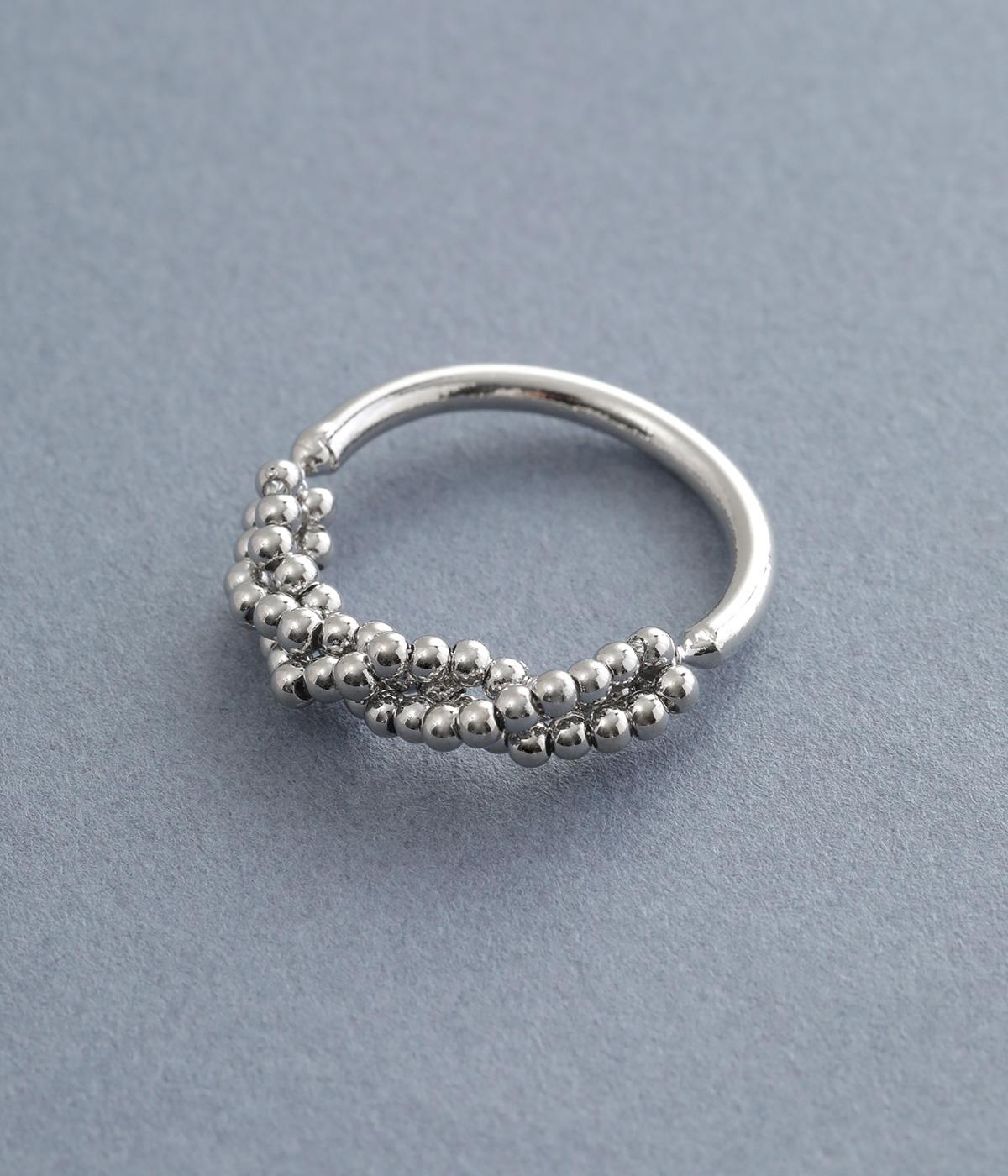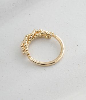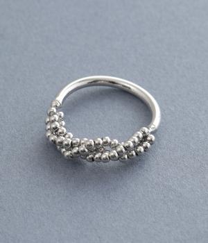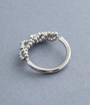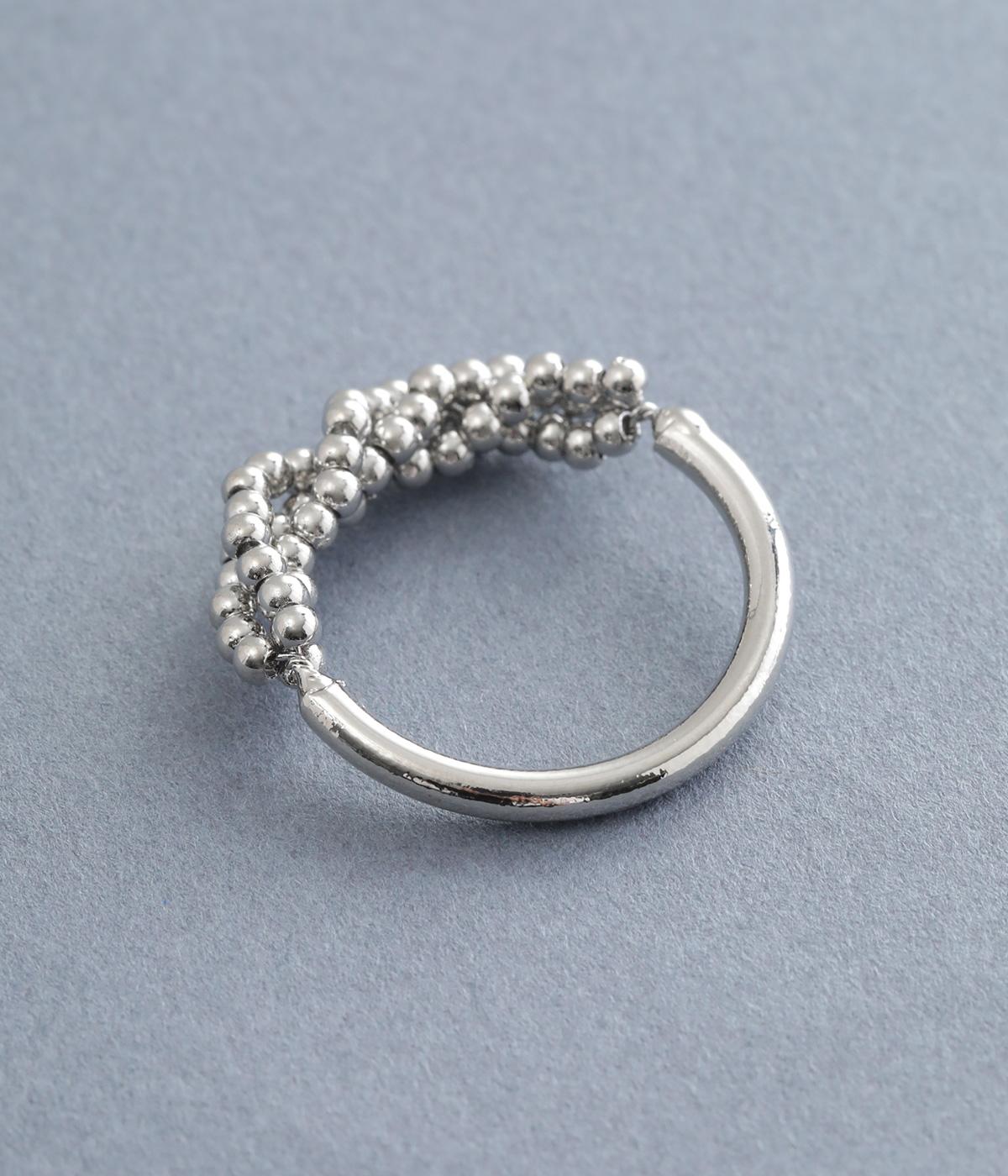 とても小さなメタルボールをふんだんにあしらった、繊細な輝きを放つリングです。ボリュームをおさえ上品で大人っぽく仕上げているので、普段使いにもフォーマルシーンにもぴったり。シンプルなリングとの重ねづけもサマになります。