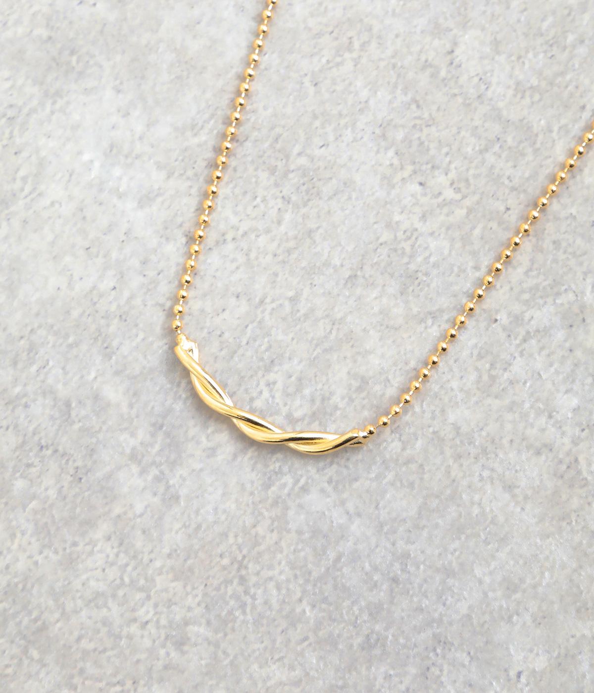 流れるような曲線のモチーフが魅力的なネックレスです。シンプルかつスタイリッシュなデザインは、オンオフで活躍します。5cmのアジャスターつきなので、お好みの長さで使うことができます。