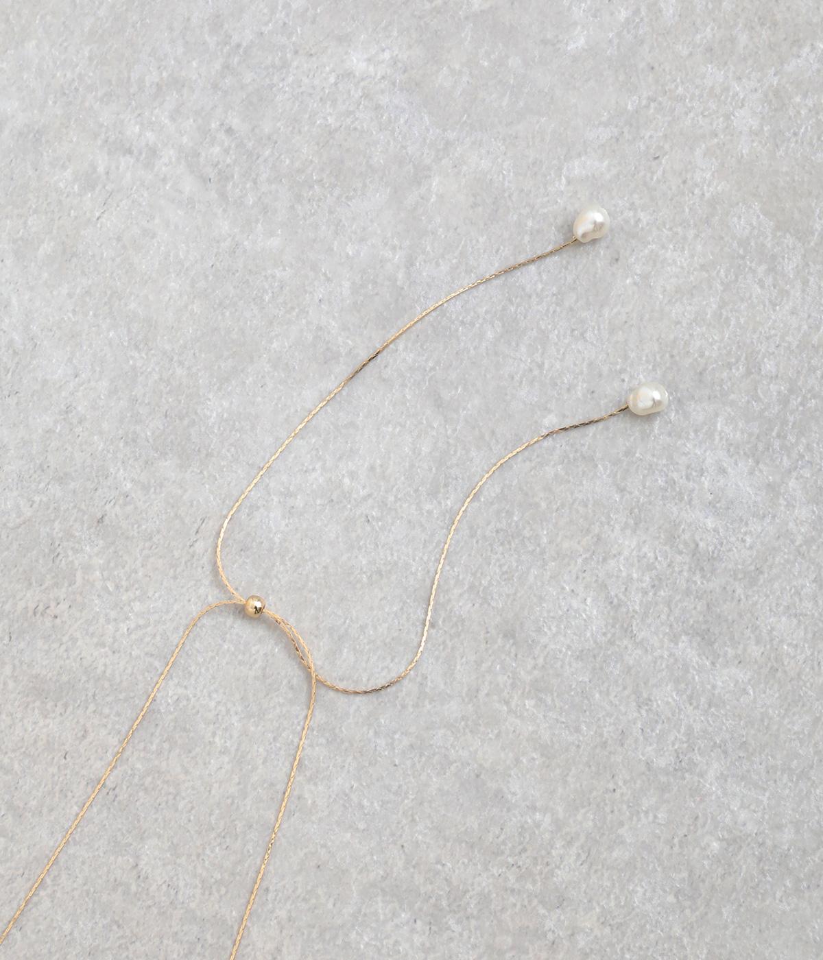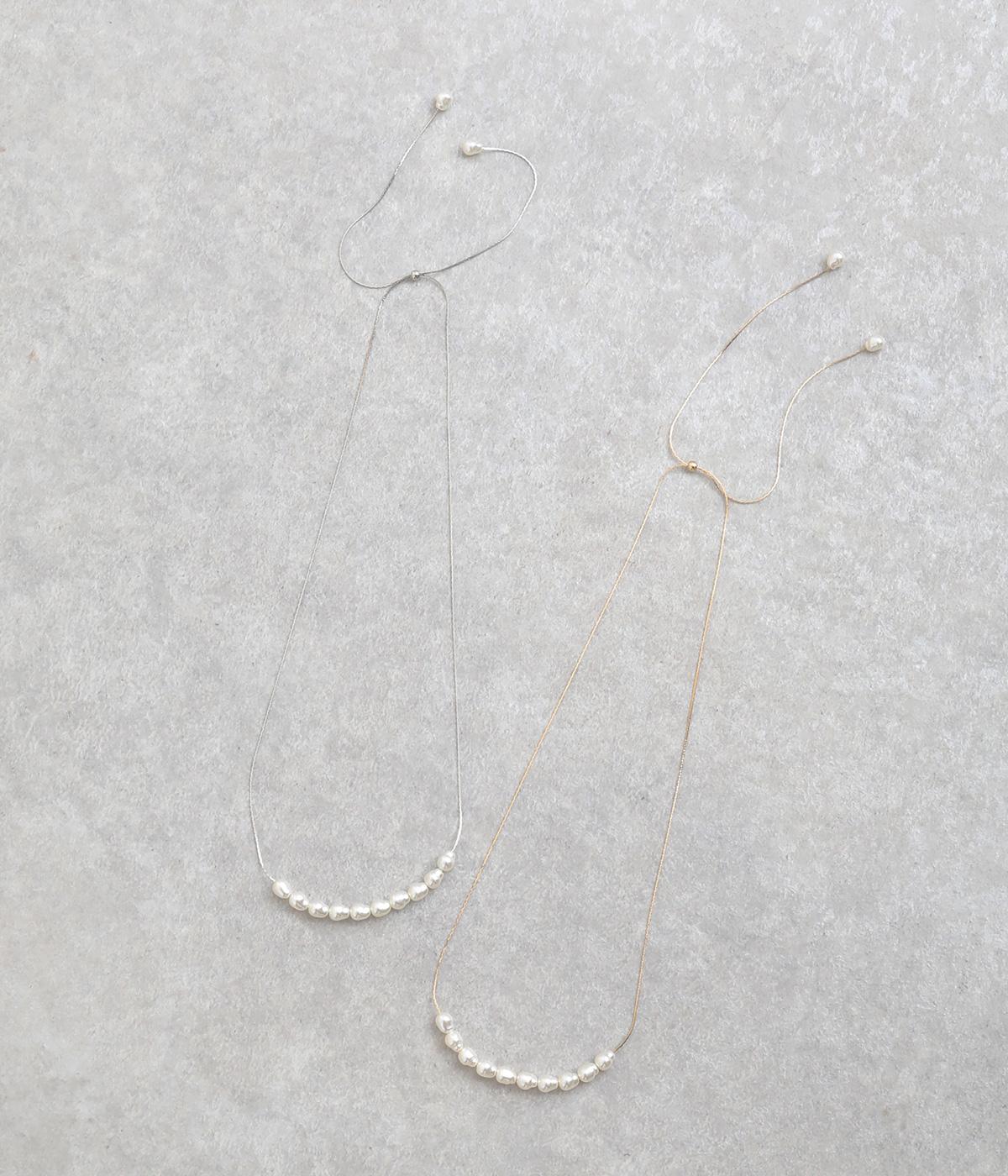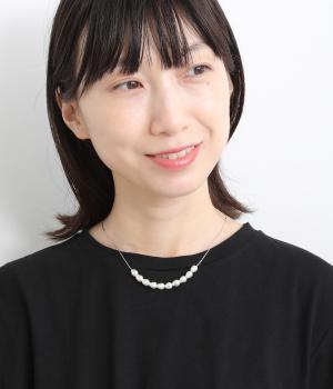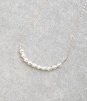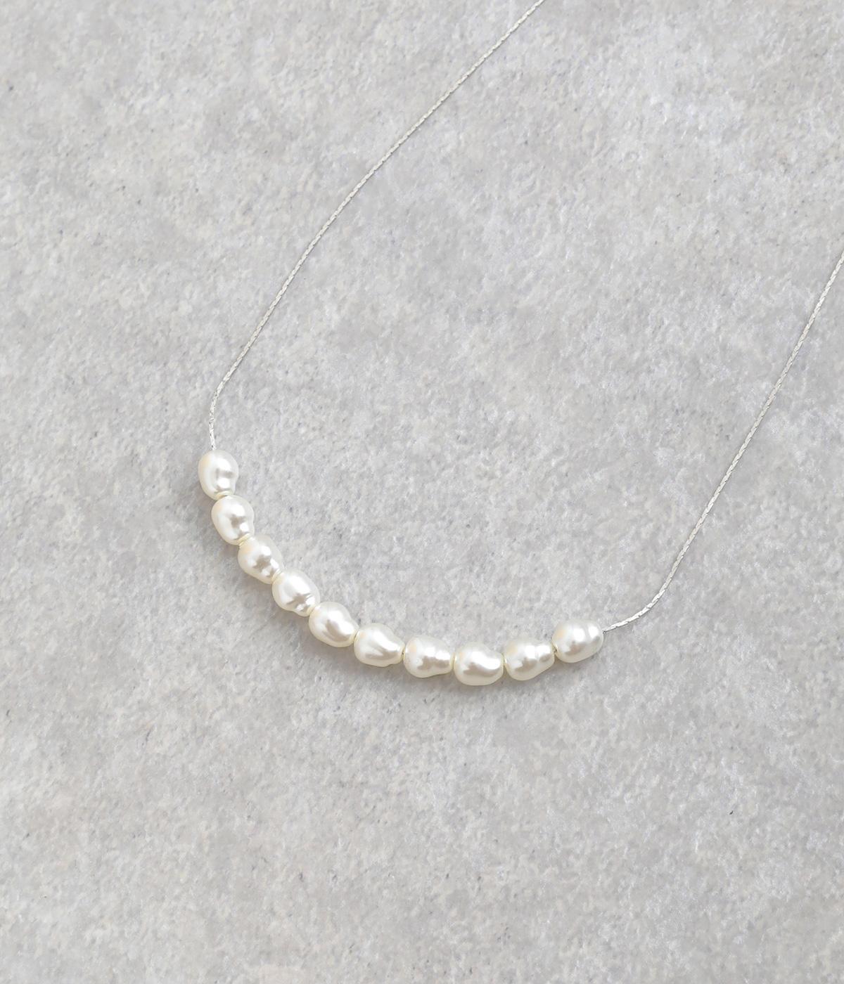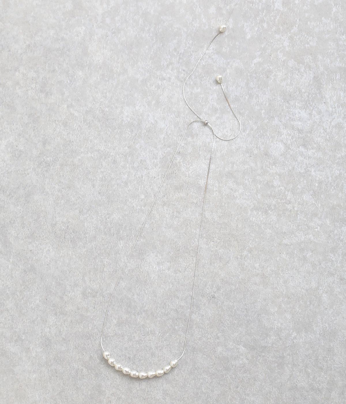 まるで天然石のような揺らぎのあるパールが胸元を華やかに飾るネックレスです。普段使いからよそいきのおでかけシーンまで幅広く対応。お好みの長さやシルエットで使える、スライド仕様です。