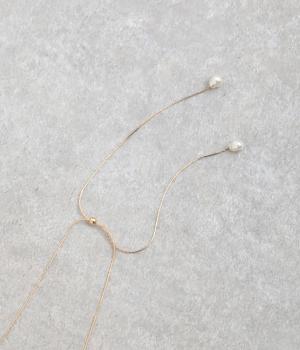 繊細な真鍮のチェーンを使用しています。上品な輝きを放つ、軽量のプラスチックパールのモチーフをあしらっています。