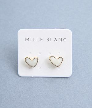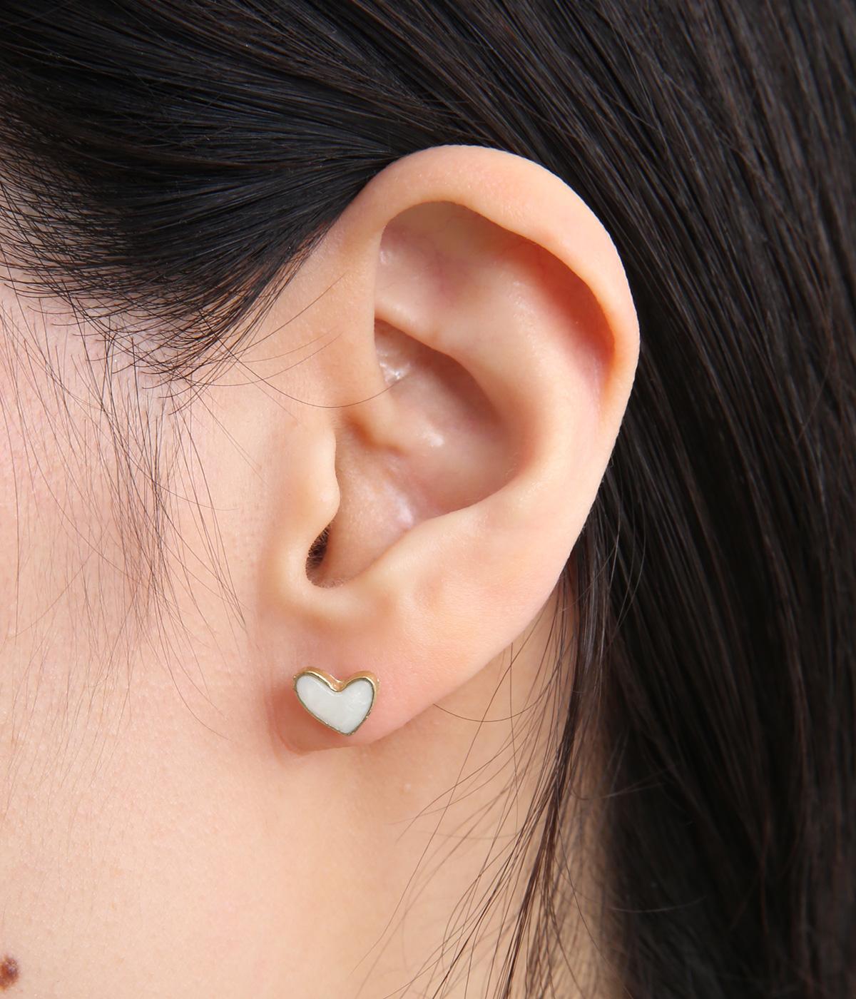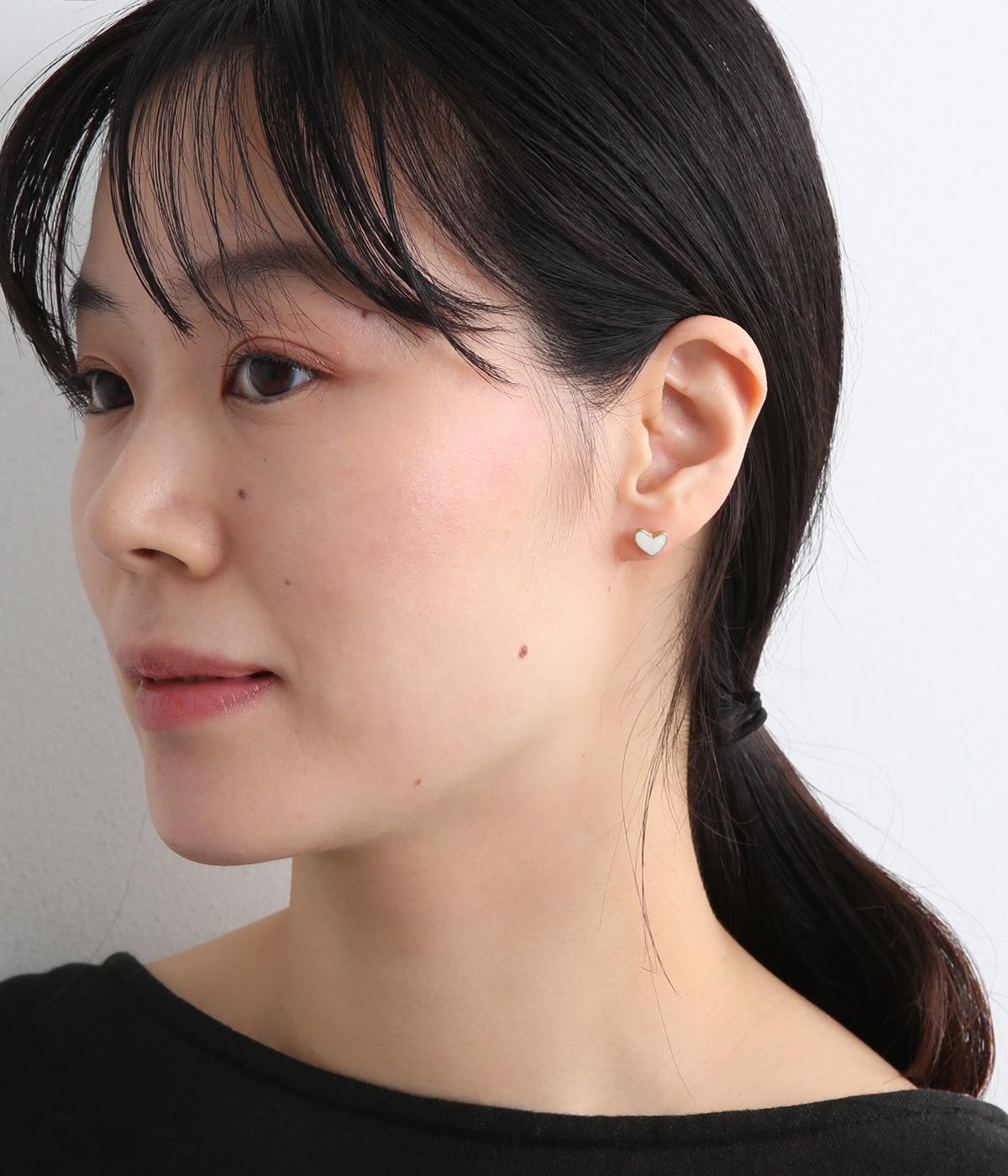 ゴールドで縁取ったハート形が大人かわいいデザイン。すこし歪に描くことでナチュラル感も生まれ、甘すぎることなく使い勝手よく仕上がっています。他のアクセサリーともあわせやすい小粒なサイズ感も◎。