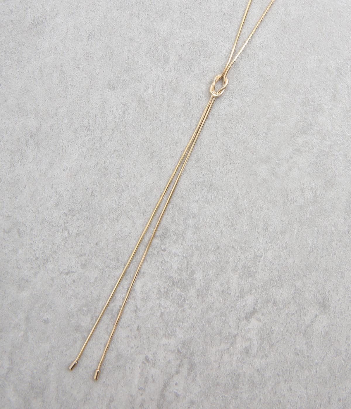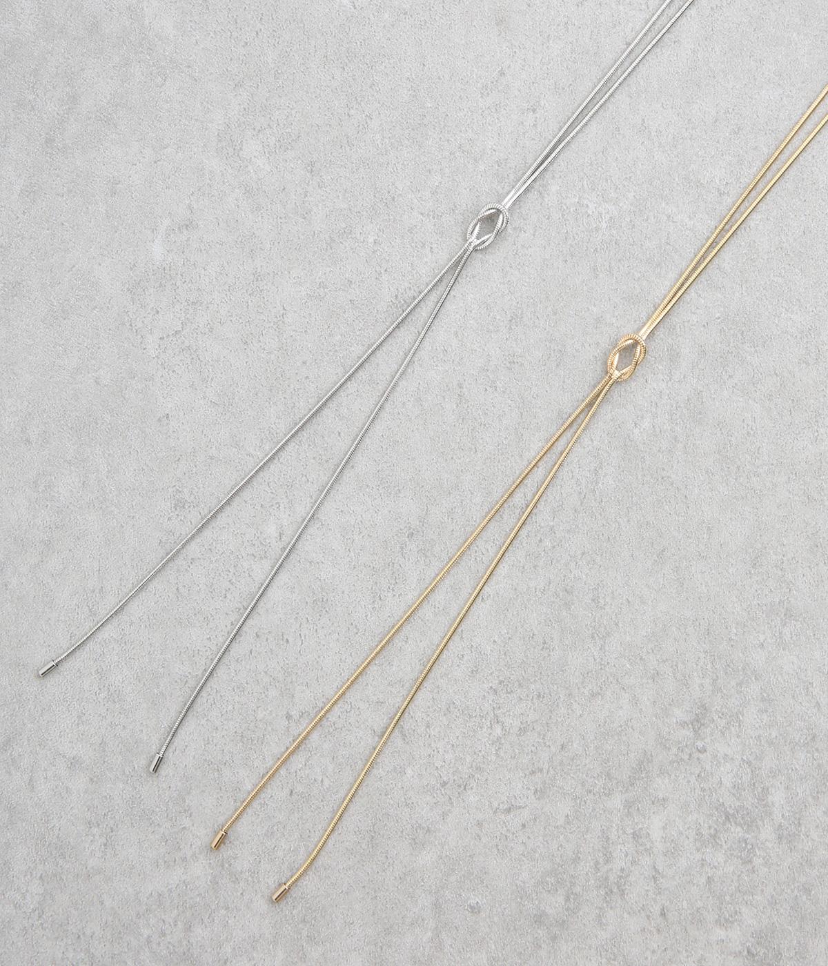 ノットデザインのロングネックレスです。5cmのアジャスター付きでお好みの長さに調整していただけます。長く揺れるデザインが華やかさを演出してくれます。