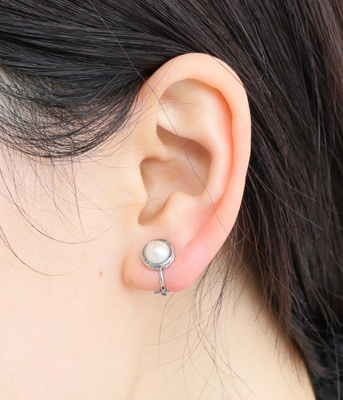 一つあると重宝する、シンプルなデザインのパールイヤリングです。シーズンやコーディネートを問わずに、定番的に使えるのが魅力。顔まわりをそっと華やかに演出します。