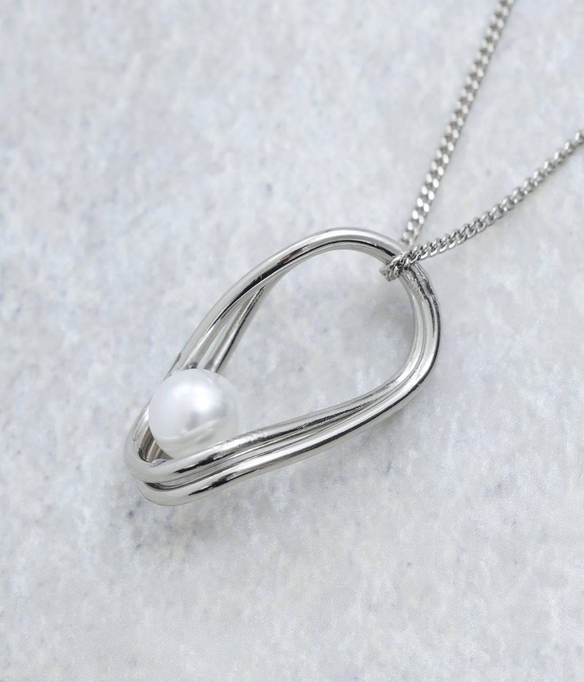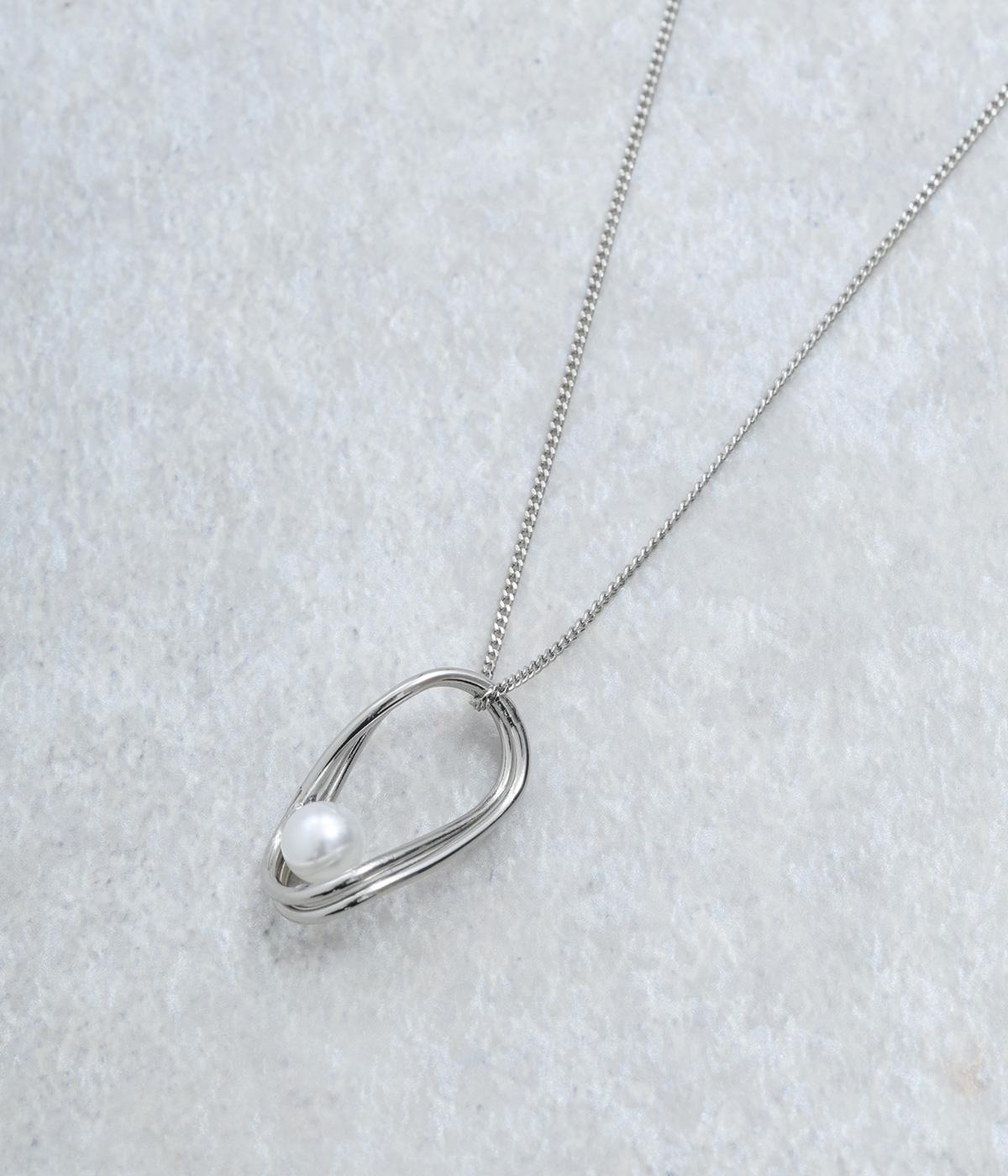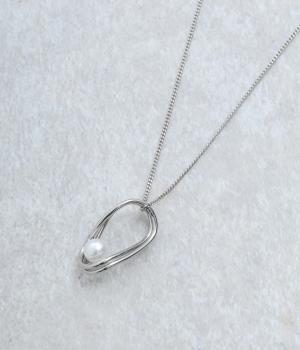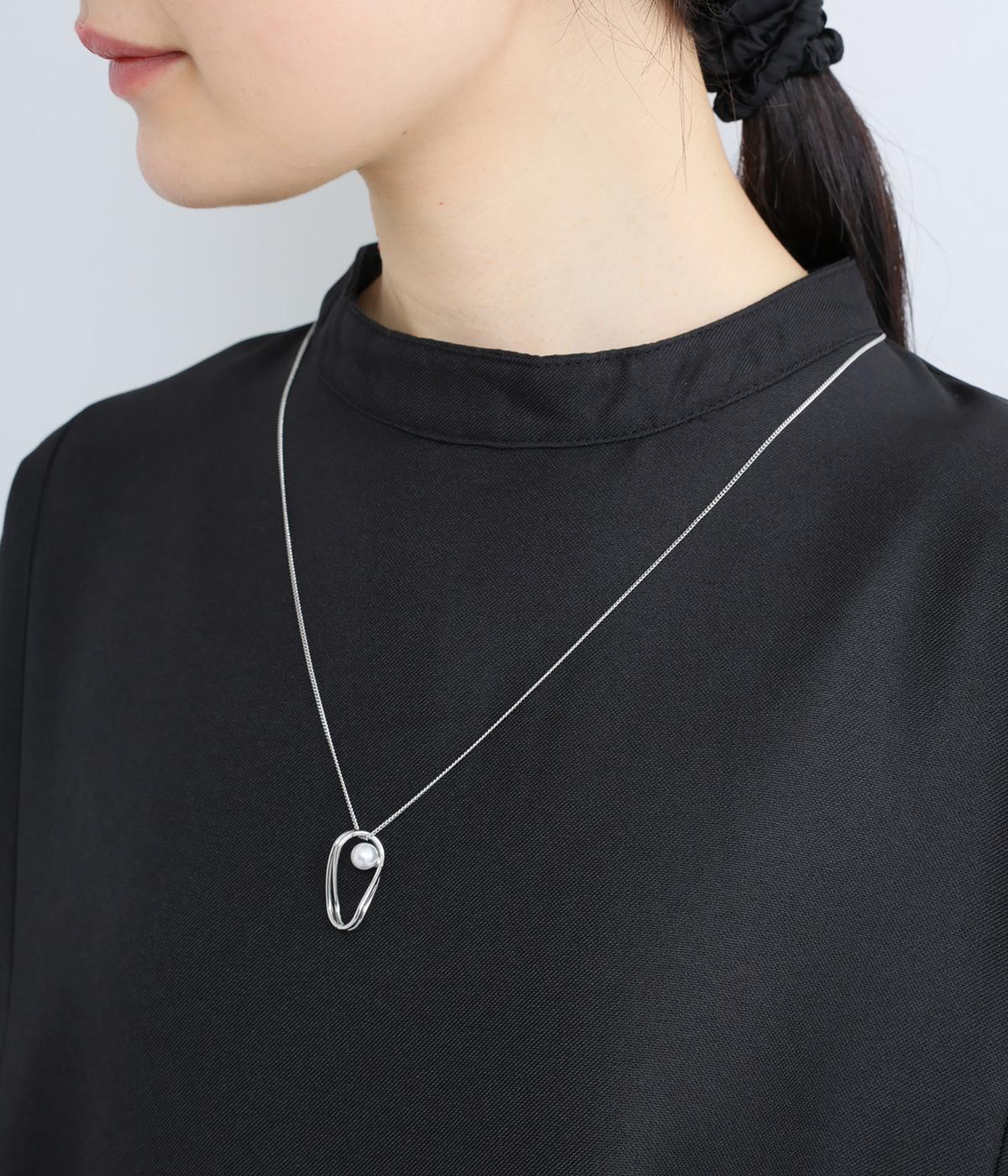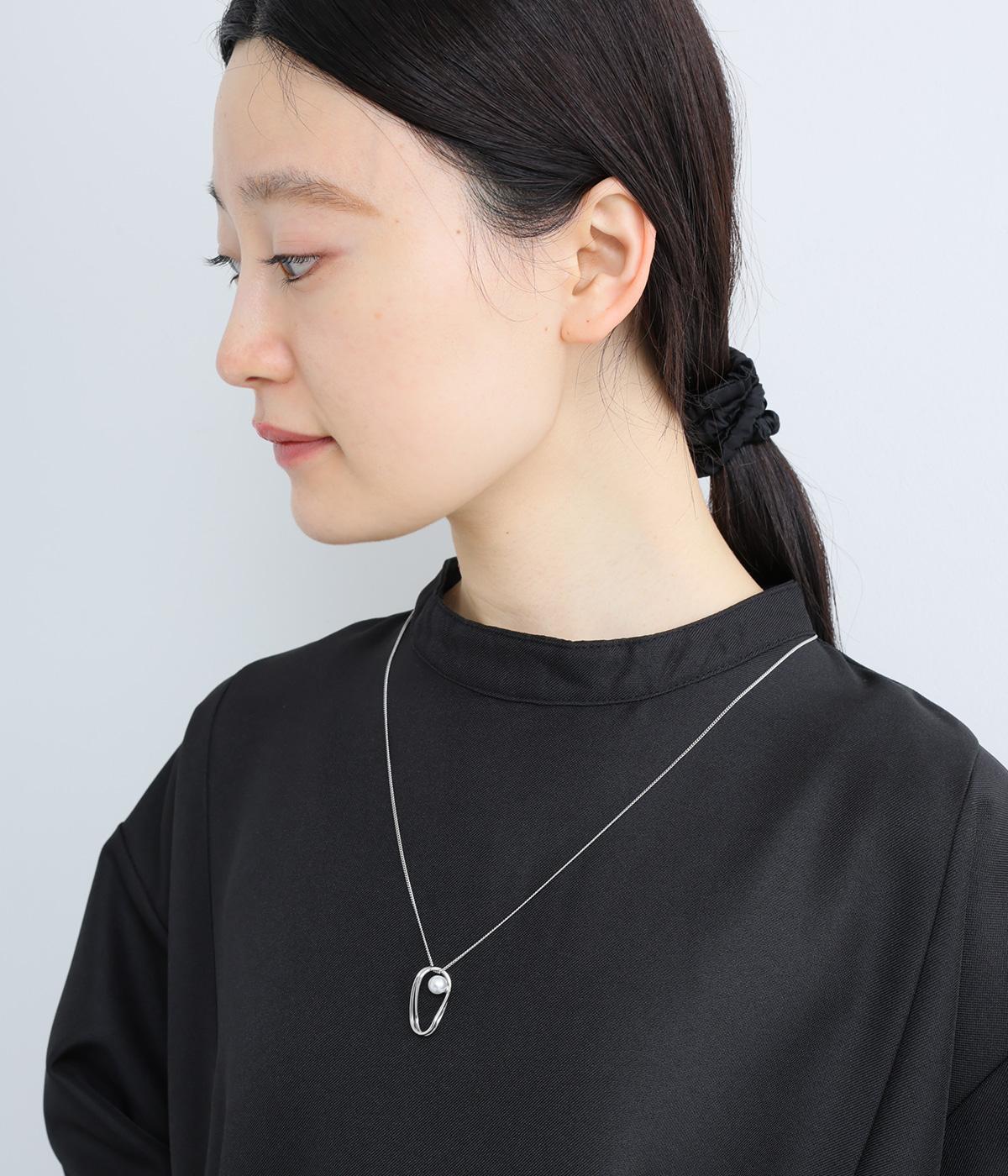 ゆらぎのあるオーバルモチーフと、パールを組み合わせたチェーンネックレスです。シンプルながらも洗練された印象のトップで、普段使いからフォーマルなシーンまで幅広く対応できます。