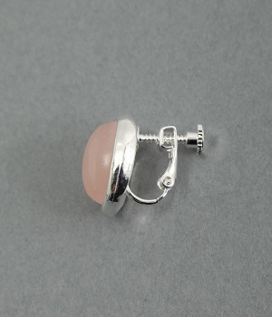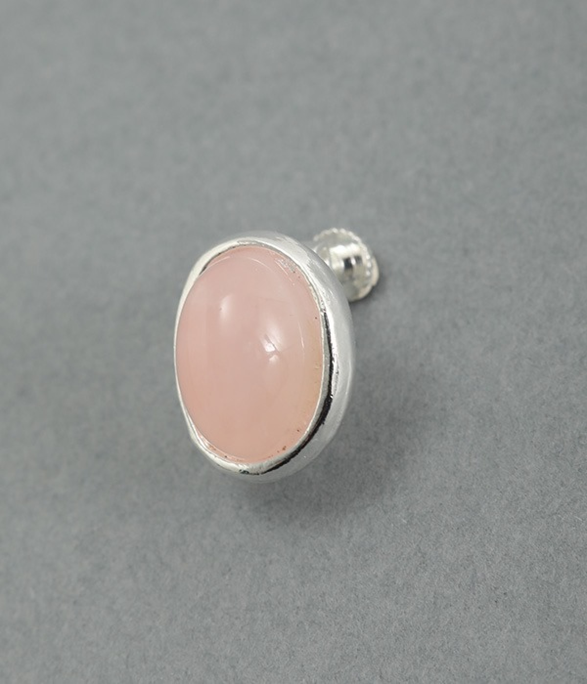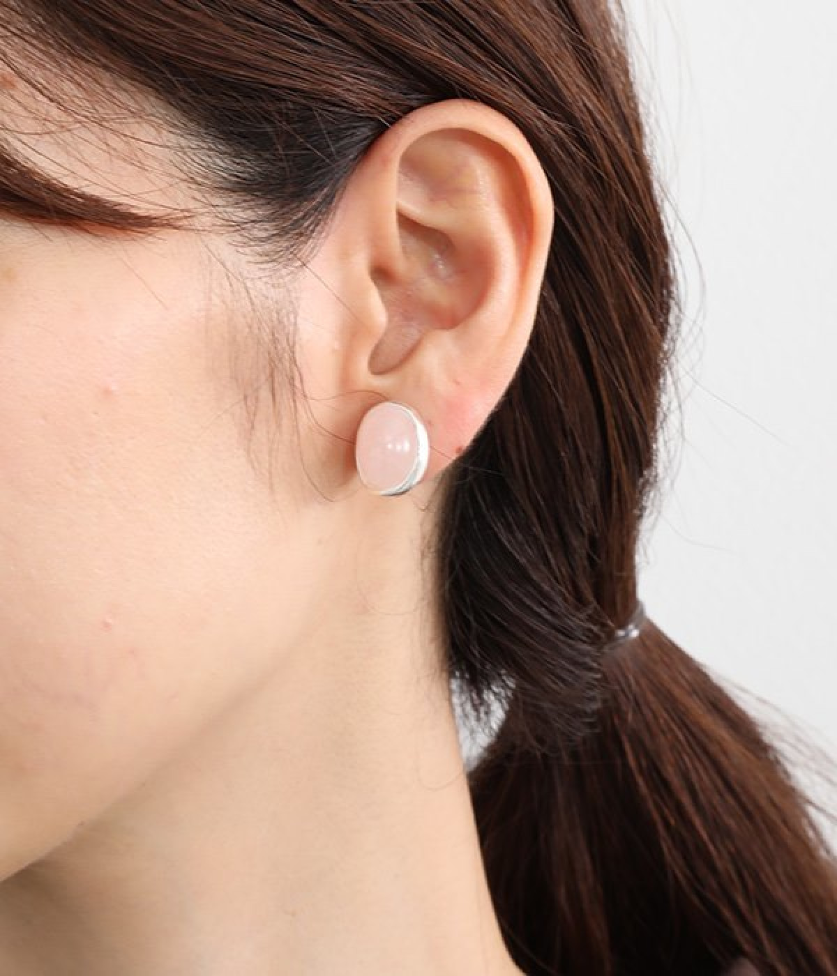 オーバル型のシルバーカラーの台座に、透明感のある天然石を使用したイヤリングです。光を受けてきらりと輝く金属と、柔らかなツヤを放つ天然石が顔まわりを華やかに飾ります。ニッケルフリーメッキでコーティングしているので、金属アレルギーを引き起こしにくいのも嬉しいポイント。ねじ式の留め具はお好みに微調節できます。