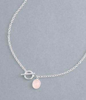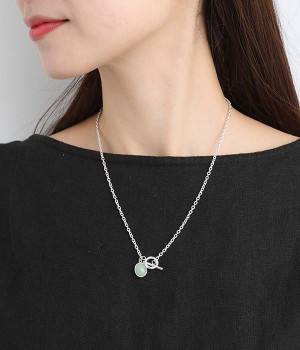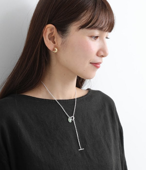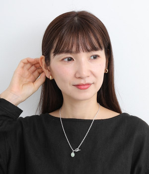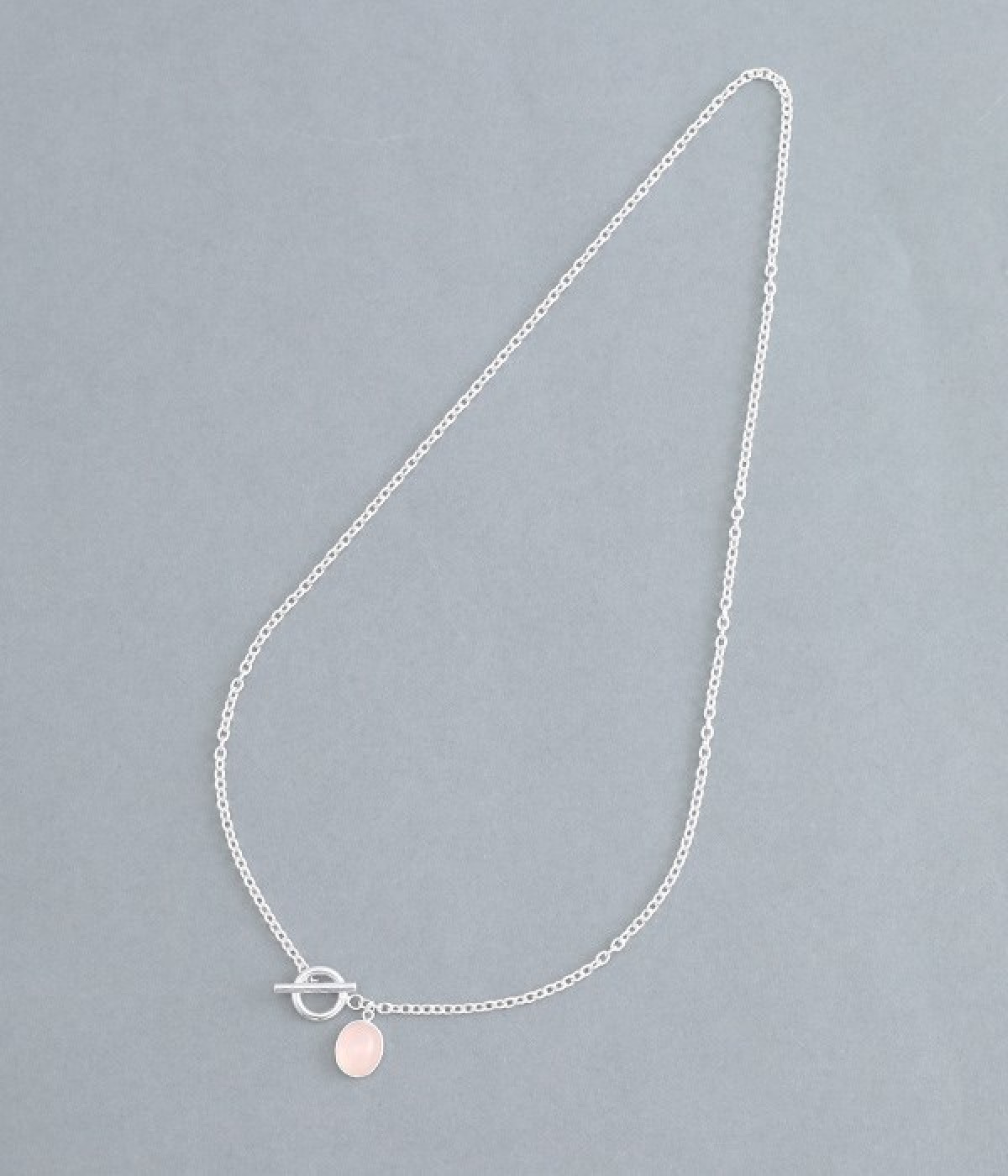 カボションの天然石がポイントになったチェーンネックレス。棒(留め木)を丸い輪に入れて留めるマンテルタイプで着脱は簡単です。留め木を長めに通したり、マンテルを後ろにまわしてシンプルなチェーンネックレスにしたりとアレンジも楽しめます。きらりと光るチェーンと天然石の組み合わせは、ナチュラルからきれいめ、カジュアルまで幅広いコーディネートに合わせられます。
