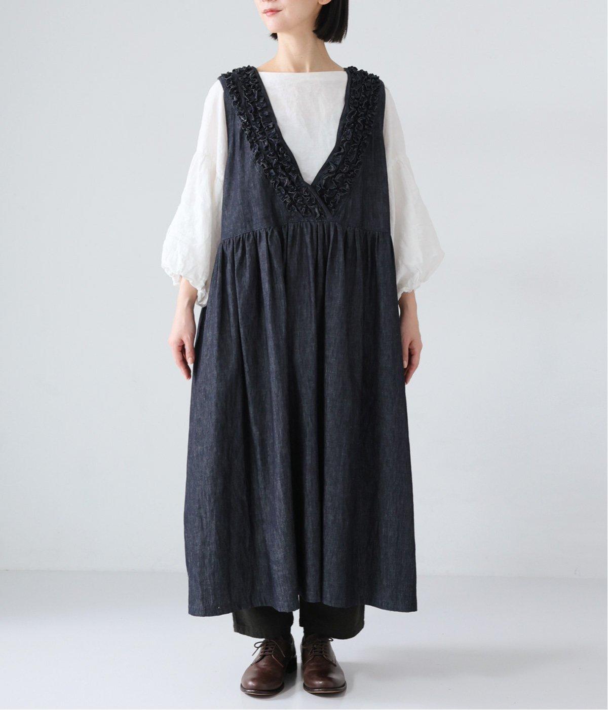 前後にあしらったフリルが、ubasokuらしさを添えるノースリーブワンピース。カラーは<