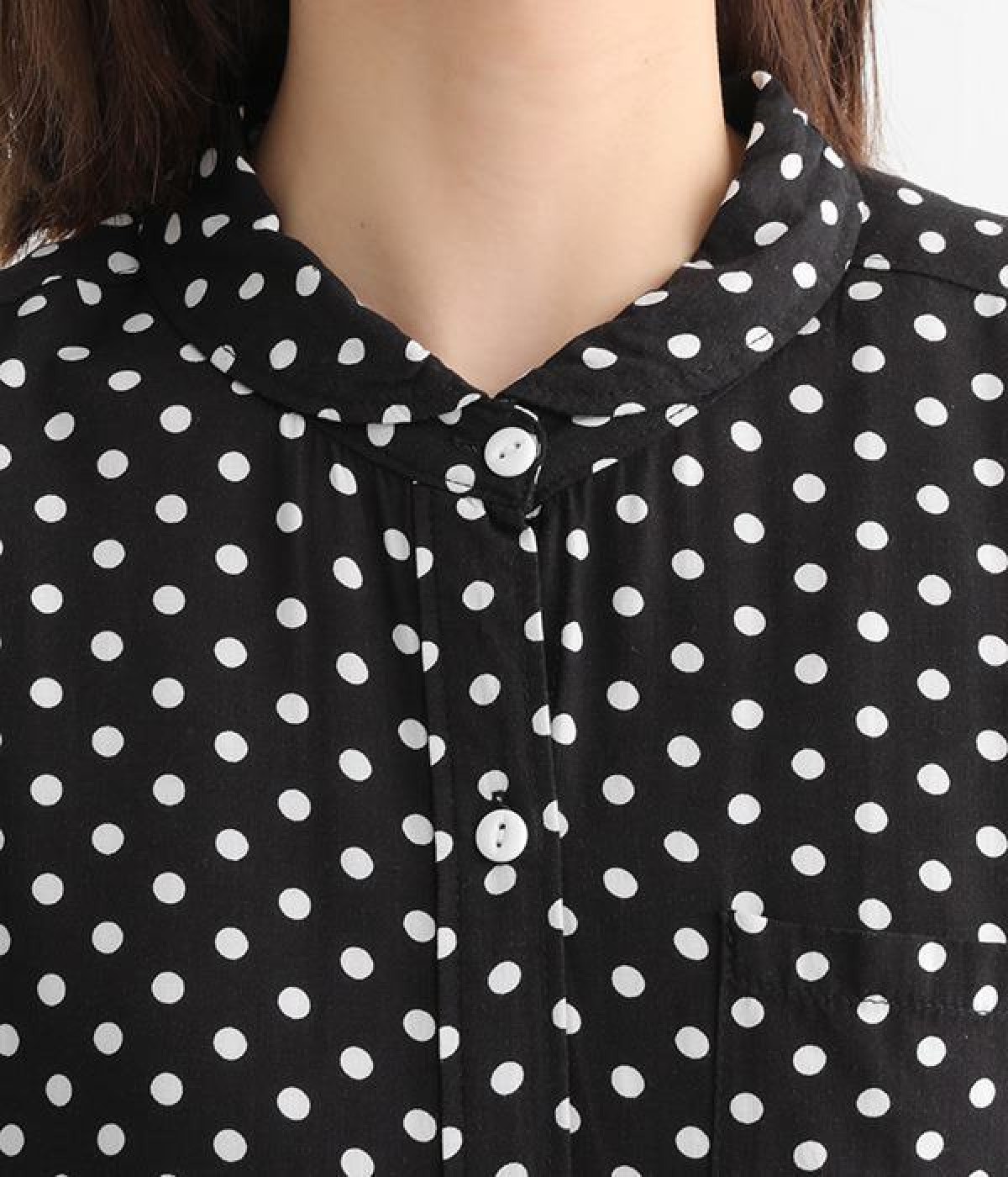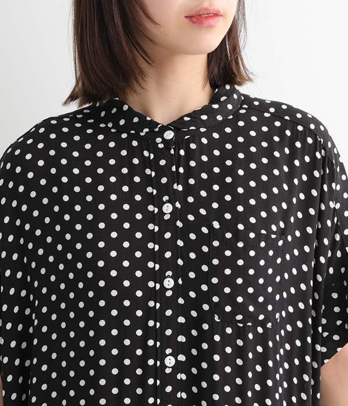 左胸にあしらわれたポケットや、ウエストの切替まであしらわれたボタンが、程よいアクセントを添えます。広めの袖が心地よく風を通し、着心地も涼やかに。