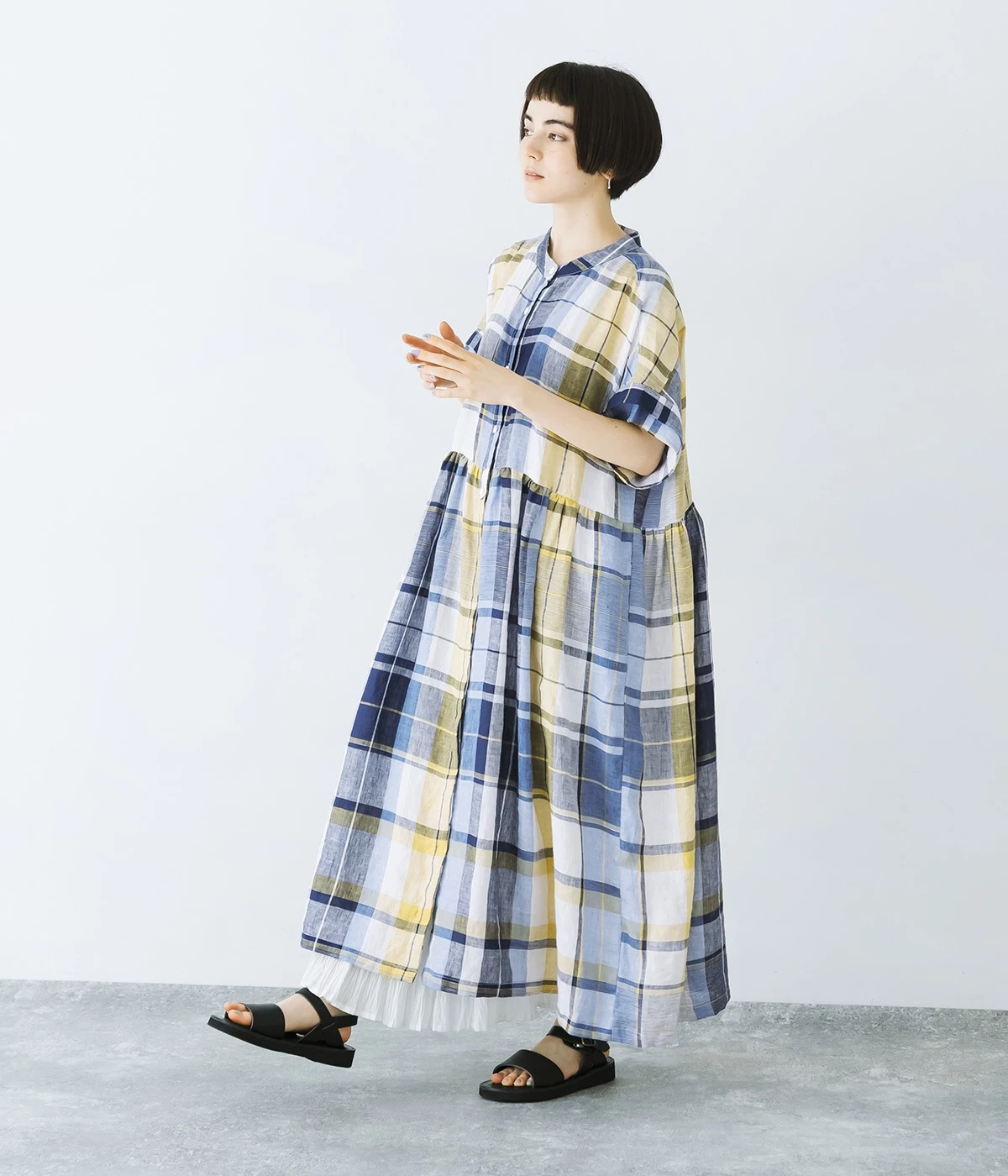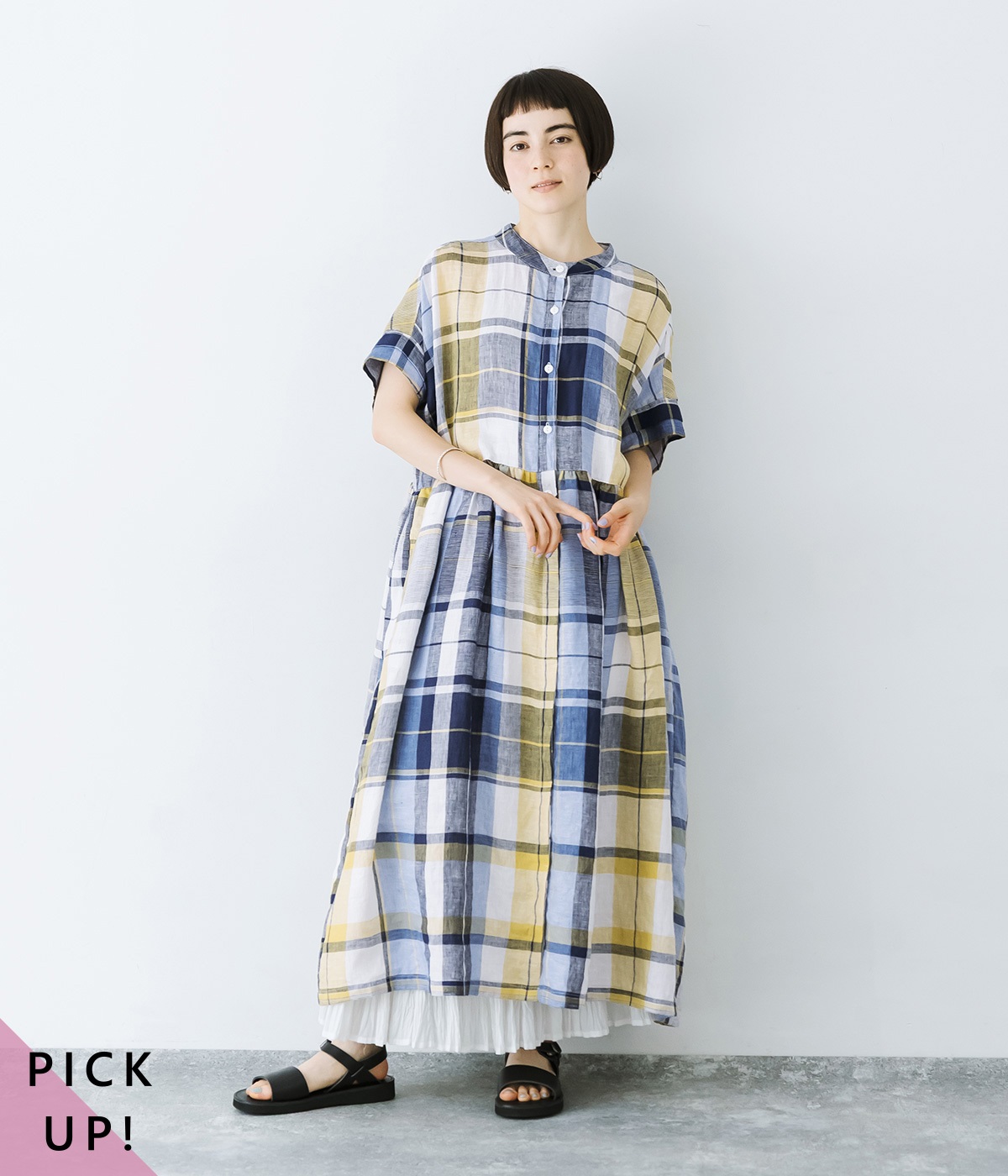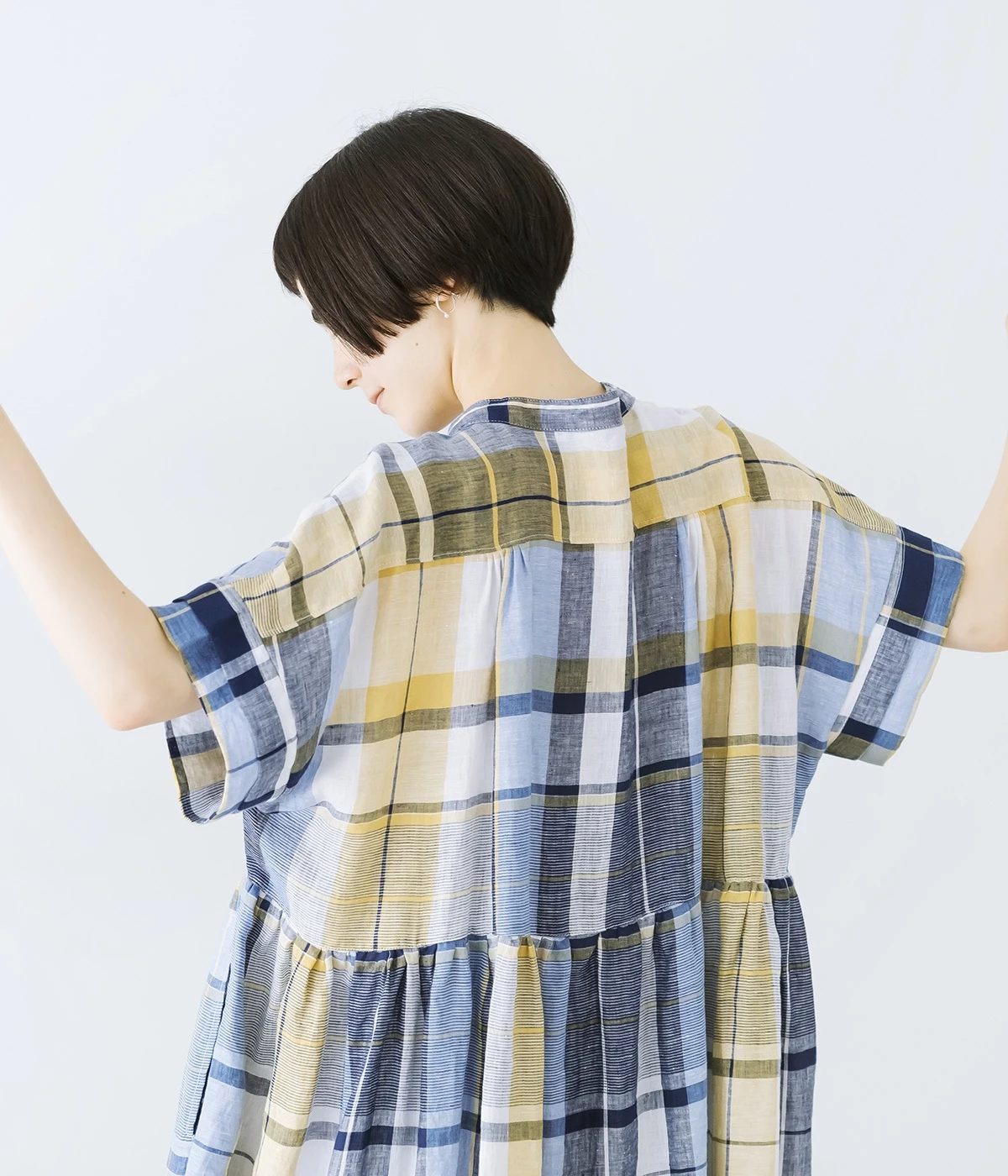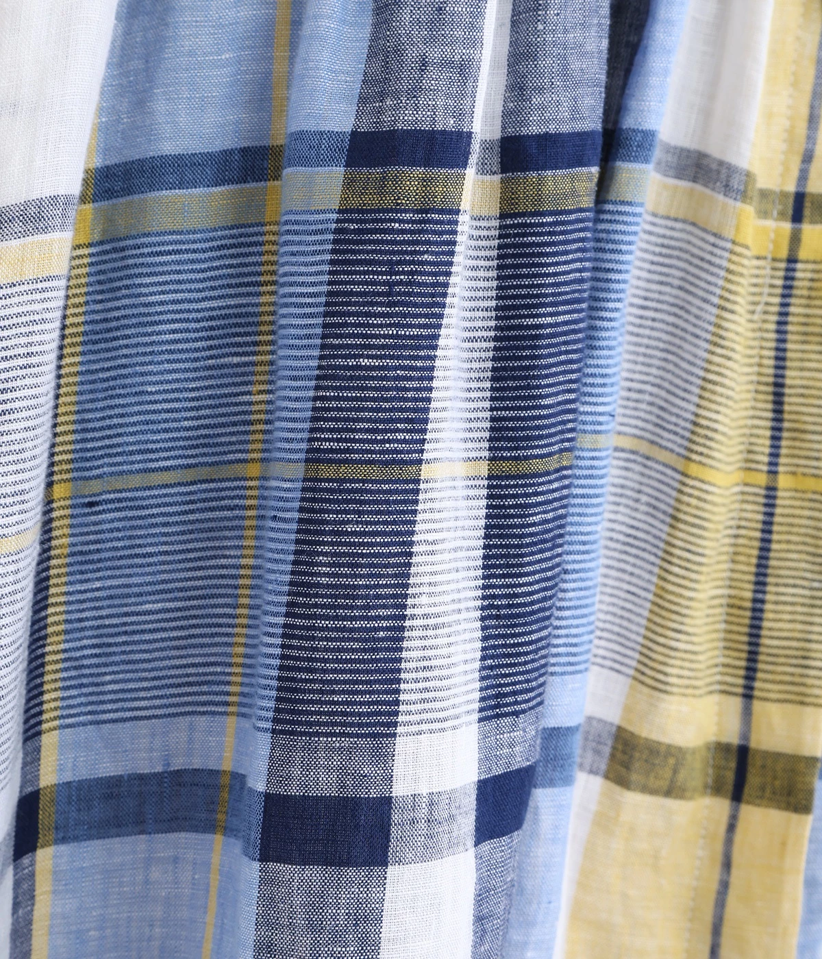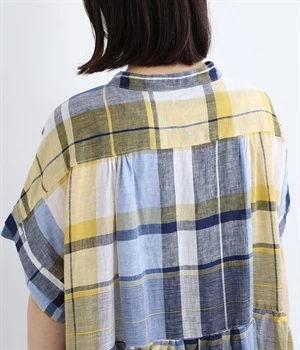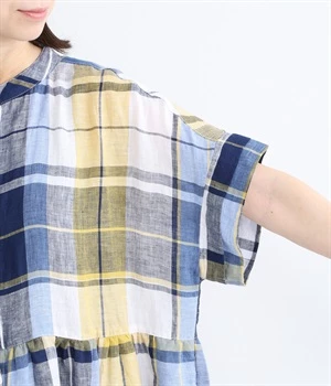 イエローとブルーが織りなす配色が、夏らしさを感じさせます。大人に似合う甘さを抑えたチェック柄で、普段使いはもちろん、お出かけシーンにもぴったり。