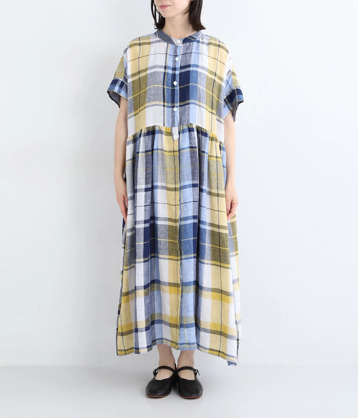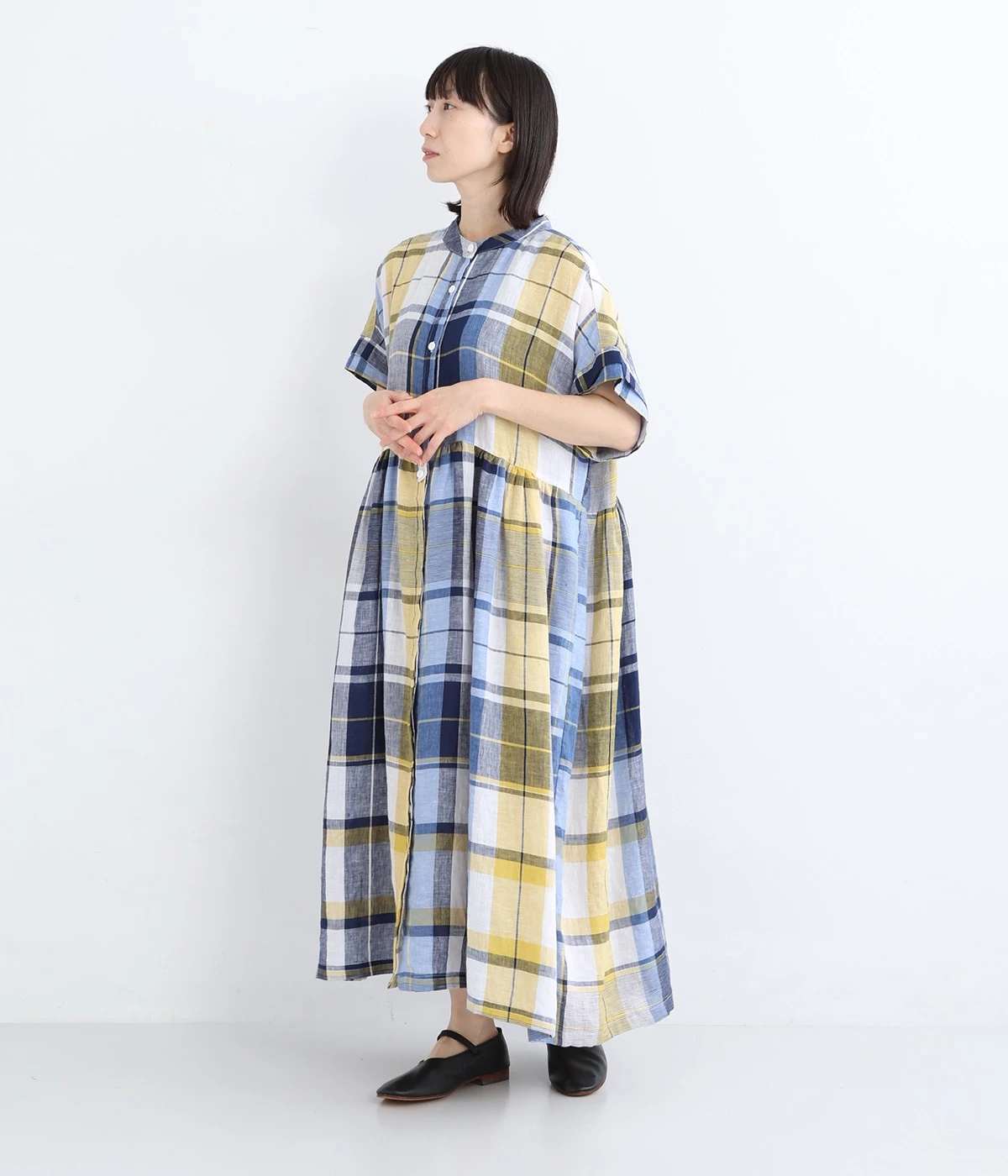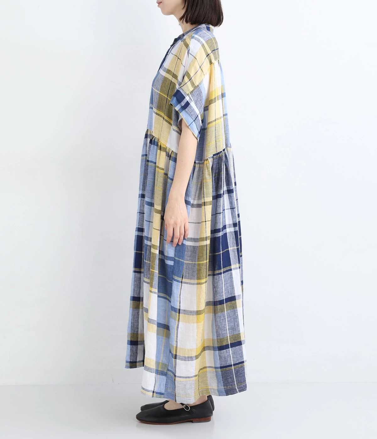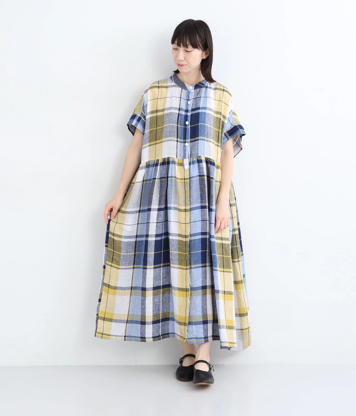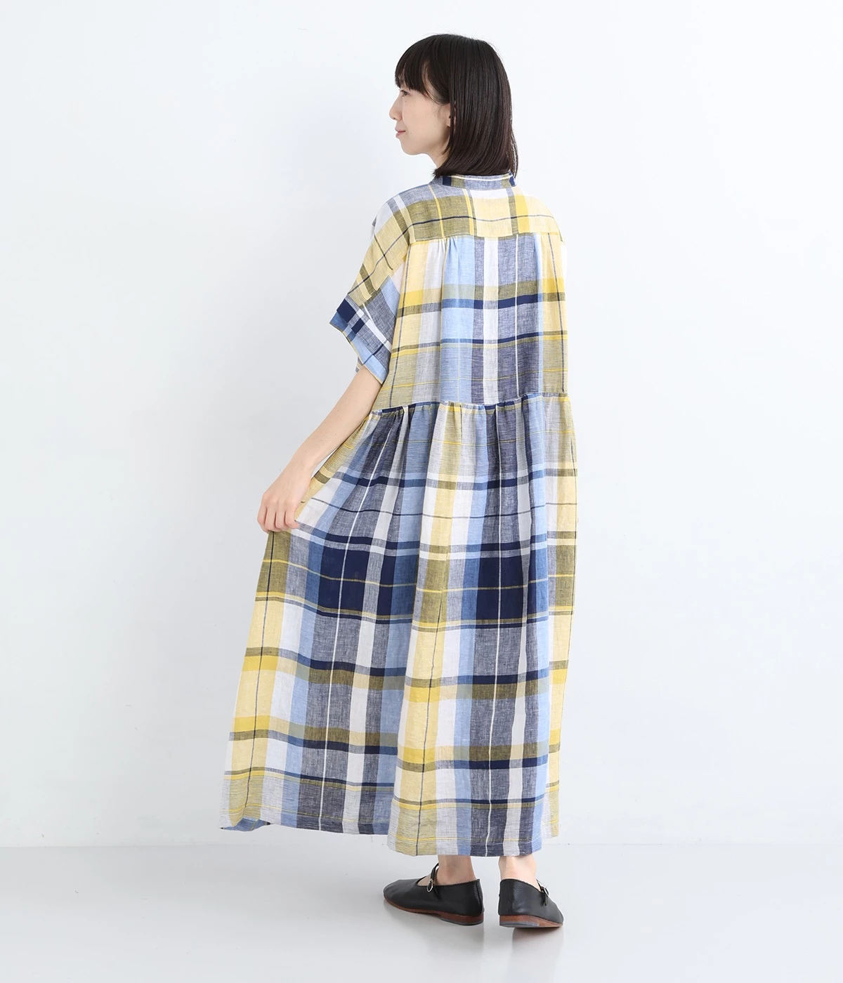 イエローとブルーが織りなす配色が、夏らしさを感じさせます。大人に似合う甘さを抑えたチェック柄で、普段使いはもちろん、お出かけシーンにもぴったり。