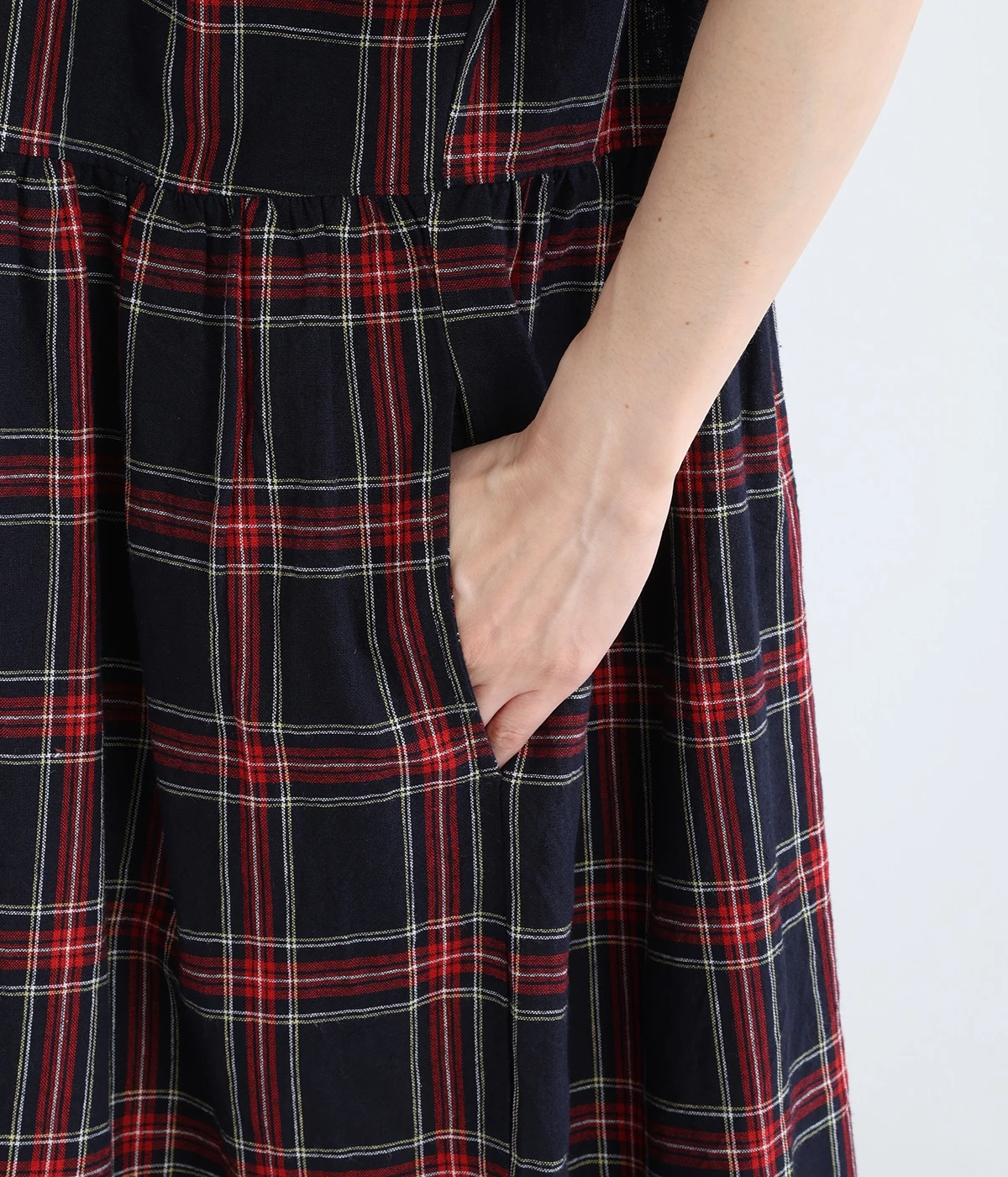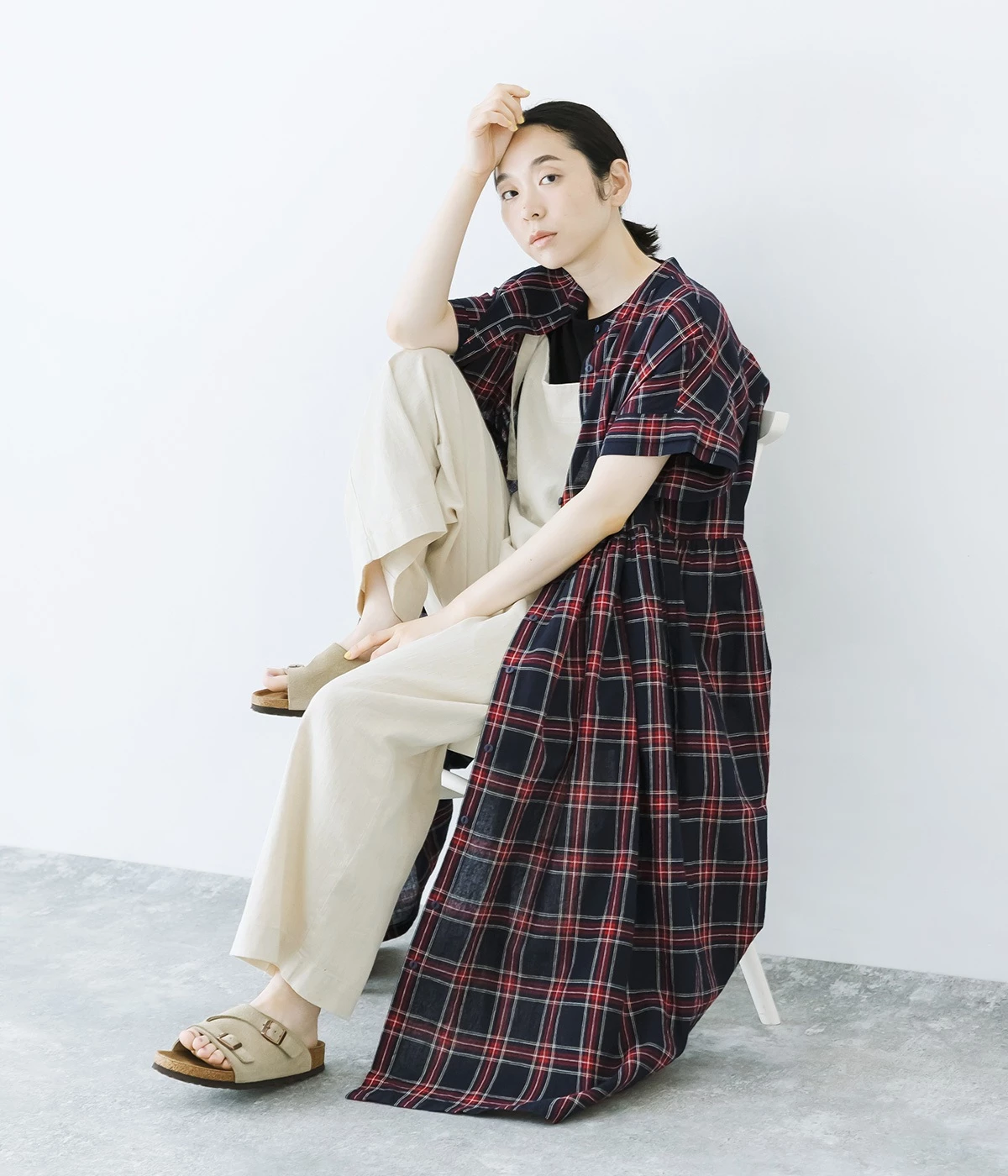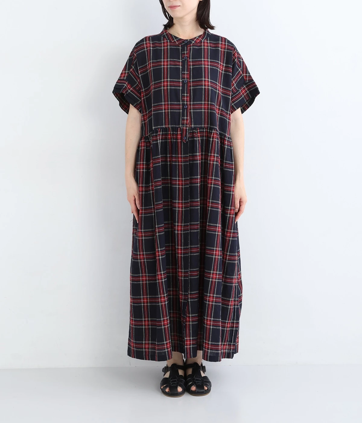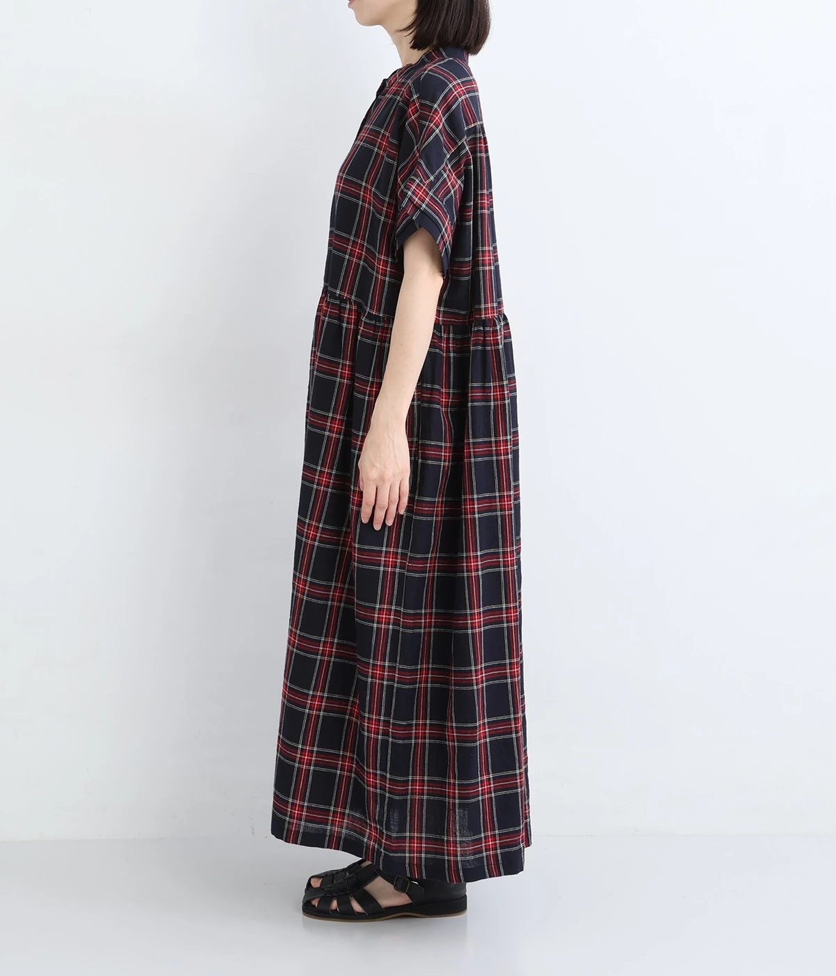 絶妙な個性が光るチェック柄ワンピース。リラックス感のあるゆったりとしたシルエットに、ウエストギャザーでメリハリをつけバランスのいいスタイルをつくります。