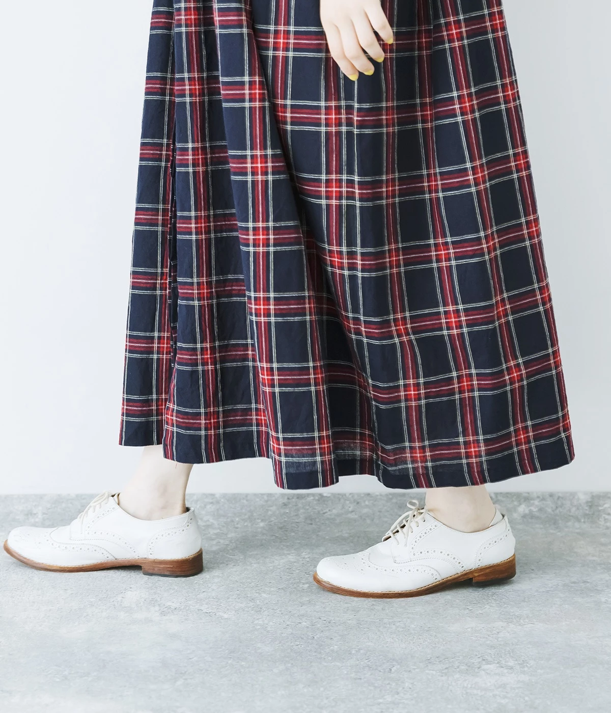 ゆとりを持たせたロング丈が、動くたびに美しいラインを描きます。安心して着られる、足元までしっかり隠れる丈感も◎